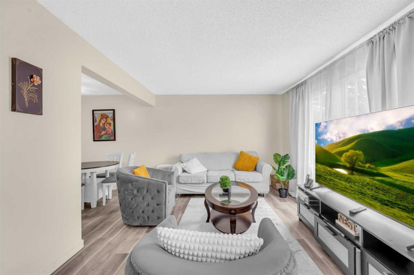 Welcome to 151-330 Canterbury Drive SW! This move in ready 2 bedroom, 1.5 bath townhome offers over 1,500 sq ft of fully developed living space, including a finished basement. Recent updates include new carpet, recent paint, resurfaced floors, stainless steel appliances, and modern lighting. The main floor features a bright and open living/dining area. Upstairs you'll find two generously sized bedrooms, including a spacious primary with walk-in closet, and a 4 piece bathroom. The finished basement includes a large family/flex room, laundry, and a home theatre setup—perfect for movie nights. Enjoy low condo fees in a well managed, pet-friendly complex with premium amenities: heated outdoor pool, tennis & basketball courts, and a clubhouse. Unbeatable location walking distance to LRT, Fish Creek Park, schools, shopping, and recreation. An excellent opportunity in one of Calgary’s most desirable SW communities!