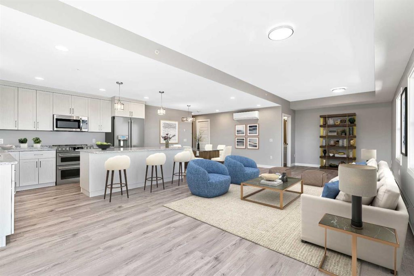 Welcome to modern condo living designed for comfort, quality, and convenience. Construction to start Spring of 2026! This well-appointed residence offers 9-foot ceilings, 8-inch hollowcore concrete floors, and a dual-wall construction system, providing exceptional durability and superior soundproofing. The open-concept kitchen is finished with quartz countertops, a large island with power and pendant lighting, built-in microwave and dishwasher, and a water line to the refrigerator for an ice maker—perfect for both everyday living and entertaining. Luxury vinyl plank flooring flows through the main living areas, with soft carpeted bedrooms offering a warm and comfortable retreat. Enjoy year-round comfort with split air conditioning units, LED lighting throughout, and the convenience of a gas line for your BBQ on the balcony. Each unit includes a private storage room accessible directly from the balcony, adding rare and practical extra space. The building offers thoughtful amenities including indoor heated parking, optional exterior garage units, a pet wash, designated outdoor pet relief and smoking areas, and a EV charging station. A professional decorating consultation is also included to help personalize your new home. Buyers have a rare opportunity to select finishings and tailor the space to their personal style. The Condo fees are $263.00 per month, and provide excellent value. They include heat, water, sewer, garbage collection, common area maintenance, building insurance, reserve fund contributions, water softening, groundskeeping, and snow removal—allowing for worry-free ownership. Ideal for professionals, downsizers, or investors seeking quality construction and low-maintenance living in a well-managed community. Listing photos are virtual staging and/or artists renderings.