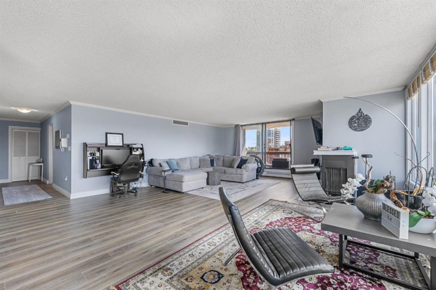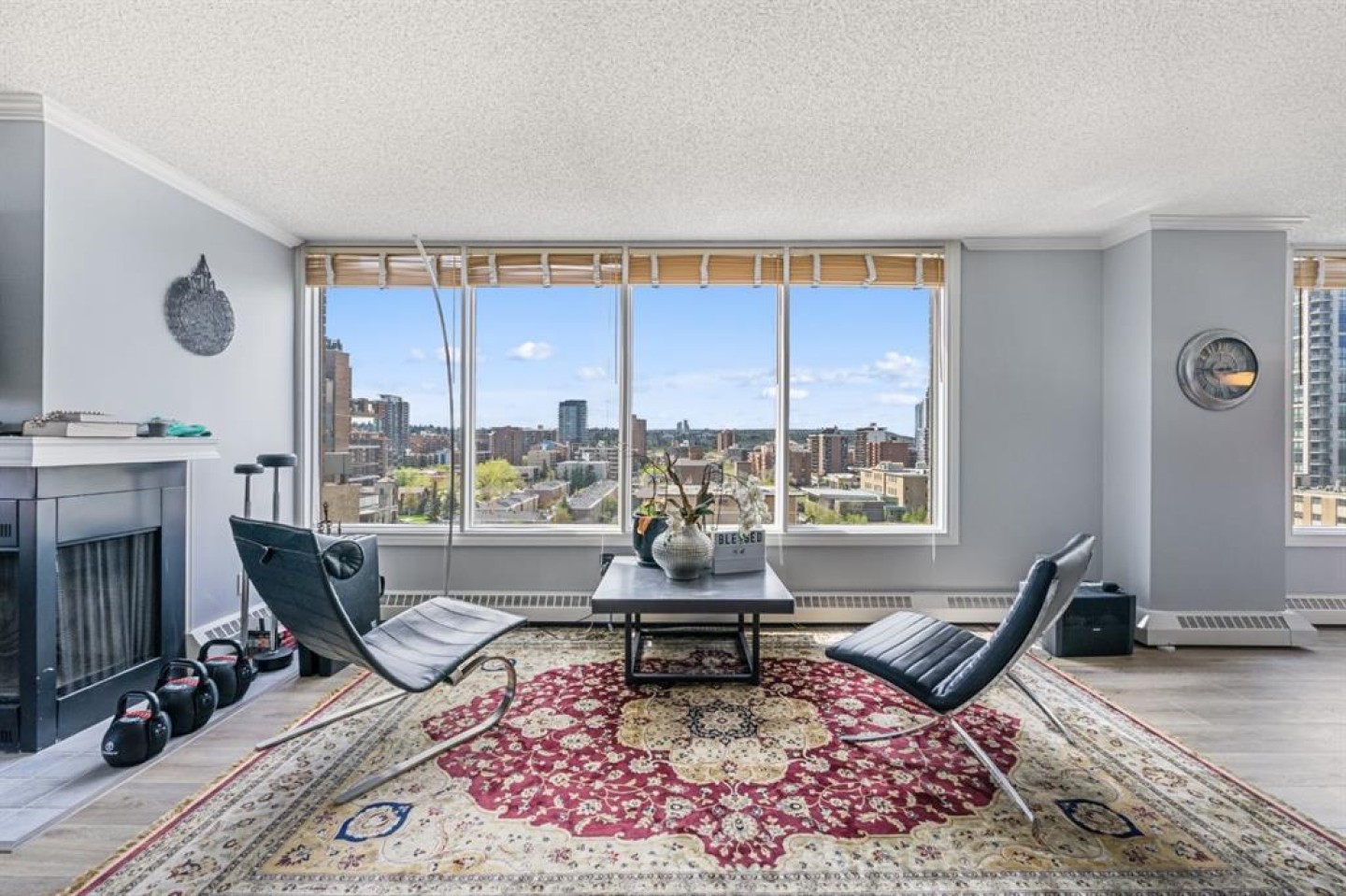 OPEN HOUSE Saturday April 5, 12 - 3 PM. Spacious and Bright SW Corner Unit in The Royal Oak. Offering 1587 Sq Ft with an Open Concept Floor Plan, 2 Bedrooms, 2 Bathrooms and 2 Titled Parking with storage lockers. Huge Wrap Around Balcony, Central Air Conditioning, In suite Laundry and storage room. Indoor Wood Burning Fire Place. The Kitchen Features Kitchen Kraft Cabinets, Ample Counter space and raised eating bar. Updated Luxury Vinyl Plank Flooring throughout. Large Primary Bedroom Offers a Walk in Closet and Full Ensuite Bathroom. Amenities of Royal Oak Include a fitness Centre, Social Room, Guest Suite, Bike Room, and Car Wash. Walking distance to grocery stores, restaurants, cafes and the vibrant 17 Ave SW.