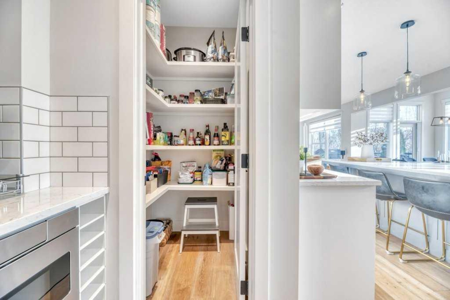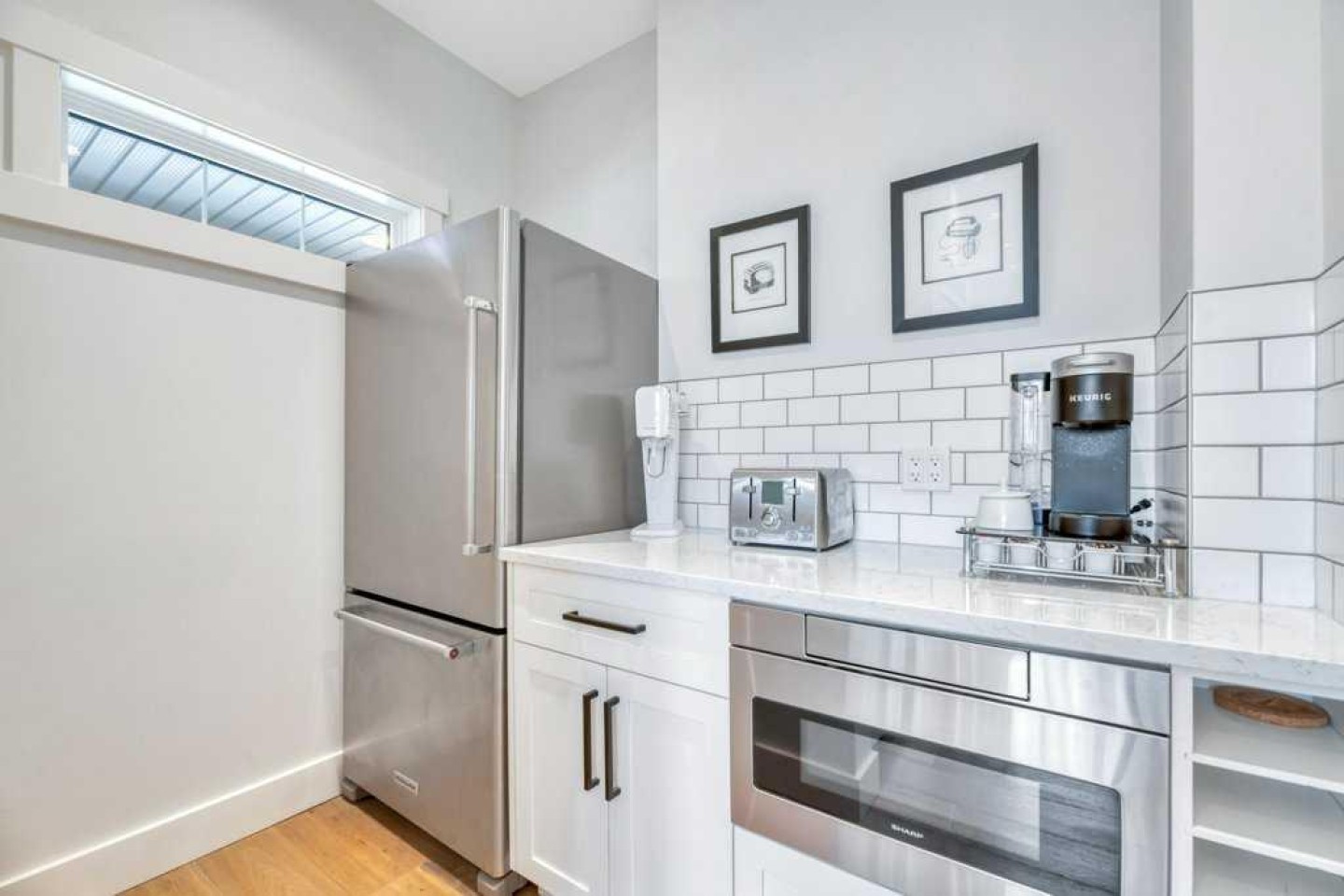 Refrigerator in the Butler’s Pantry, Shelving & Tire Racks in the Garage,