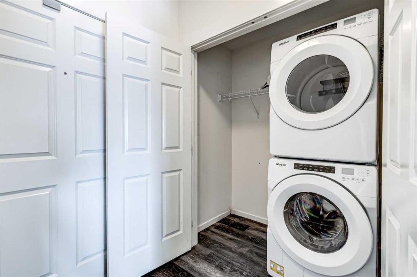 Dishwasher, Electric Stove, Microwave Hood Fan, Refrigerator, Washer/Dryer Stacked