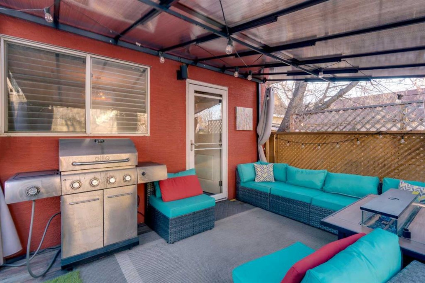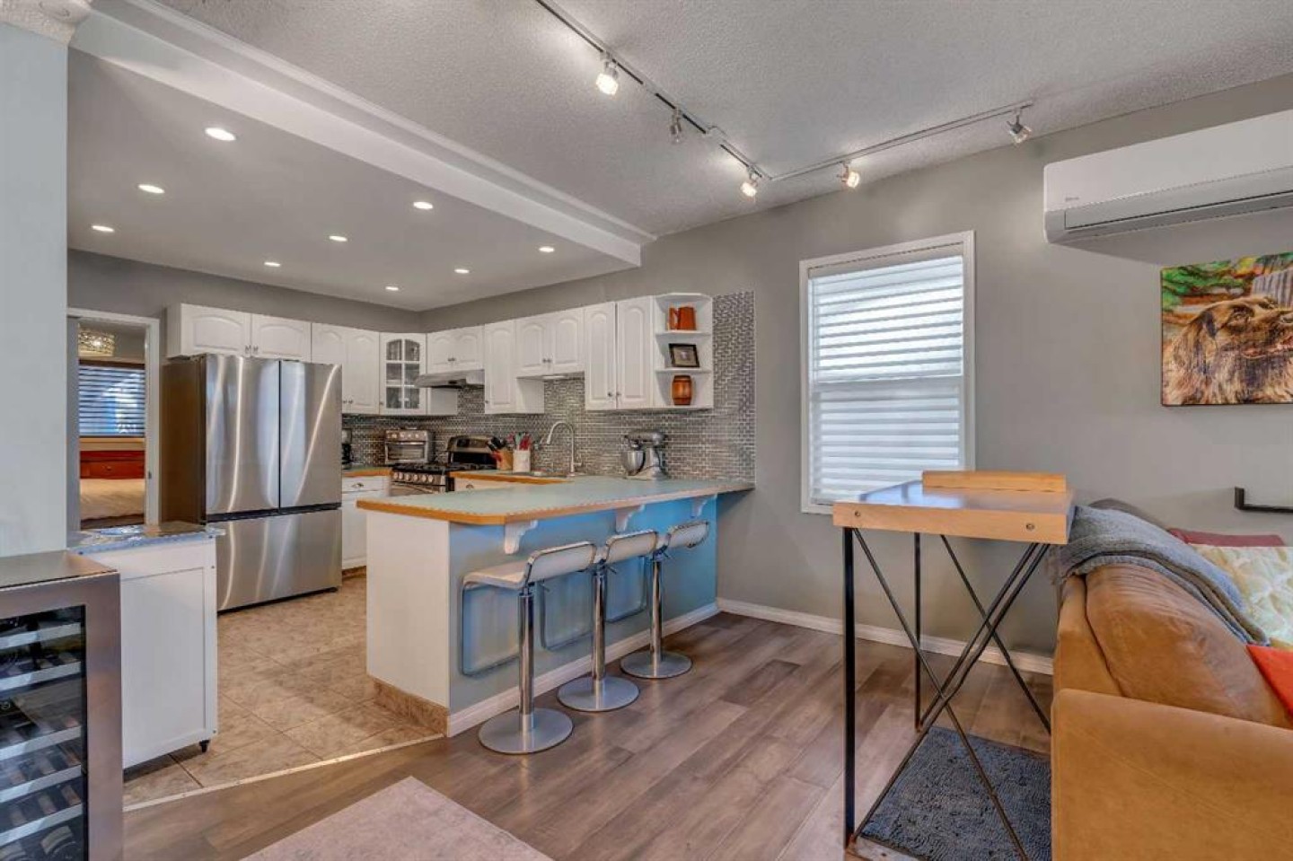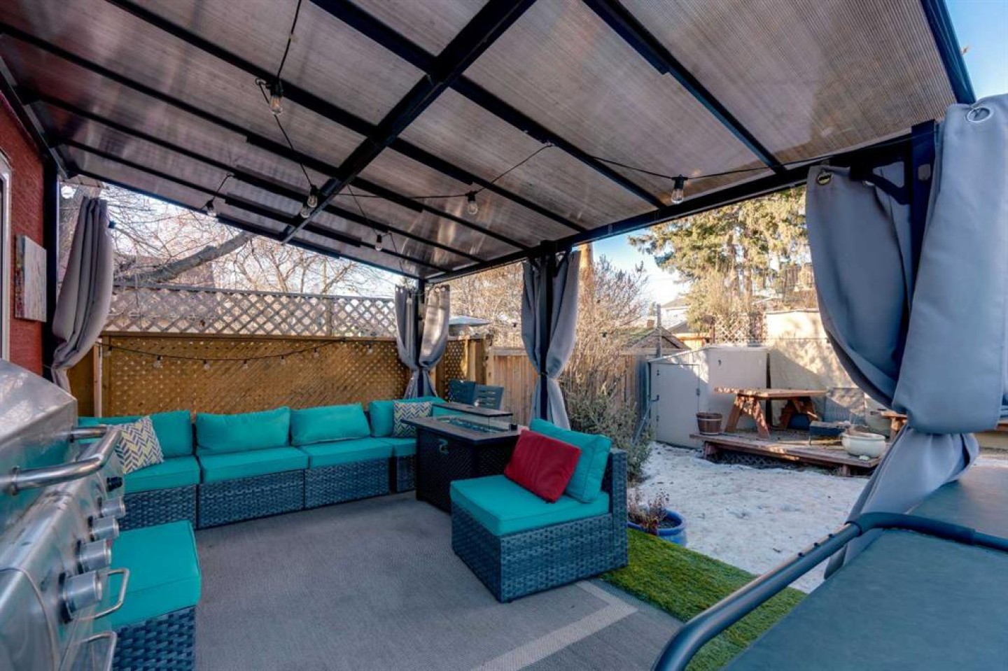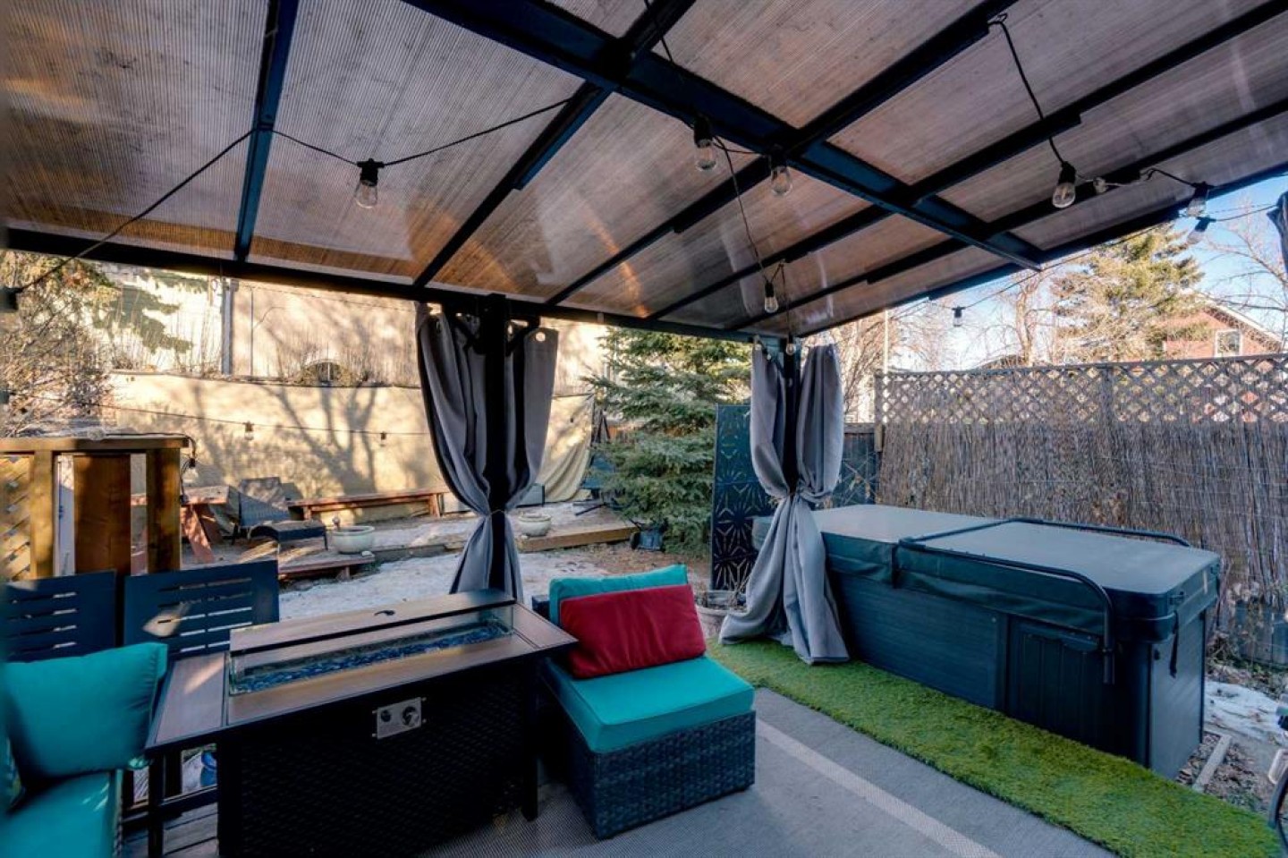 Inner-City Gem! This charming 1914 character home is ideally located in the heart of Ramsay, offering an easy walk to the shops and amenities of Inglewood, the Stampede Grounds, quick access to river pathways and bike trails, and only a 25-minute walk to downtown. Lovingly updated over the years, the home features an inviting open-concept layout with the kitchen at the centre of the home. The kitchen offers tile flooring, a nearly new stainless steel fridge, gas range, updated backsplash, and convenient seating. A large dining room sits just off the kitchen, offering a functional and inviting space for gatherings, while the front living room is warm and welcoming. The primary bedroom includes a walk-in closet, electric fireplace, and direct access to the backyard. The stunning spa-like bathroom it features a soaker tub and steam shower. A second bedroom completes the main level. The basement provides additional storage space and laundry. Outside, the private, tree-filled backyard is an urban oasis with a deck and gazebo, peek-a-boo city views, and a saltwater hot tub (only 2 years old). The yard is landscaped with raspberries, saskatoon berries, lilacs (front and back), rose bushes, cherry trees out front, and garden boxes. Additional updates and features include hardwood flooring, new front door, 100-amp electrical service, high-efficiency furnace, new air conditioning (1 year old), and a large front deck. Move in and enjoy this special Ramsay character home in an unbeatable inner-city location!