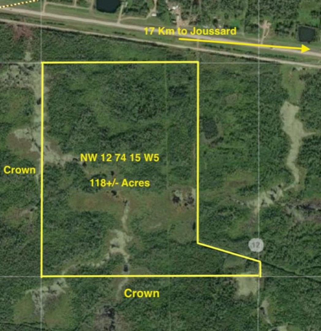 BUSH QUARTER Bordering thousands of acres of Crown Land on two Sides . Beautiful hunting / Recreation Quarter with a nice mixture or Spruce and poplar and habitat for every type of wildlife. There is a seasonal creek on the corner of the property and is only a few miles from Lesser Slave Lake and Joussard Right off Highway 2 East of High Prairie AB. Great opportunity to purchase your own hunting property .Seller is a licensed Realtor in the province of Alberta