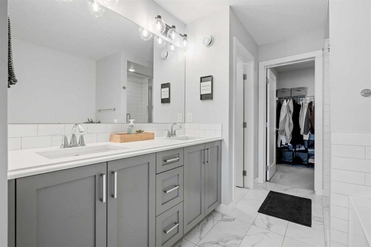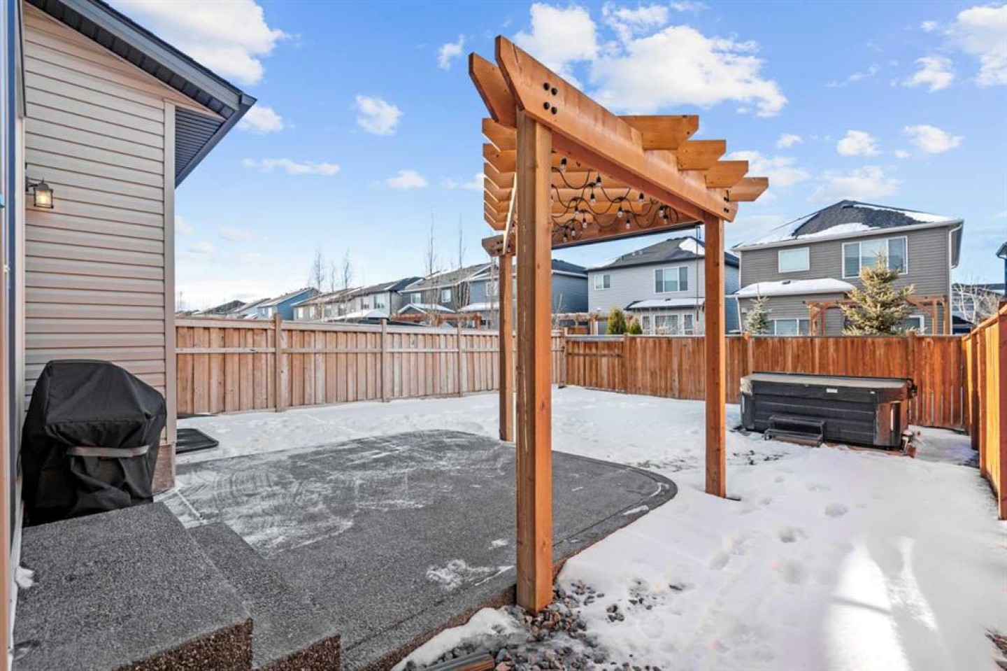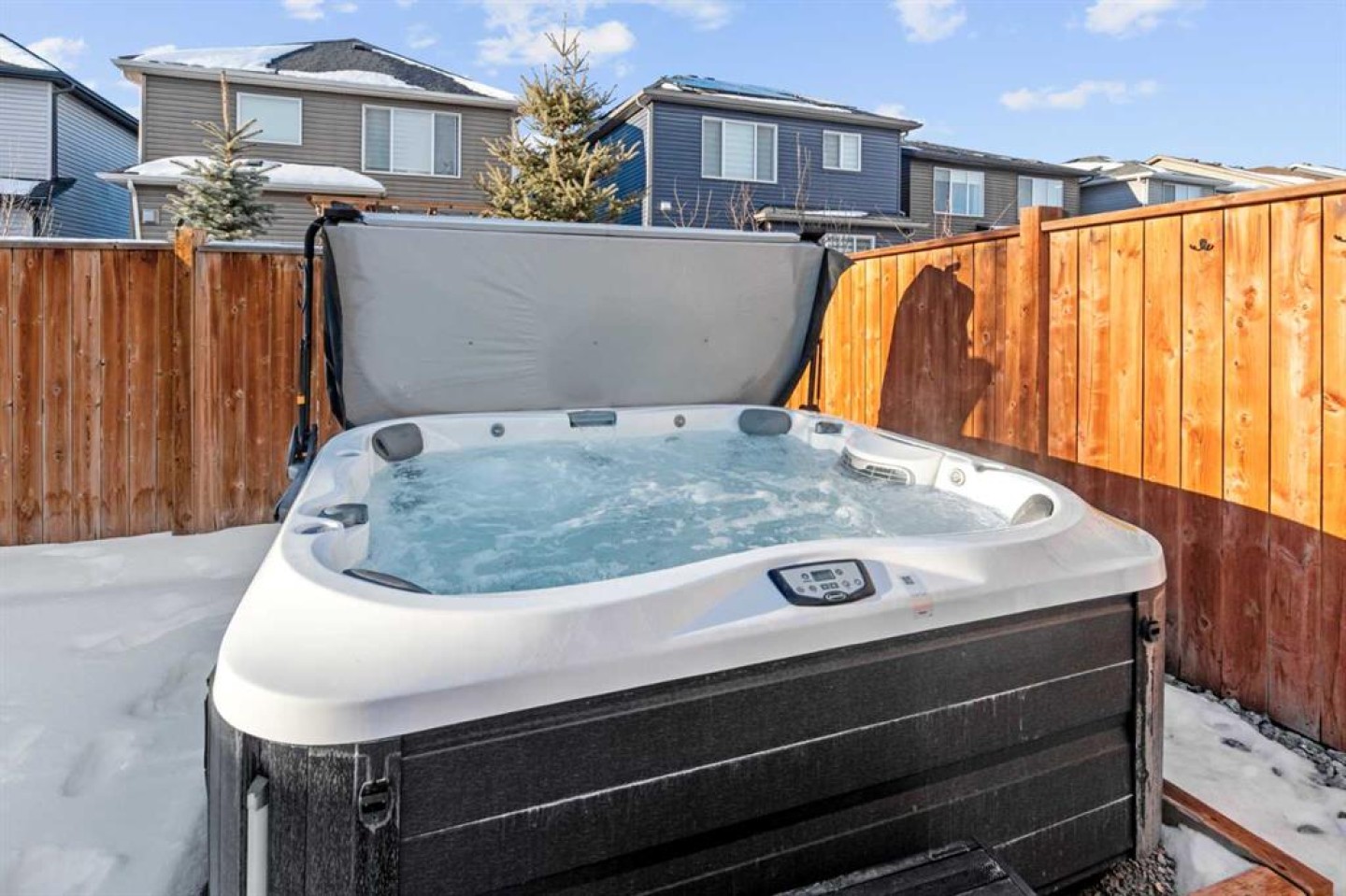This beautifully maintained 4-bedroom, 3.5-bath home in the heart of Legacy offers over 2,700 sqft of thoughtfully designed living space, seamlessly blending comfort, style, and functionality. Step inside to the open-concept main floor featuring 9-foot ceilings, 8-foot doors, and durable LVP flooring, with a warm and inviting living room centered around a cozy gas fireplace. The chef-inspired kitchen is both elegant and practical, showcasing quartz countertops, eat up breakfast bar, stainless steel appliances, a granite sink, ceiling-height cabinetry, and a walk-through pantry leading to the mudroom—ideal for everyday living and entertaining. Upstairs, three well-appointed bedrooms, a versatile bonus room, and convenient upper-floor laundry create a functional and family-friendly layout. The primary suite offers a true retreat with a luxurious 5-piece en-suite, private toilet room, walk-in closet, and refined finishes. The fully finished basement expands your living space with an additional bedroom, spacious recreation room, and full bathroom. Thoughtful upgrades include air conditioning, a water softener, and professionally installed Gemstone exterior lighting. Outside, the west-facing landscaped backyard is designed for relaxation and hosting, featuring an exposed aggregate patio and private hot tub. Ideally located close to everyday amenities, shopping, schools, and nearby golf courses, this move-in-ready home offers an exceptional lifestyle with comfort and convenience at its core.