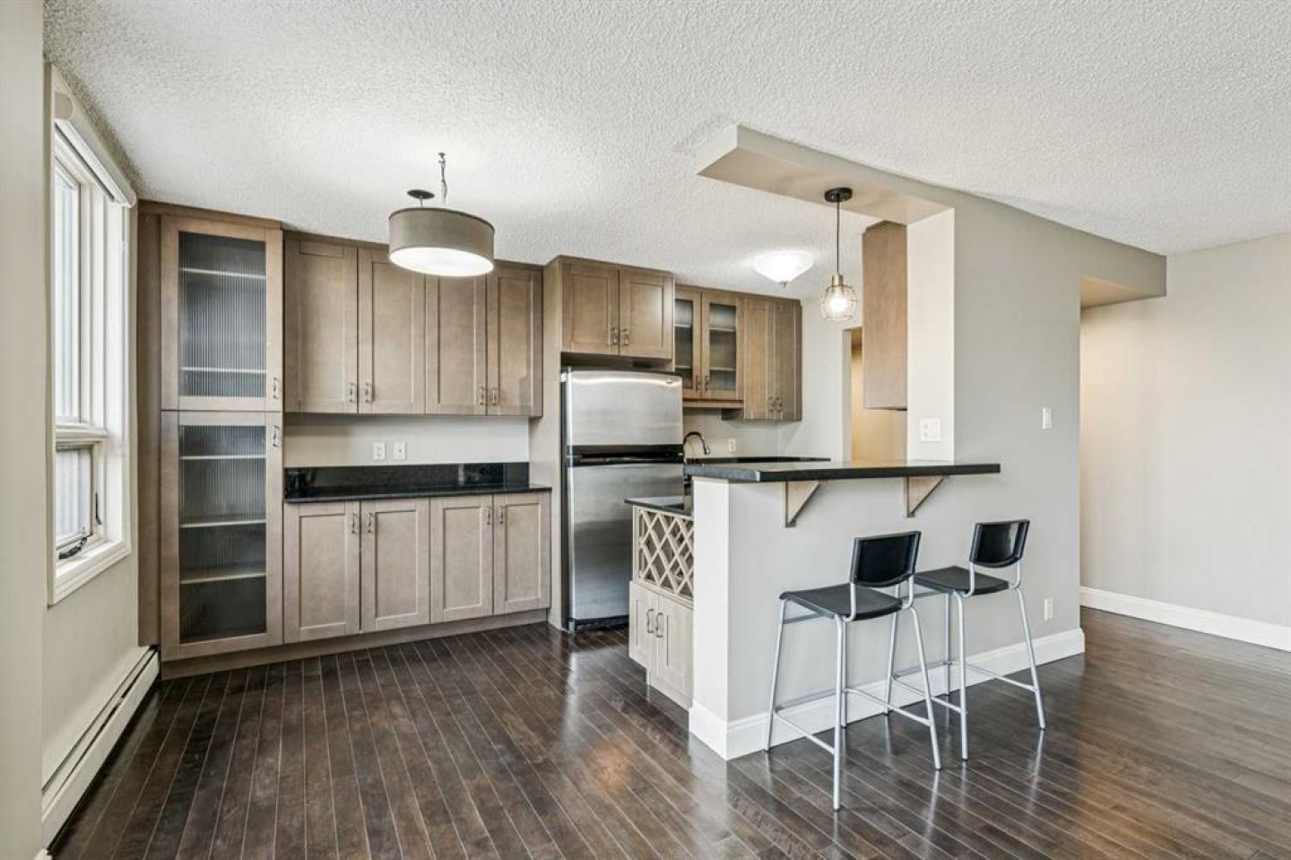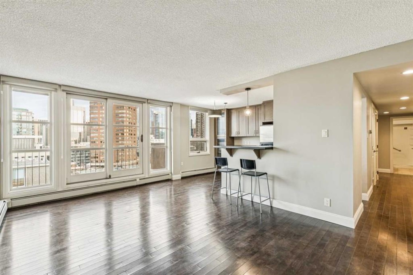 Located in the heart of the Beltline, this 2 bedroom condo at Centro 733 blends smart design with everyday livability. An open floor plan creates an effortless flow for everyday living while hardwood flooring adds warmth and durability for a low-maintenance lifestyle. Floor-to-ceiling windows frame sweeping views of downtown and the Calgary Tower, (brand new roller blinds) drawing natural light deep into the space and creating a dynamic backdrop from morning through evening. An inviting living area encourages relaxed evenings or lively gatherings, with patio doors extending the experience outdoors for a seamless indoor and outdoor lifestyle. A covered balcony becomes an extension of the home, offering space for summer barbeques while overlooking green space, city skylines and iconic tower views that elevate every moment. A dedicated dining area is well positioned for entertaining, with clear sightlines that support easy conversation and connection. A sleek, modern kitchen inspires culinary creativity with Alana stainless steel appliances, full-height cabinetry for efficient storage, stone countertops for everyday durability and a breakfast bar that invites casual meals or social interaction. 2 spacious bedrooms provide flexibility for rest, guests or a home office, while a modern 3-piece bathroom delivers clean lines, new shower and practical comfort. Centro 733 is a concrete building known for its quiet atmosphere and endless amenities including a well-equipped fitness room and a large party room with a full kitchen, ideal for hosting without sacrificing private space. Low condo fees enhance everyday value by including electricity, heat and water. A premier setting directly across from the historic Lougheed House places green space and heritage charm at your doorstep, while vibrant 17th Avenue sits just steps away with its nightlife, diverse boutiques, award-winning restaurants and cafés. Daily conveniences are equally close, with grocery stores, transit access, Memorial Park, the Elbow River pathways and the Talisman Centre all within easy reach, creating a walkable, connected lifestyle perfectly suited to professionals, downsizers or investors seeking function, location and long-term appeal.