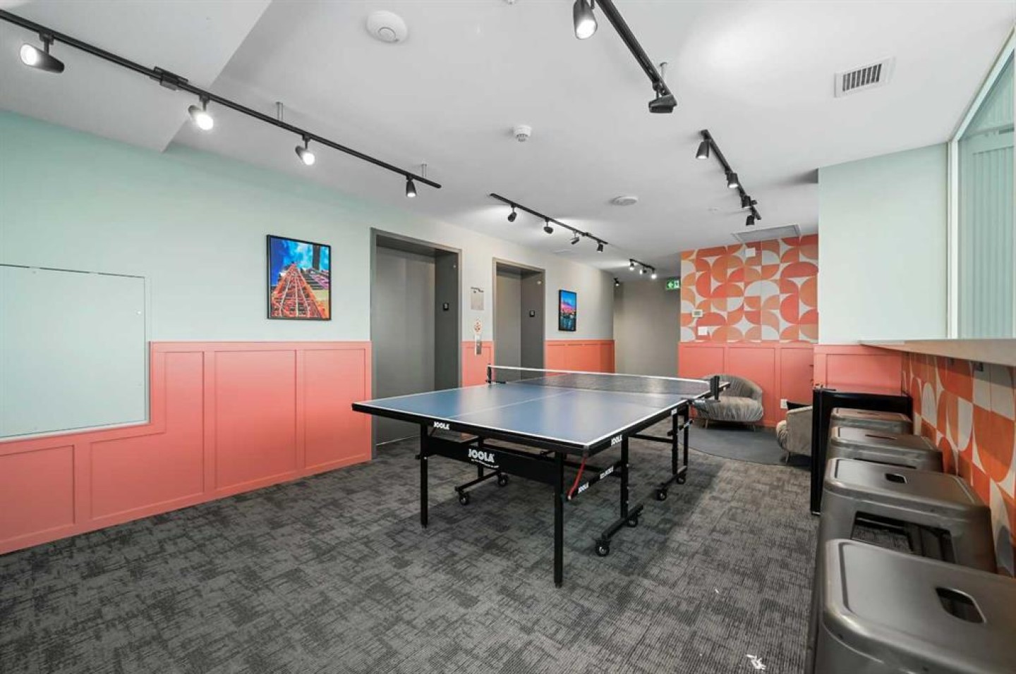 Welcome to this stunning 2-bedroom, ultra-modern corner condo offering breathtaking panoramic views and an unbeatable inner-city lifestyle. Designed with both style and functionality in mind, this bright and spacious home features 9-foot ceilings, floor-to-ceiling windows, and a spectacular balcony perfect for enjoying Calgary’s skyline and unforgettable sunsets. From the moment you enter, you’re greeted by unobstructed views of the Calgary Tower, Central Library, and Stampede Grounds, creating an instant wow factor. The open-concept layout is flooded with natural light and showcases contemporary finishes throughout, including a sleek kitchen, modern bathroom, and thoughtful design that maximizes both space and comfort. The southwest exposure enhances the airy feel, while the partially covered balcony allows for year-round enjoyment. Additional highlights include concrete construction for superior soundproofing, in-suite laundry, a spacious foyer, central storage closet, titled heated underground parking, and assigned storage. The building offers exceptional amenities, including a rooftop social lounge and patio ideal for watching Stampede fireworks or enjoying views of the Bow River and downtown skyline, as well as a bike storage room with repair station and a dedicated dog wash. Ideally located on a quiet, low-traffic street yet steps from downtown, transit, river pathways, shops, restaurants, and entertainment, this move-in-ready home delivers the perfect blend of modern living, walkability, and vibrant urban lifestyle.