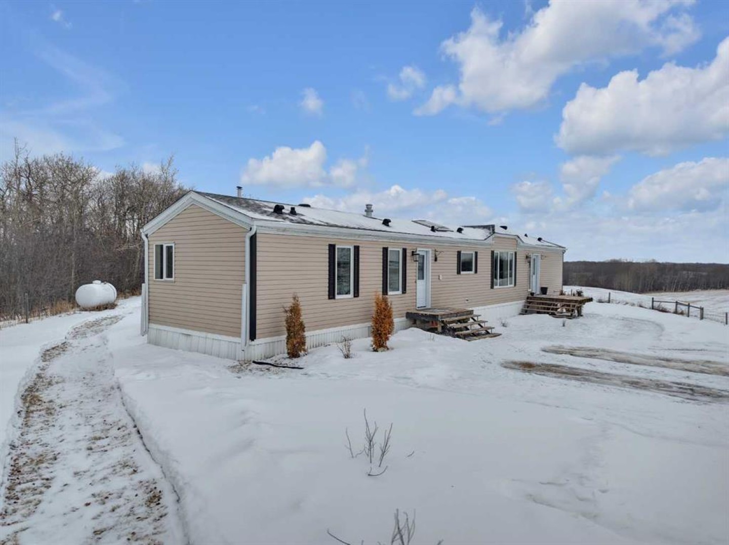 Tucked away on a private 8-acre parcel just 20 minutes east of Millet, this picturesque acreage delivers the peace and space you’ve been dreaming of. A long, magical driveway leads you home, with mature trees sheltering the property to the north and west, and breathtaking open cropland views stretching to the south and east as far as the eye can see. The 1995 modular home offers 3 bedrooms and 2 bathrooms, including a spacious primary suite with a large ensuite. With major updates already completed, you can move in with confidence—new furnace, hot water tank, water treatment system, eavestroughs and windows (all within the last year), plus the roof redone in 2023. Outside, there’s ample room to expand your lifestyle with space to build the shop, barn, or garage you’ve always wanted—this is country living with the groundwork already done. Bonus~Amazon and UPS deliver to the door!