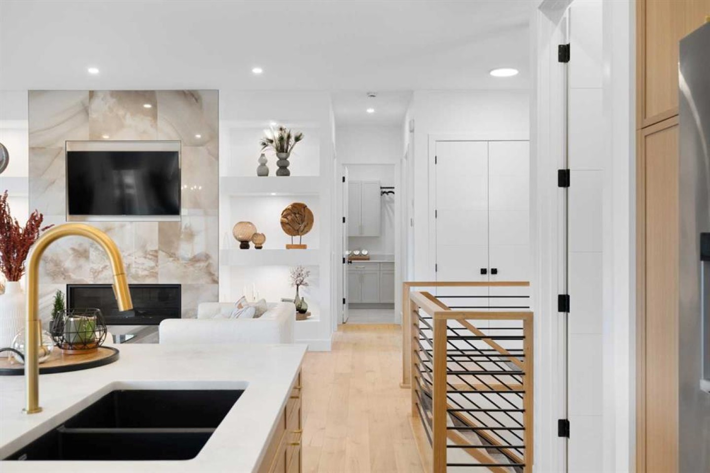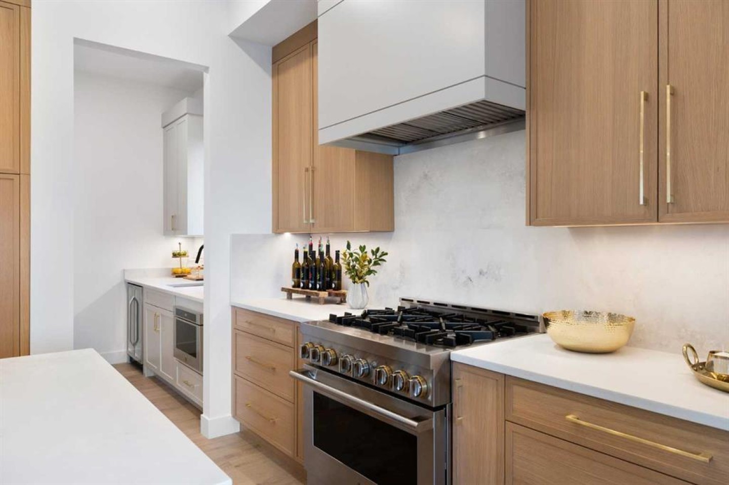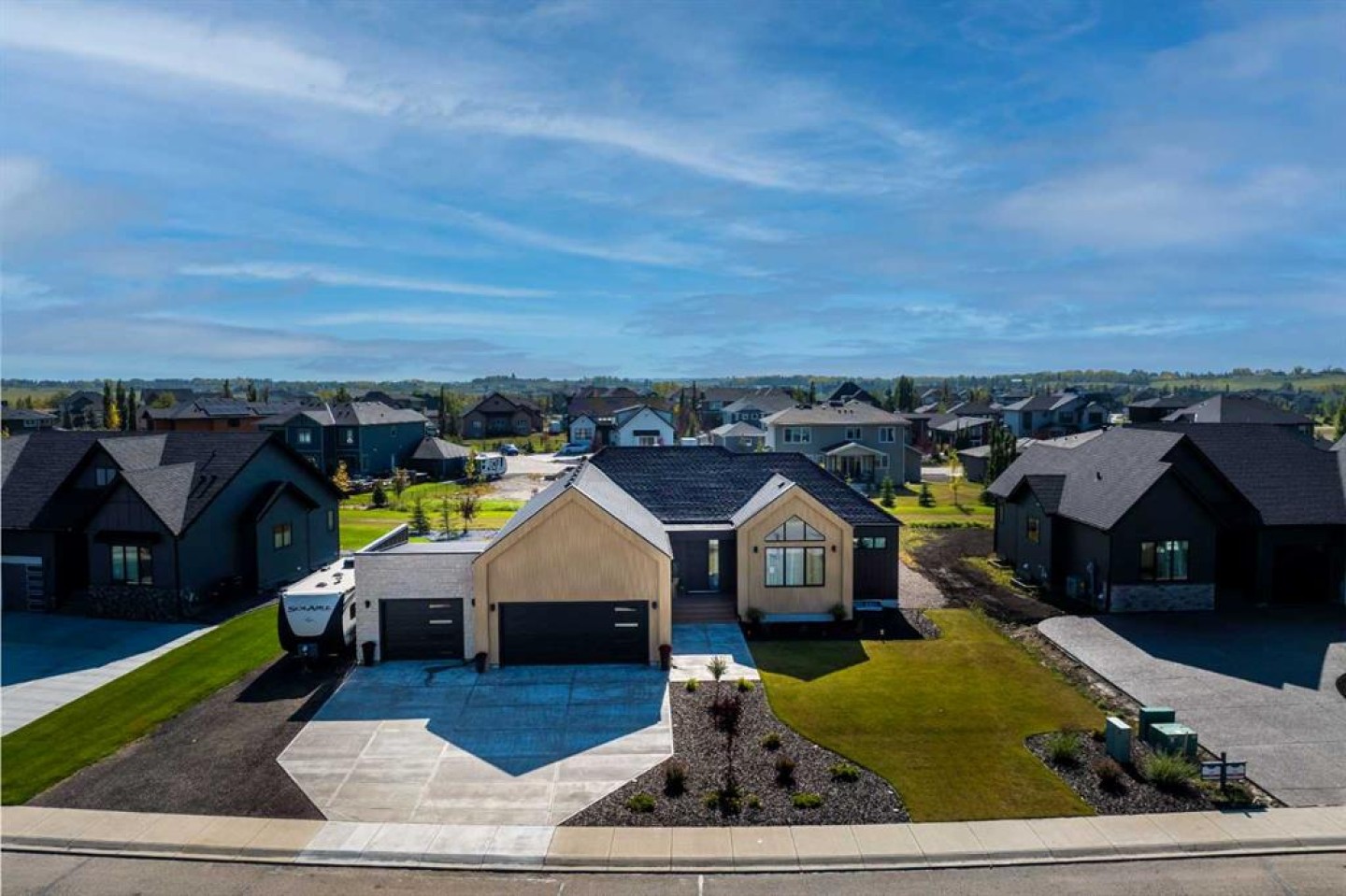 Step into refined simplicity with this exquisite newly built Scandinavian-style bungalow showcasing modern design and natural beauty. “The Olso” was created and built by Ironstone Custom Homes. Thoughtfully crafted with clean lines, organic textures, and an emphasis on light and space, this home redefines contemporary comfort with an array of high-end upgrades and sophisticated features. From the exterior, the home's minimalist architecture captures attention with its blend of SAGIWALL custom white oak exterior cladding that is a completely maintenance free product! As well James Hardie concrete infused matte black accent panels, and oversized windows that bring the outdoors in. The single-level layout offers the ultimate in ease and accessibility, while maintaining an elegant and airy presence. Inside, you're welcomed into an open-concept living space radiating warmth and functionality. Vaulted ceilings and expansive windows create a sense of volume and tranquility, enhanced by engineered wide-plank hardwood flooring, soft white walls, and the calming palette typical of Nordic design. At the heart of the home lies a gourmet kitchen, featuring sleek quartz countertops, custom cabinetry, designer fixtures, and a full suite of premium stainless steel appliances—perfect for both entertaining and everyday living. A butlers pantry awaits you with a storage on one side and additional cabinets on the other side. The spacious office over looks the landscaped front yard. A seamless transition between the gourmet kitchen, dining area and living room create perfect synergy. The bungalow offers spacious bedrooms, each designed with simplicity and comfort in mind. The primary suite is a private retreat with direct access to the outdoor deck with separate space for cooking , a retreat with a wood burning fireplace and hot tub area. This luxurious ensuite bath, featuring a double vanity, walk-in glass shower, separate tub and spa-like finishes. A massive closet with builtins galore. Every corner of the home is elevated with smart home features, upgraded lighting, and energy-efficient systems. Seamlessly extending the living space outdoors is a true highlight: an exceptional outdoor experience anchored by a grand wood-burning fireplace. This custom-built stone feature sets the tone for year-round gatherings under the covered patio. Whether you're enjoying crisp evenings beside the fire or hosting al fresco dinner parties, the space offers an intimate connection to nature, blending modern luxury with rustic charm. The basement is fully finished offering 3 massive bedrooms, builtins, a full bathroom, exercise room, wine room a family room and recreation space. Don’t miss the hidden door or the triple car garage completely done out!! Covered by New Home Warranty with upgrades galore, timeless Scandinavian design, and an unbeatable indoor-outdoor flow, this is a rare opportunity to own a home that’s both effortlessly stylish and functionally flawless.
