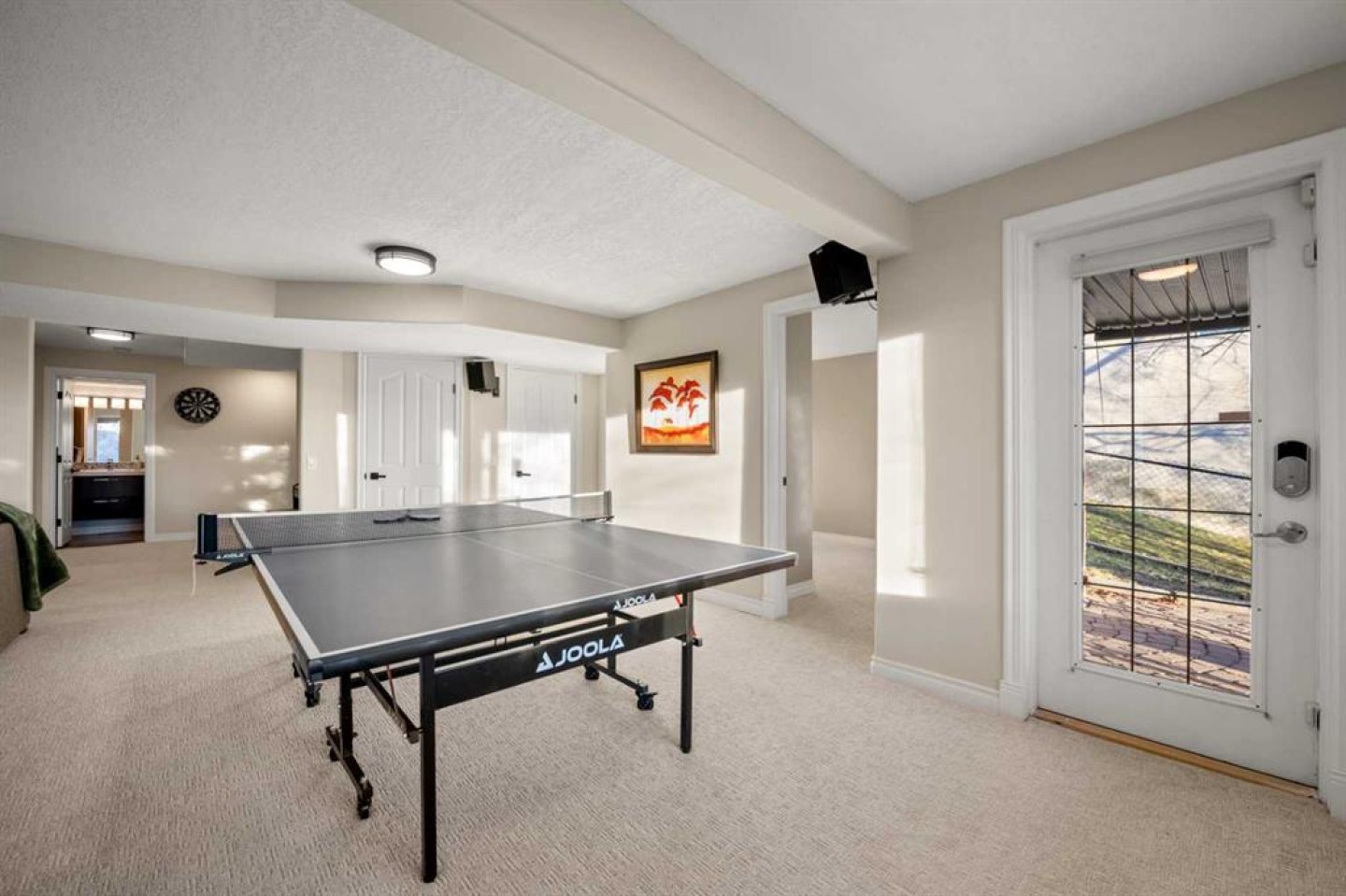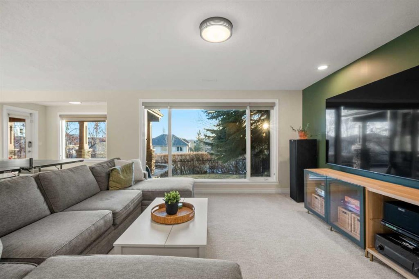 The spiral staircase continues down to a bright, spacious walkout level—again with mountain views—featuring large windows, a huge rec room ideal for movie nights, two additional bedrooms, a full bathroom, and new carpet. The utility room includes two furnaces, a central vacuum system, a new water softener, a hub station for internet connection throughout the home, and a stand-up freezer and fridge.