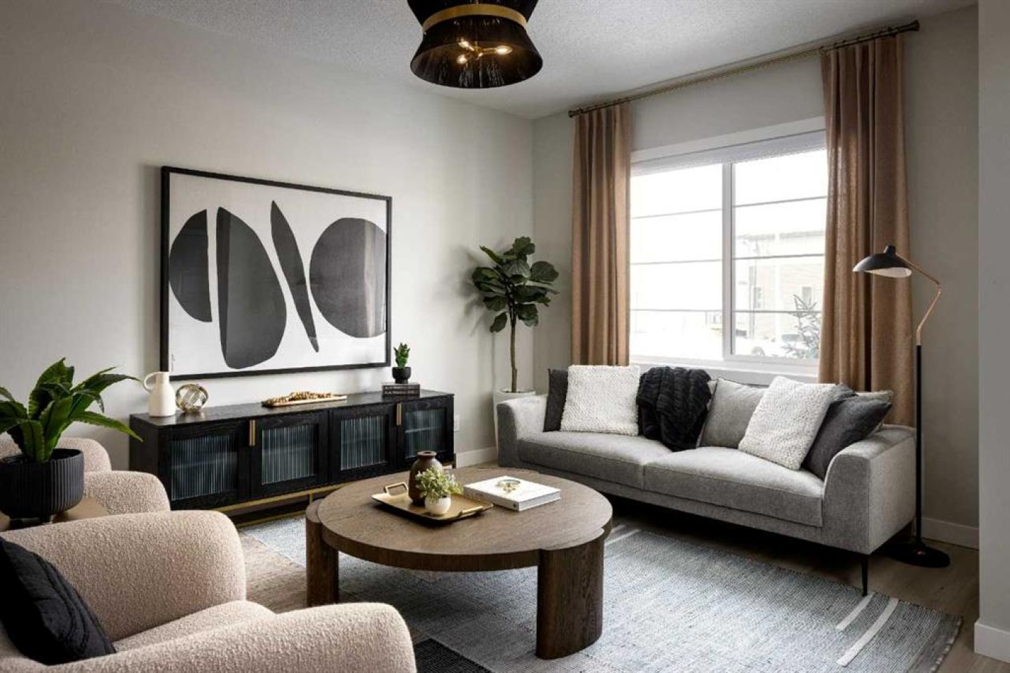 Welcome to the Cascade, a thoughtfully designed duplex built by Shane Homes in the NE community of Cornerstone. Currently under construction, this home features 3 bedrooms and 2.5 bathrooms with a functional layout designed for modern living. The open-concept main floor includes a spacious kitchen with a walk-in pantry and central island, flowing into the dining and living areas, ideal for everyday use and entertaining. A side entry and basement rough-ins provide flexibility for future development. Upstairs offers three well-sized bedrooms, a primary bedroom with walk-in closet and full ensuite, convenient upper-floor laundry, and a flex room that adds valuable additional living space. Photos are representative of a finished home and are for illustrative purposes only.