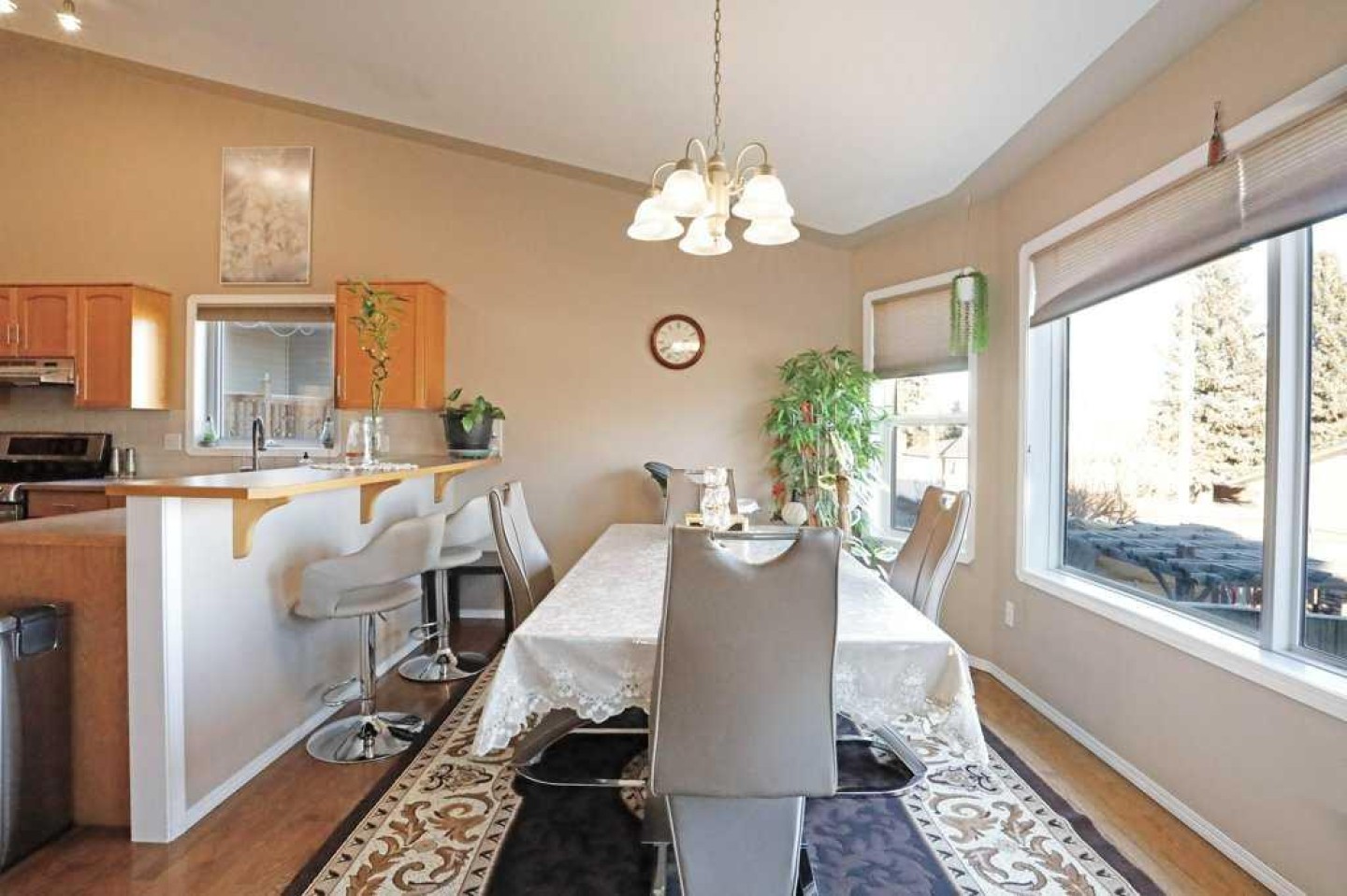 Step inside to discover a spacious and inviting main floor featuring three generous bedrooms, a sunlit living room adorned with dynamic grand windows, and a cozy gas fireplace that sets the perfect ambiance for gatherings. The functional kitchen seamlessly connects to the adjoining dining room, making entertaining a breeze. A door leads you to a charming covered patio, ideal for enjoying morning coffees or evening barbecues.