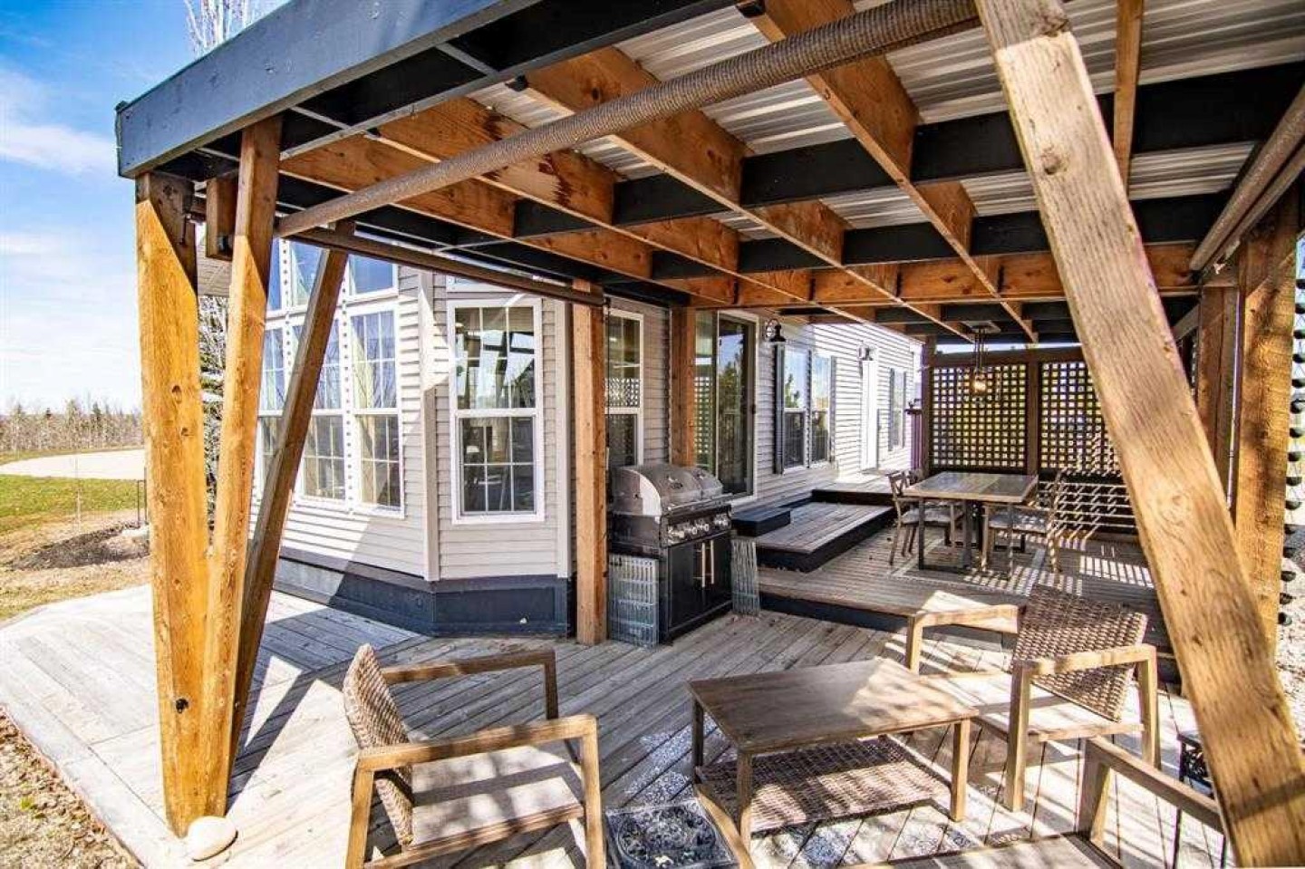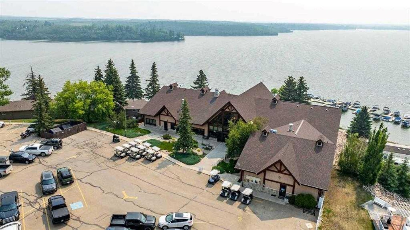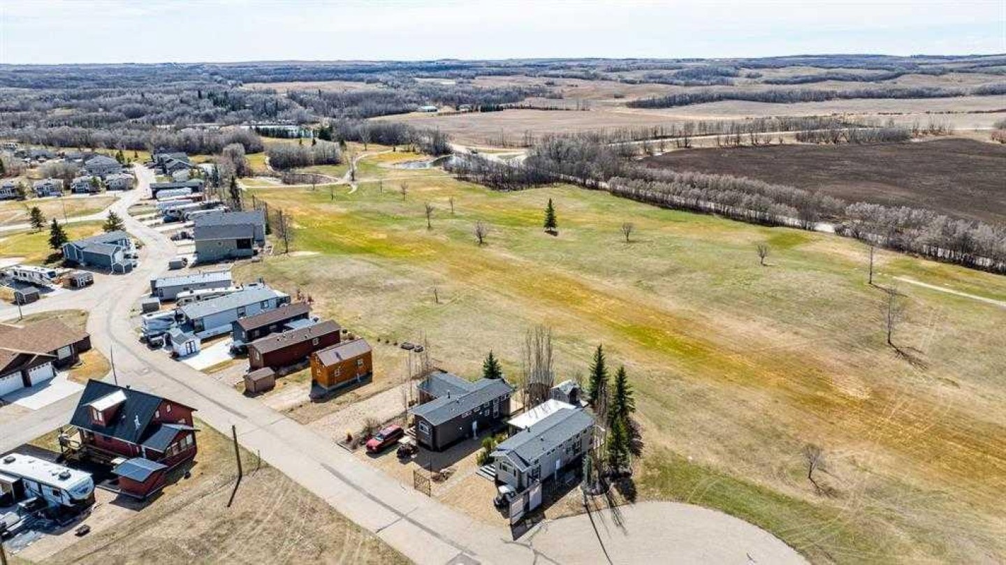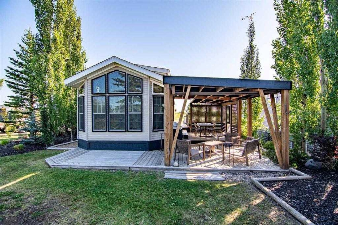 Welcome to the serene beauty of Whispering Pines, where every day feels like a lakeside getaway. Nestled on the shores of picturesque Pine Lake, this exceptional property offers the perfect transition from weekend camping to full-time ( 4 season) lakeside living. Set apart with no neighbors on three sides, this unique lot offers breathtaking panoramic views of the golf course, tranquil pond and sparkling lake just a walk away— an unrivaled retreat of privacy and natural splendor. Step inside the charming park model, where sunlight floods the open-concept interior. The well-appointed front kitchen, cozy dining area and spacious living room create a warm and inviting atmosphere — perfect for everyday living or entertaining. The primary bedroom easily fits a king-size bed. Hosting guests? A pull-out sofa in the living area ensures everyone has space to relax. Double sliding doors lead to a large east-facing deck with a pergola — ideal for morning coffee, evening dinners, or simply soaking in the spectacular views. Equipped with a natural gas furnace, this all-season escape is comfortable year-round. Whether you are seeking solitude, adventure, or a blend of both, Whispering Pines delivers. This community allows short term rentals. As part of a gated, bare land condominium community, residents enjoy access to top-tier amenities including an 18-hole golf course, indoor heated pool, fitness center, clubhouse, restaurant, playground, marina, and sandy beach. From boating and fishing to golfing and swimming, there is something for everyone. Located just 30 minutes from Red Deer, this fully furnished, pet-friendly, turnkey property offers convenience, comfort and community — all in one. Bare land condominium ownership means you own the lot, with low monthly fees covering water, sewer, garbage, lawn maintenance, and clubhouse access. Do not miss your chance to own a piece of paradise at Pine Lake — where lake life meets luxury, and every season brings new memories.