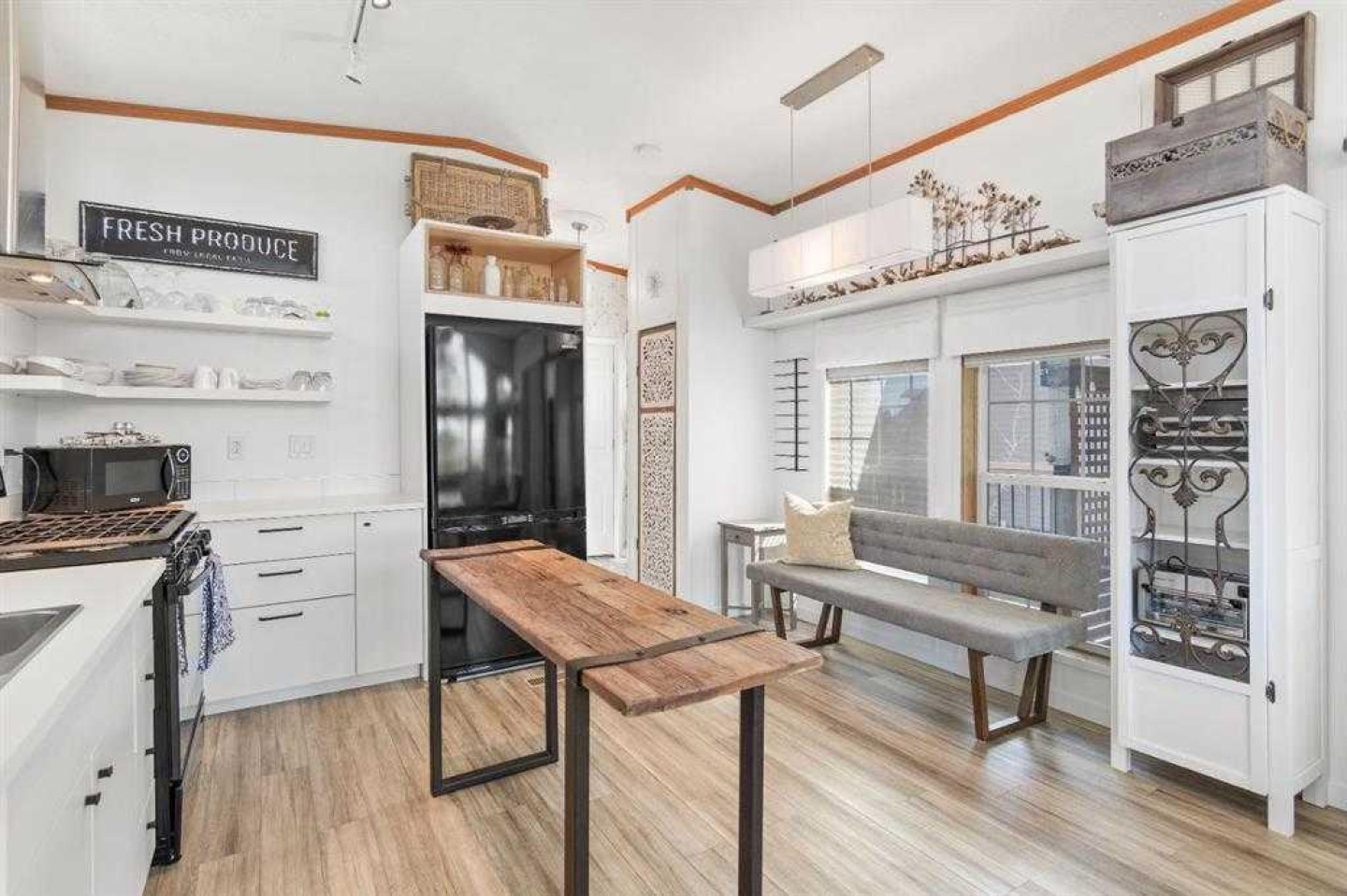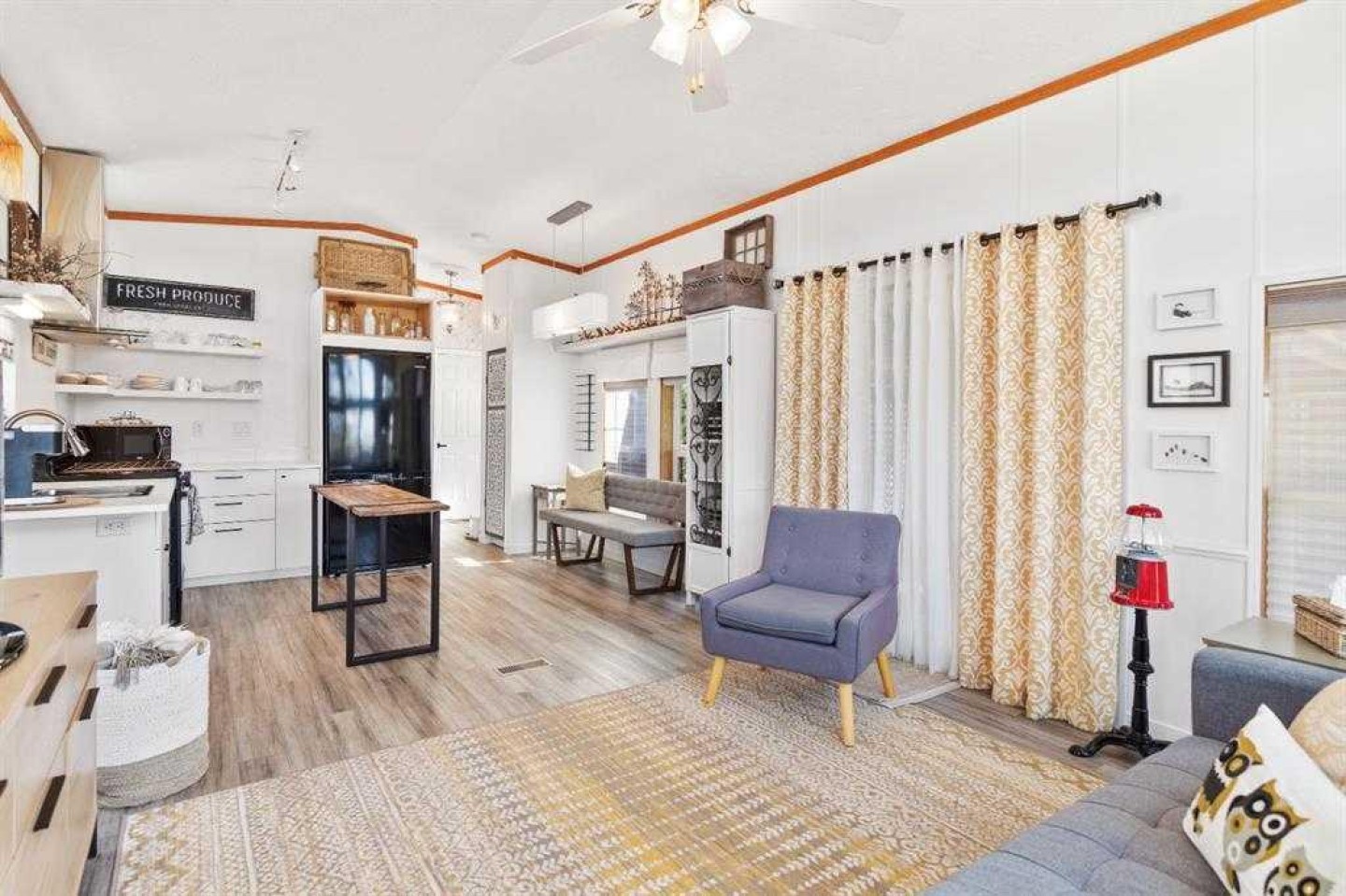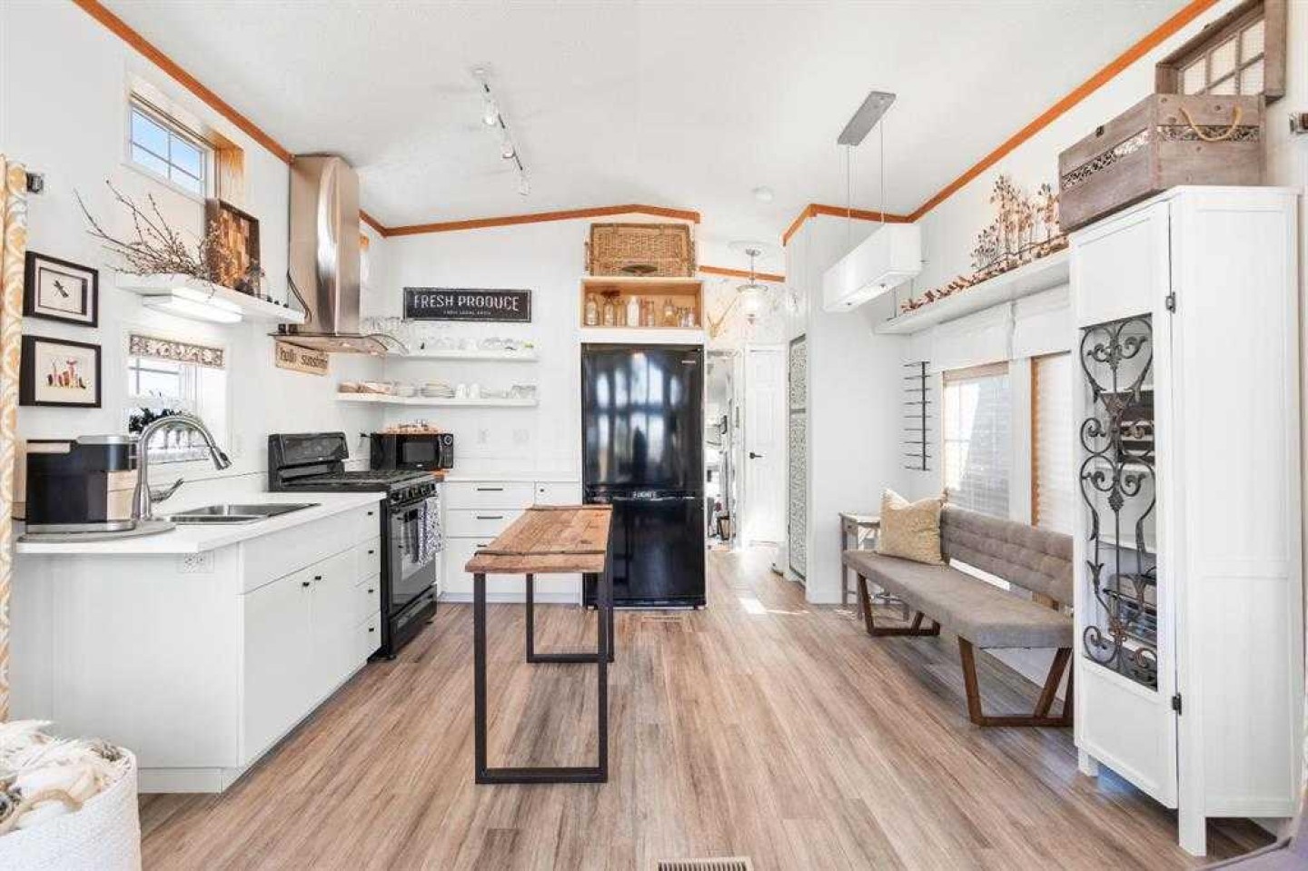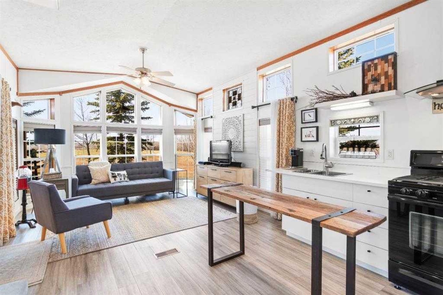 Welcome to the serene beauty of Whispering Pines, where every day feels like a lakeside getaway. Nestled on the shores of picturesque Pine Lake, this exceptional property offers the perfect transition from weekend camping to full-time ( 4 season) lakeside living. Set apart with no neighbors on three sides, this unique lot offers breathtaking panoramic views of the golf course, tranquil pond and sparkling lake just a walk away— an unrivaled retreat of privacy and natural splendor. Step inside the charming park model, where sunlight floods the open-concept interior. The well-appointed front kitchen, cozy dining area and spacious living room create a warm and inviting atmosphere — perfect for everyday living or entertaining. The primary bedroom easily fits a king-size bed. Hosting guests? A pull-out sofa in the living area ensures everyone has space to relax. Double sliding doors lead to a large east-facing deck with a pergola — ideal for morning coffee, evening dinners, or simply soaking in the spectacular views. Equipped with a natural gas furnace, this all-season escape is comfortable year-round. Whether you are seeking solitude, adventure, or a blend of both, Whispering Pines delivers. This community allows short term rentals. As part of a gated, bare land condominium community, residents enjoy access to top-tier amenities including an 18-hole golf course, indoor heated pool, fitness center, clubhouse, restaurant, playground, marina, and sandy beach. From boating and fishing to golfing and swimming, there is something for everyone. Located just 30 minutes from Red Deer, this fully furnished, pet-friendly, turnkey property offers convenience, comfort and community — all in one. Bare land condominium ownership means you own the lot, with low monthly fees covering water, sewer, garbage, lawn maintenance, and clubhouse access. Do not miss your chance to own a piece of paradise at Pine Lake — where lake life meets luxury, and every season brings new memories.