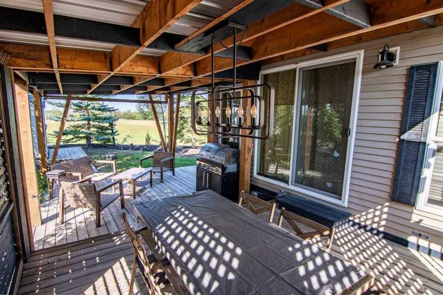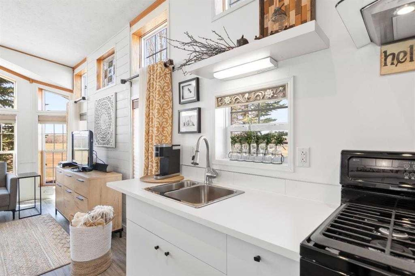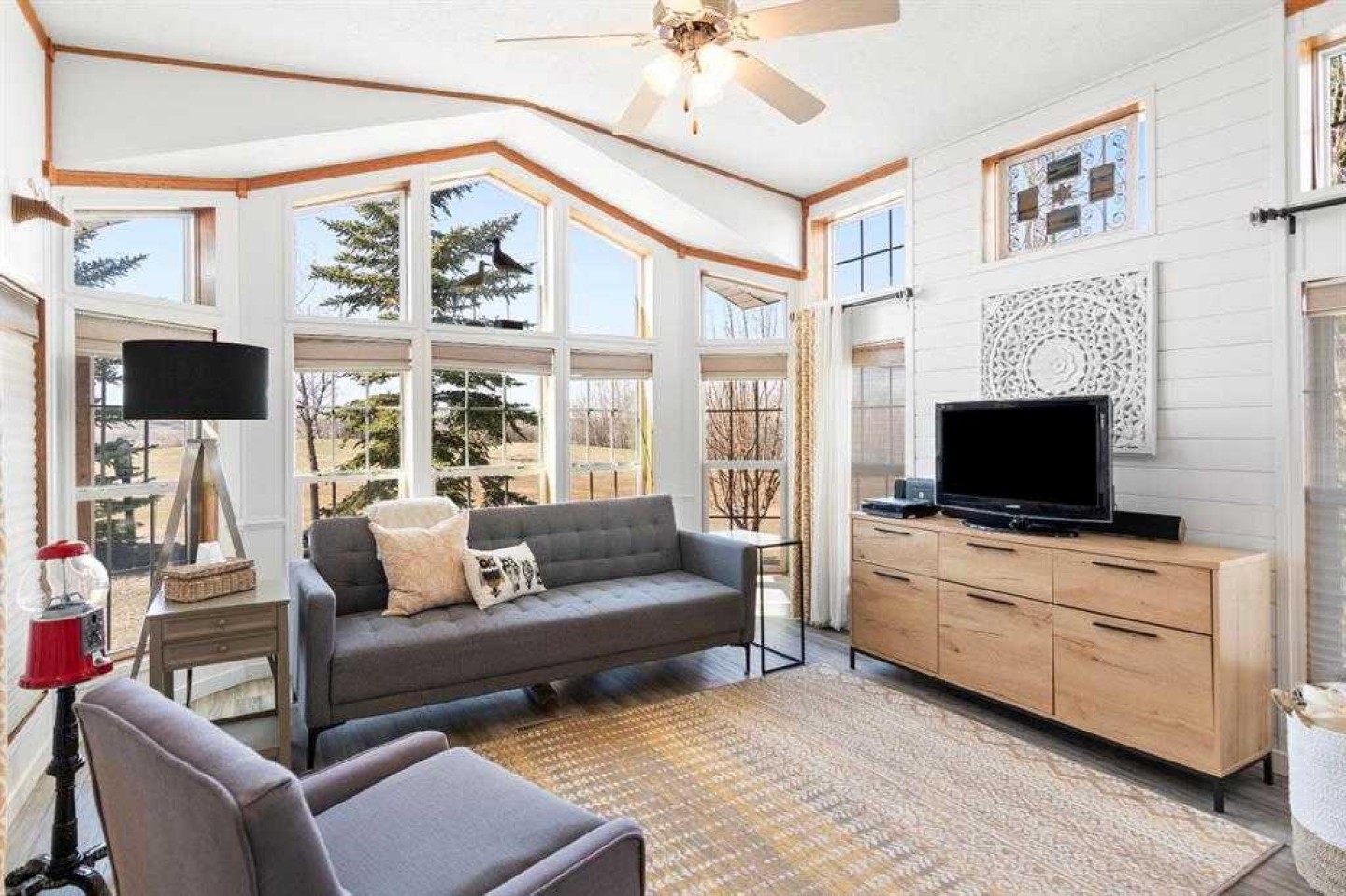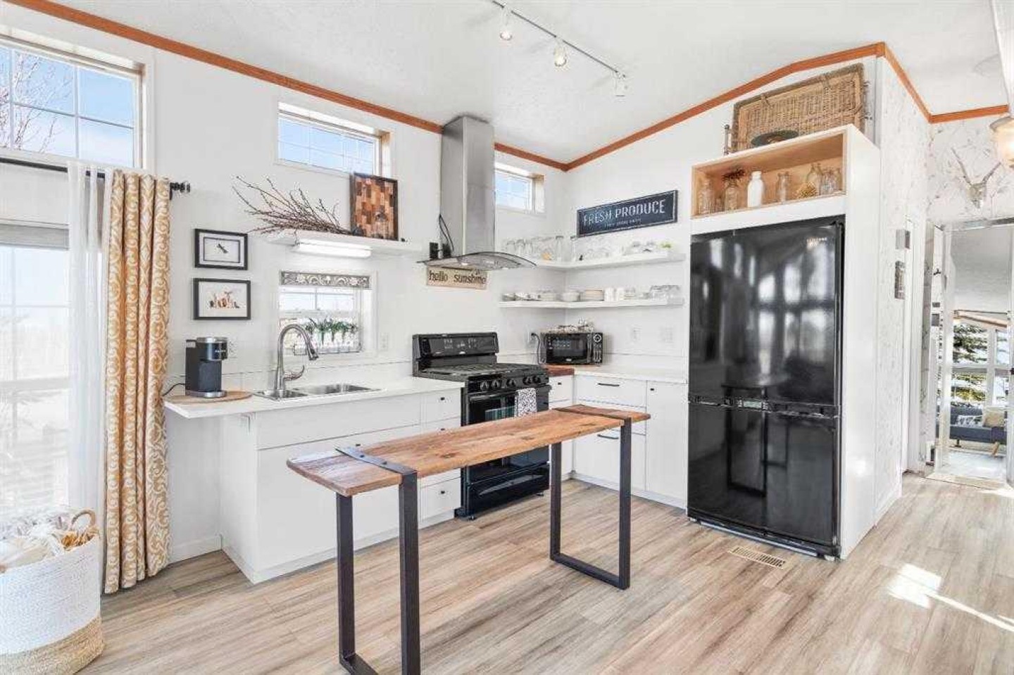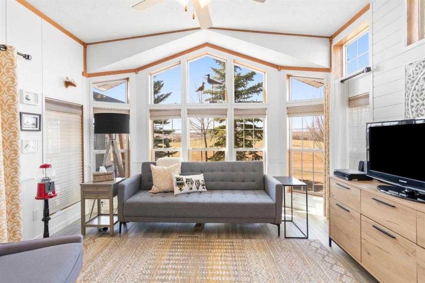 Welcome to the serene beauty of Whispering Pines, where every day feels like a lakeside getaway. Nestled on the shores of picturesque Pine Lake, this exceptional property offers the perfect transition from weekend camping to full-time ( 4 season) lakeside living. Set apart with no neighbors on three sides, this unique lot offers breathtaking panoramic views of the golf course, tranquil pond and sparkling lake just a walk away— an unrivaled retreat of privacy and natural splendor. Step inside the charming park model, where sunlight floods the open-concept interior. The well-appointed front kitchen, cozy dining area and spacious living room create a warm and inviting atmosphere — perfect for everyday living or entertaining. The primary bedroom easily fits a king-size bed. Hosting guests? A pull-out sofa in the living area ensures everyone has space to relax. Double sliding doors lead to a large east-facing deck with a pergola — ideal for morning coffee, evening dinners, or simply soaking in the spectacular views. Equipped with a natural gas furnace, this all-season escape is comfortable year-round. Whether you are seeking solitude, adventure, or a blend of both, Whispering Pines delivers. This community allows short term rentals. As part of a gated, bare land condominium community, residents enjoy access to top-tier amenities including an 18-hole golf course, indoor heated pool, fitness center, clubhouse, restaurant, playground, marina, and sandy beach. From boating and fishing to golfing and swimming, there is something for everyone. Located just 30 minutes from Red Deer, this fully furnished, pet-friendly, turnkey property offers convenience, comfort and community — all in one. Bare land condominium ownership means you own the lot, with low monthly fees covering water, sewer, garbage, lawn maintenance, and clubhouse access. Do not miss your chance to own a piece of paradise at Pine Lake — where lake life meets luxury, and every season brings new memories.