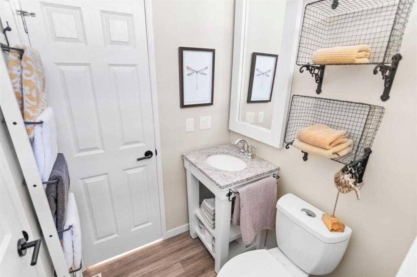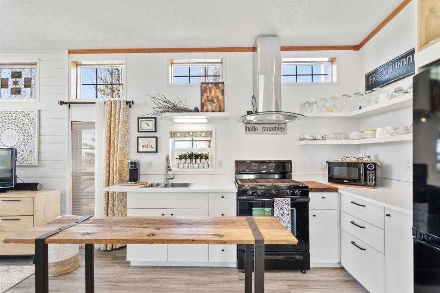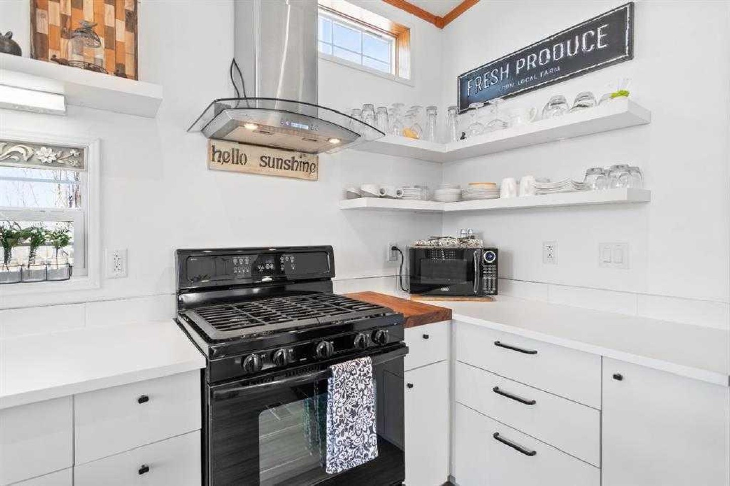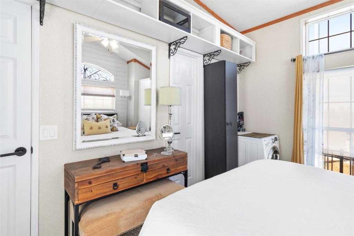 Washer/Dryer is European Combo, Shed, Floating Shelves in Kitchen, White Cabinet in Kitchen, Shoe Holder by Main Door, Mirror & Shelving/Baskets in the Bathroom, Cupboard in Primary, Brown Cabinet in Primary, Lights on Gazebo Ceiling, Gazebo Privacy Blinds, Extra LVP Floating, Screens, Hide A Bed, Shed