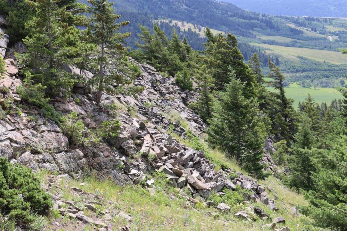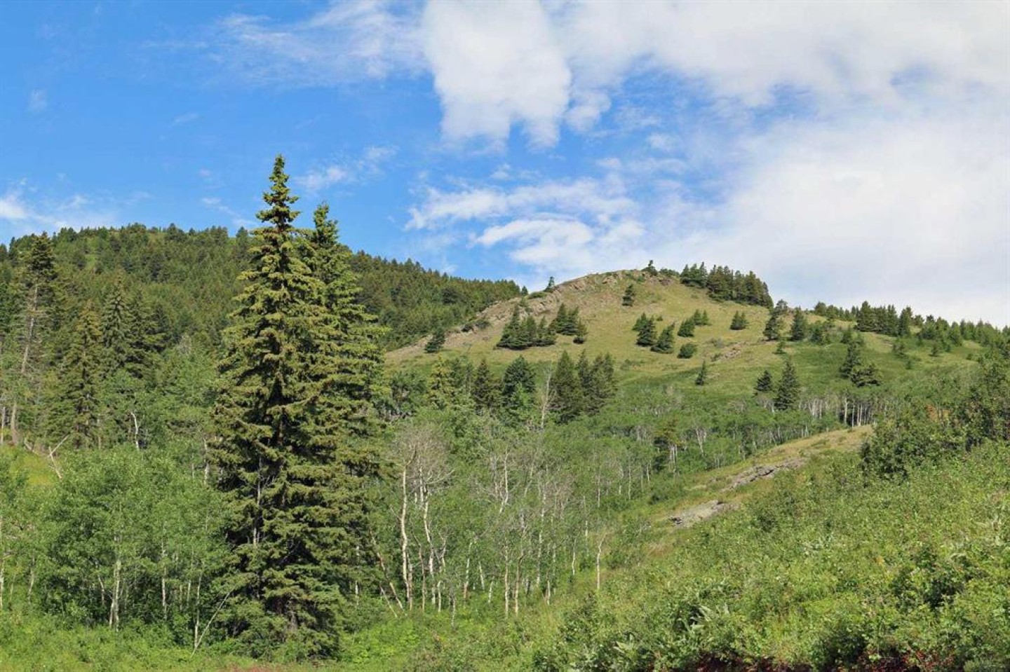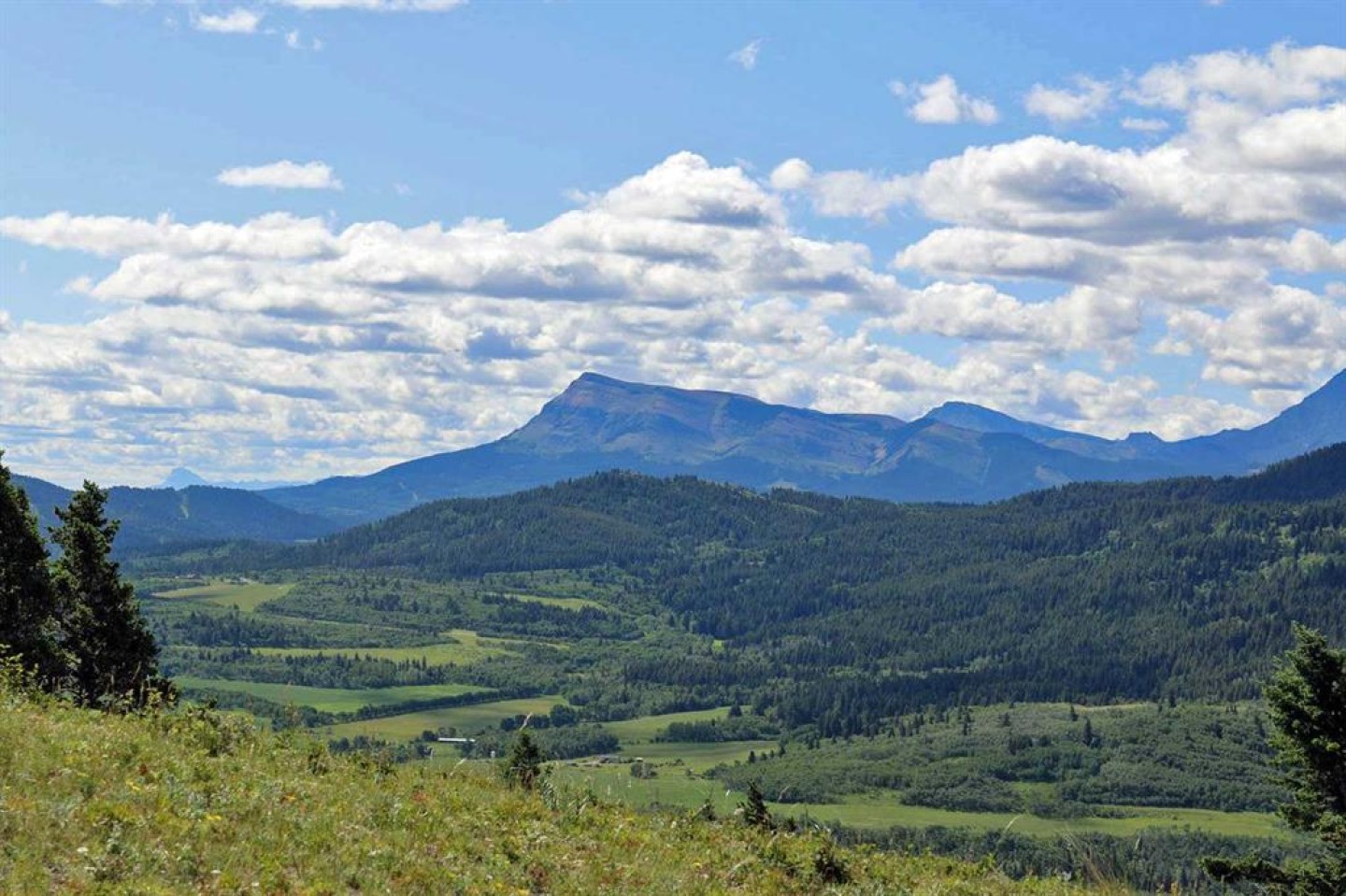 A quarter section of land set in the foothills near Pincher Creek, featuring a mix of open grassland, pockets of trees, rock outcrops, and natural springs. The property includes alpine-style meadows suitable for grazing, with mountain ranges to the south and west providing shelter and a scenic backdrop. The varied terrain supports livestock use and offers excellent wildlife habitat, making it well suited for agricultural operations with added recreational value.
