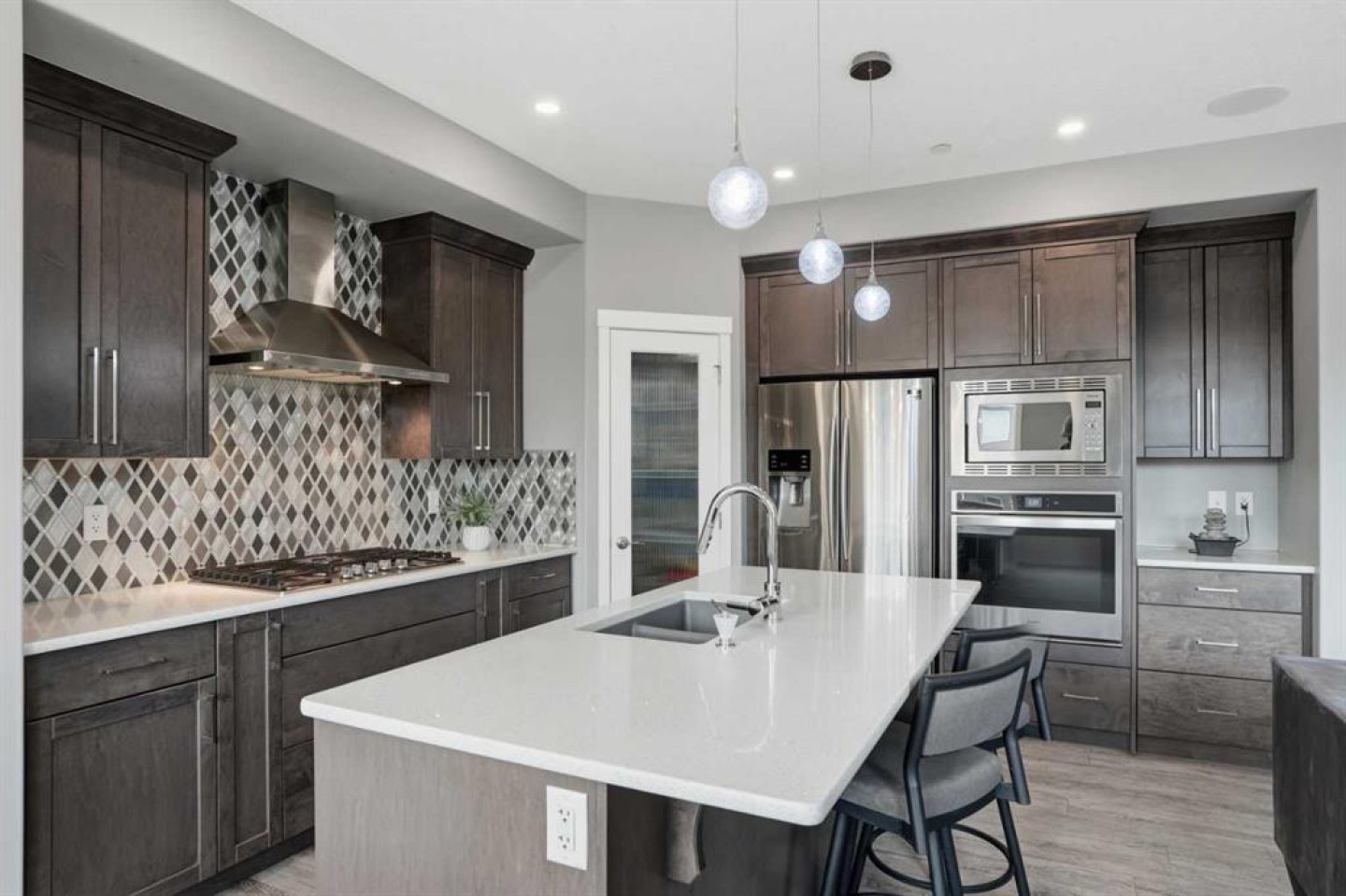 Gorgeous Family Home with Tons of Upgrades | Central AC | 36" Wide Top Mount Gas Stove | Upgraded Hood Fan | Quartz Countertops | Full Height Cabinets | Diamond Backsplash | Kitchen Island with Barstool Seating | Main Level Bed & 3pc Bath | Plethora of Windows with Natural Light | Built-in Camera System | Built-in Sound System | Electric Fireplace | Central Vacuum System with Kitchen Toe Kick | Wide Front Entrance Stairwell | 3 Spacious Upper Level Bedrooms | Comfortable Family Room | Grand Laundry Room | 9 Ft Ceilings Main Level & Basement | Separate Entry to Basement | Finished Basement | Basement Sunshine Window | Wet Bar | Gym | Studio | Beautiful Backyard | Expansive Duradek with Access to Lawn | Landscaped with Exposed Concrete Patio | Great Privacy with Tall Aspen Trees & Perineal Plants . Welcome to your stunning 2-storey family home boasting 2,944 SqFt of developed living space throughout the main, upper & basement levels. Full of upgrades, this home is one you won't want to miss! The front door opens to a wide foyer with views of the open to below ceiling to the second level. The layout is incredible as its both open and functional for a large family. The open concept living kitchen, dining and living rooms make this the premier home for entertaining friends. The kitchen is outfitted with full height cabinets, a 36" top mount gas stove, upgraded range hood fan, built-in stainless steel appliances, sparkling quartz countertops and a kitchen island with barstool seating. The diamond design backsplash adds character tot this space you don't see every day! The dining & living rooms are framed with large windows that fill the space with natural light. The door off the dining room leads to the grandiose duradek where you'll enjoy summer BBQs! The living room is centred with an electric fireplace & a TV ready wall above. The main level has a bedroom & a 3pc bath great for a large family or multigenerational living. Upstairs has 3 bedrooms & a bonus room all with plush carpet flooring. The primary bedroom is paired with a deep walk-in closet & private 5pc ensuite. The ensuite has a deep soaking tub, double vanity, walk-in shower & private washing closet. Bedrooms 2 & 3 are both a great size & share the 4pc bath with a tub/shower combo. The family room is a bonus to your comfortable living space providing you with a plush space to unwind in the evenings. The upper laundry room is larger than normal with a folding shelf & space for cabinet storage. Downstairs, the finished basement has a separate side entry giving you more than one entry access. This space has been designed for health! The rec room is currently used as a studio/gym with a wall full of mirrors that beam the natural light off of the sunshine window. A wet bar in this space is a bonus as it allows for entertainment or a juice bar to the studio! The basement has a 4pc bath & great storage. Head outside to the private backyard with mature Aspen trees & perineal plants. Hurry & book your showing today!