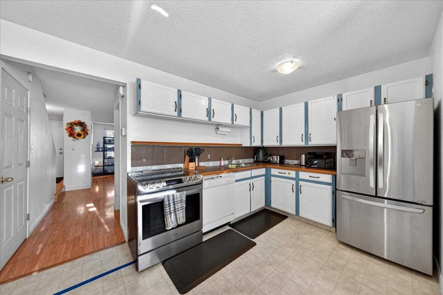 **OPEN HOUSE | SUN JAN 18 2-3:30PM** This 3 bedroom, 1.5 bath, two storey home offers over 1,800 sq ft of livable space, including a fully finished basement. No garage? No problem — there’s an enormous storage room in the basement plus an additional storage room conveniently located on the deck and attached to the unit. Set on a quiet street, the home features a bright and functional layout with a spacious living room, dining area, and kitchen that opens onto a sunny back deck (dare we say, with views of COP). The finished basement adds valuable extra space with a rec room, laundry, and exceptional storage. Outdoor living is a bonus here too, with an oversized south-facing deck that extends to a shared private fenced yard, and an upstairs private balcony off the primary bedroom. Parking is easy with one assigned stall plus convenient street parking right out front. The current owners have truly loved and maintained this home. As an important update for an established community, the sewer line has recently been scoped and augured, offering added peace of mind. While these units were originally built without hood fans, the owners thoughtfully upgraded the kitchen with a LG ventless /recirculating stove (see LG website for more info on ventless stoves). Enjoy being close to parks, schools, transit, and shopping, all within a well-managed complex with low condo fees and a proactive board. Pets are allowed with board approval. All that’s left to do? Add a fresh coat of paint and make it your own. Check out the 3D tour or sound byte for more photos.