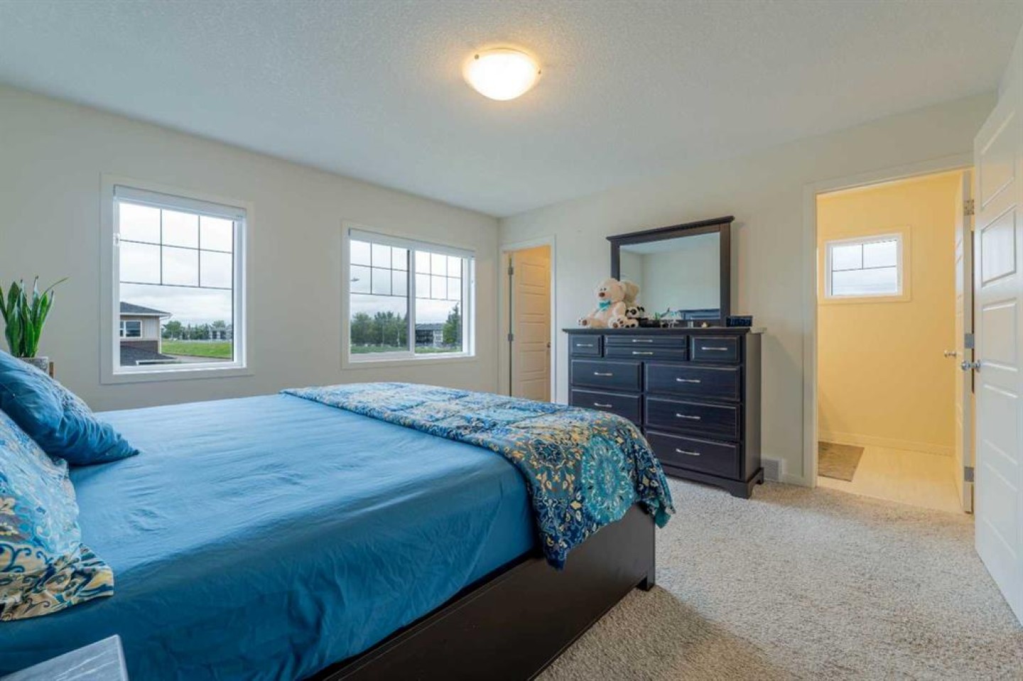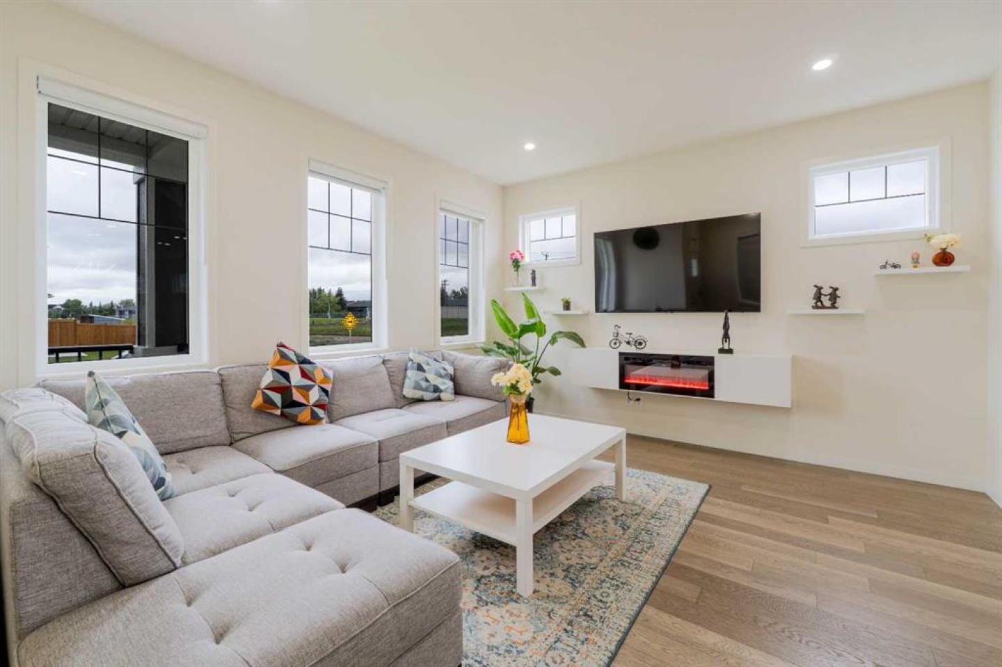 CORNER TRADITIONAL LOT | SEPARATE ENTRANCE TO THE BASEMENT | LOTS OF UPGRADES | PRIME LOCATION | CONVENIENT RV PARKING THROUGH THE ALLEY Welcome to this beautifully designed laned home in the desirable community of Midtown, ideally situated on a rare traditional corner lot next to green area & walking trail with excessive outdoor space at the front, back, and sides—perfect for summer BBQs, family gatherings, or a fun play area for the kids. This beautiful North-facing home offers the perfect orientation for natural light lovers — with abundant sunlight streaming into the backyard from morning to dusk. Step inside to an inviting open-concept main floor with soaring 9-ft ceilings and an abundance of windows that flood the space with natural light, keeping it bright and cozy all day long. The layout offers a spacious front living area that creates a cozy ambiance, a dining space at the back, and a gourmet kitchen at the center—truly the heart of the home. The chef’s kitchen features ceiling-height cabinetry, a large central island with QUARTZ countertops, premium stainless steel appliances, including a gas stove and hood fan, upgraded lighting with pot lights , plenty of storage & spacious pantry provides additional storage to keep everything organized and within reach. A convenient half bath completes the main level, leading out to a rear deck, a generous backyard, and the concrete pad for Double Car Garage. Upstairs, you’ll find three generously sized bedrooms, including a primary retreat with a walk-in closet and private 4-piece ensuite. The two secondary bedrooms are well-sized and share a centrally located full bathroom. All full bathrooms feature upgraded tiles flooring, undermount sinks & timer-controlled exhaust fans. For added convenience, the Whirlpool washer and dryer are also located on the upper level which also features tile flooring. The home also includes a full basement with 9-ft ceilings and a separate side entrance, offering endless potential for future development—whether it’s a legal suite, home gym, or entertainment space. Located in the vibrant, family-friendly Midtown community, this home offers access to beautiful walking paths, parks, a central pond, and is just minutes from schools, shopping, and dining. With quick access to Highway 2, commuting to Calgary is fast and stress-free. This Home Has It All – Space, Style & Location! This is a rare opportunity to own a stylish, move-in ready home on a corner lot in one of Airdrie’s most sought-after neighborhoods. Book your private showing today and fall in love!