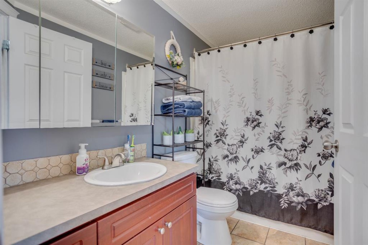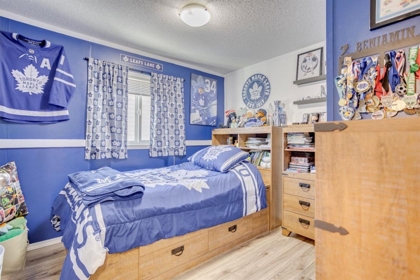 This home offers three well-sized bedrooms, including a generous primary suite complete with a walk-in closet and a 4-piece ensuite featuring ceramic tile flooring and a relaxing soaker tub. Two additional bedrooms are located on the opposite side of the home and share direct access to a 4-piece bathroom and a second living area, ideal for a home office or family room.