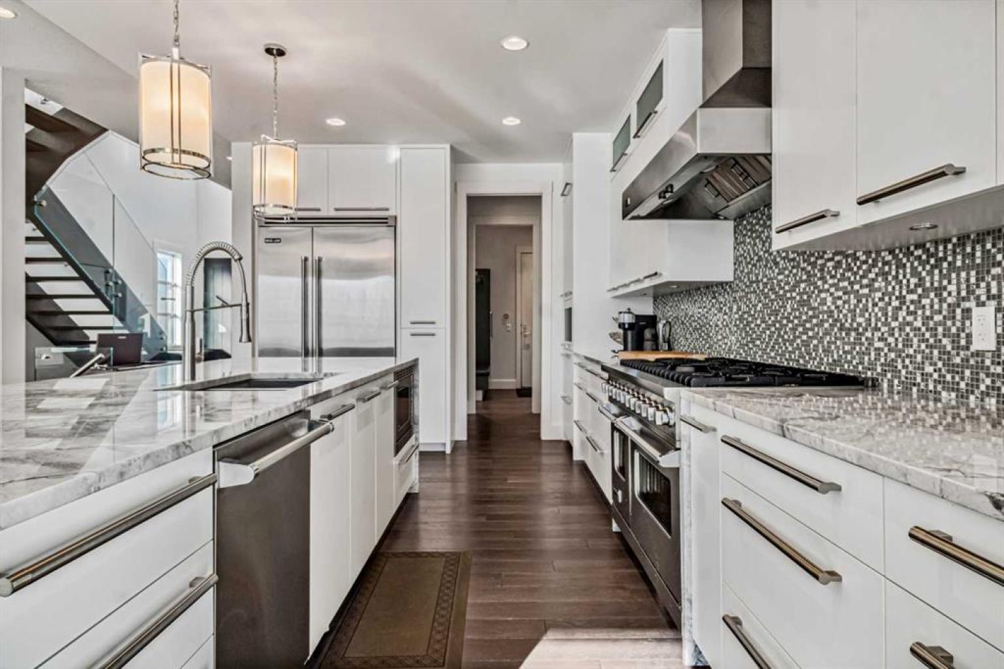 This more than a home; it is an experience! A one of a kind sanctuary where luxurious design meets functionality, with over 3,600 sq. ft of exquisitely developed living space, every inch has been thoughtfully designed with precision, artistry, and a passion for modern elegance. An open to above foyer welcomes you with soaring ceilings & an abundance of natural light that floods through the home’s SOUTH facing windows. Wide plank hardwood floors flow seamlessly throughout, while the show stopping glass encased staircase immediately commands attention, a true architectural statement that sets the tone for the sophistication that awaits within. The home is enhanced by 10ft ceilings and 9-foot doors throughout, creating an airy, expansive feeling that flows from room to room. At the heart of the home lies a kitchen that redefines luxury living. Dramatic in scale, it features a spectacular quartz island with Dual waterfall edges that wrap elegantly on both sides, creating endless space for meal prep and entertaining. The premium appliance package, paired with custom cabinetry, and a thoughtfully designed walk-through pantry that connects directly to the oversized double garage, ensures this space is as functional as it is breathtaking.The dining area is a true showpiece, designed to host intimate dinners or grand celebrations, seamlessly flowing into the adjacent living spaces while capturing the natural light and warmth that fills the home. The family room, anchored by a dramatic floor to ceiling one of a kind concrete fireplace, exudes modern elegance and warmth, creating a space that is both cozy and bold. Upstairs, 3 generous bedrooms await, including a primary suite that is a sanctuary of indulgence. This retreat is impossibly spacious, with room for a king-sized bed without ever feeling crowded. A private balcony invites morning coffee or evening reflection, while the custom dressing area with built-ins & a separate mirrored makeup vanity station adds an intimate & luxurious touch. The spa-inspired ensuite is a masterpiece in itself, boasting a freestanding soaker tub, fully tiled walk-in shower, dual quartz vanities, and heated tile flooring.The fully finished basement is designed for unforgettable entertaining. A wet bar with quartz counters, sink, built-in dishwasher, & dual beverage fridge. The space easily accommodates a pool table, a games area & a media corner designed for epic movie nights. The south facing backyard is a private oasis with a full-length stamped concrete plus irrigation system & fully equipped with A/C, ensuring comfort year round. Situated in the heart of Winston Heights, one of Calgary’s most desirable Inner-city communities with it's unparalleled access to the city’s most coveted amenities: The Winston Golf Club, Bridgeland’s trendy shops & restaurants, Aquatic Centre, Parks, Schools, Paths , combining Inner-city with serene seclusion for those who appreciate refined living at its best!