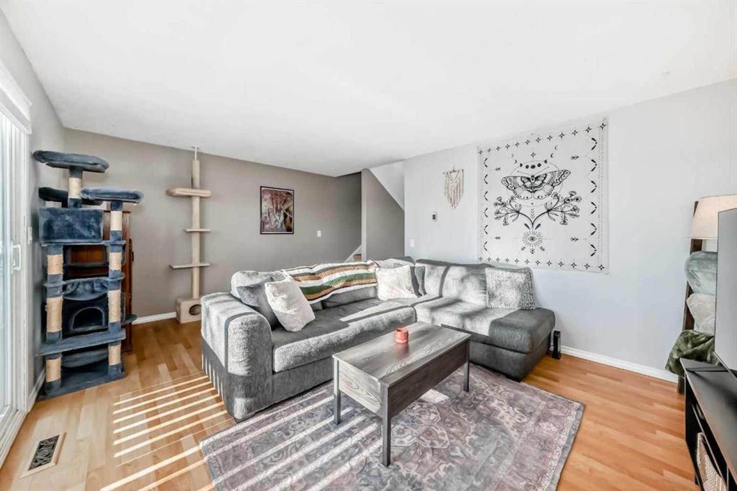 Welcome to this spacious 1,126 sq ft, 5-level townhouse condo plus basement, offering an incredible amount of room for families, couples, or anyone craving extra space to spread out. This home features 3 bedrooms and 2 bathrooms, a plug-in parking stall right on your front driveway, and a fully fenced yard—perfect for summer BBQs, relaxing in the sunshine, or letting kids play. The gorgeous bright and functional kitchen was beautifully updated in 2020, offering beautiful cabinetry, tons of counter space, ideal for meal prep or dual chefs, and includes stainless steel appliances. A new furnace installed in Spring 2025 adds comfort and peace of mind. Upstairs you’ll find two bedrooms with vaulted ceilings and a 4-piece bathroom, while the top floor is dedicated to a truly impressive primary suite with dual closets and a private balcony overlooking the south-facing backyard. With multiple outdoor spaces including a balcony off the living room, patio doors to the yard from the walkout lower level, and a second balcony off the primary bedroom, this home is designed for indoor-outdoor living. The basement offers a convenient 2-piece bathroom plus the utility room. A unique layout, great upgrades, and exceptional space—this is a must-see property!