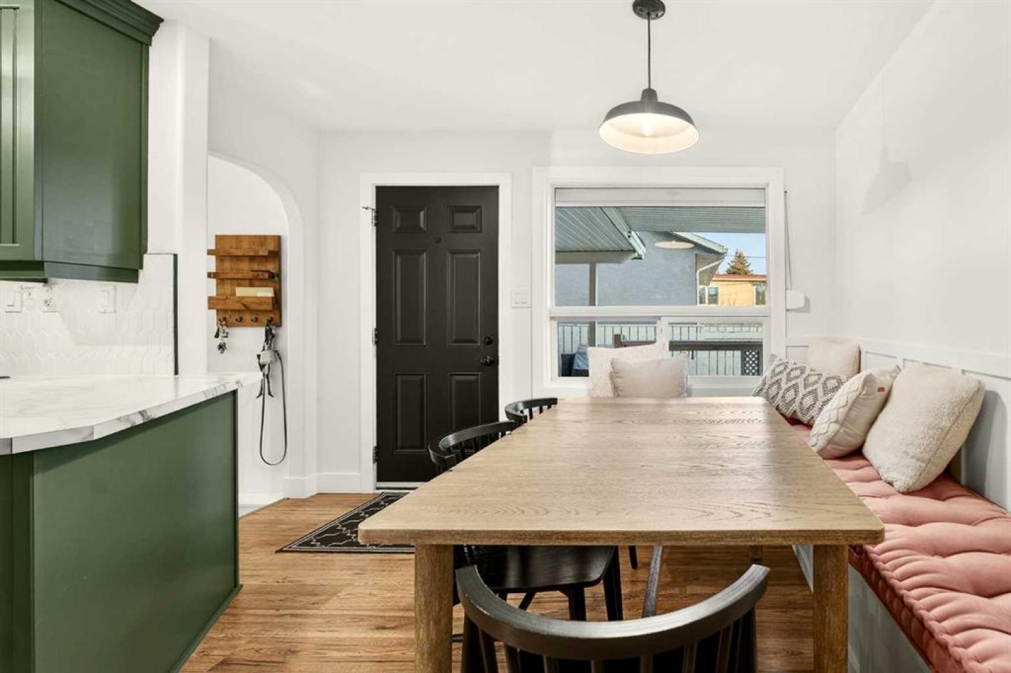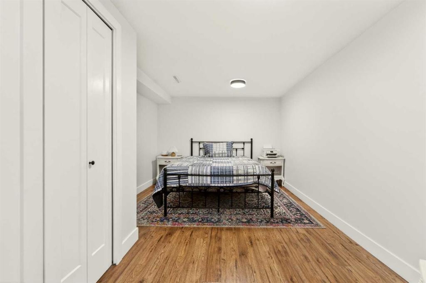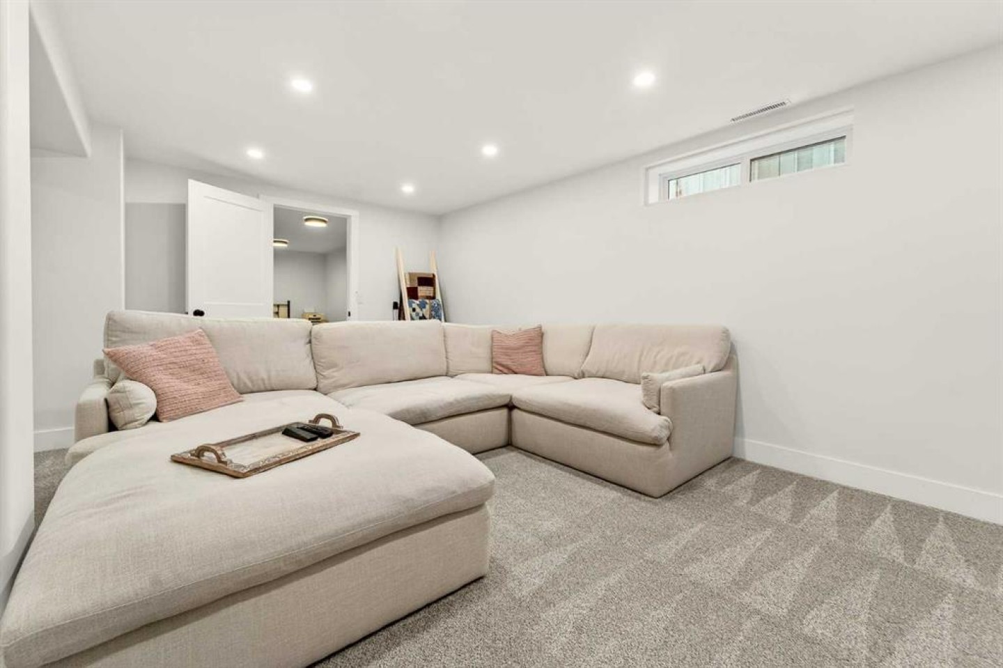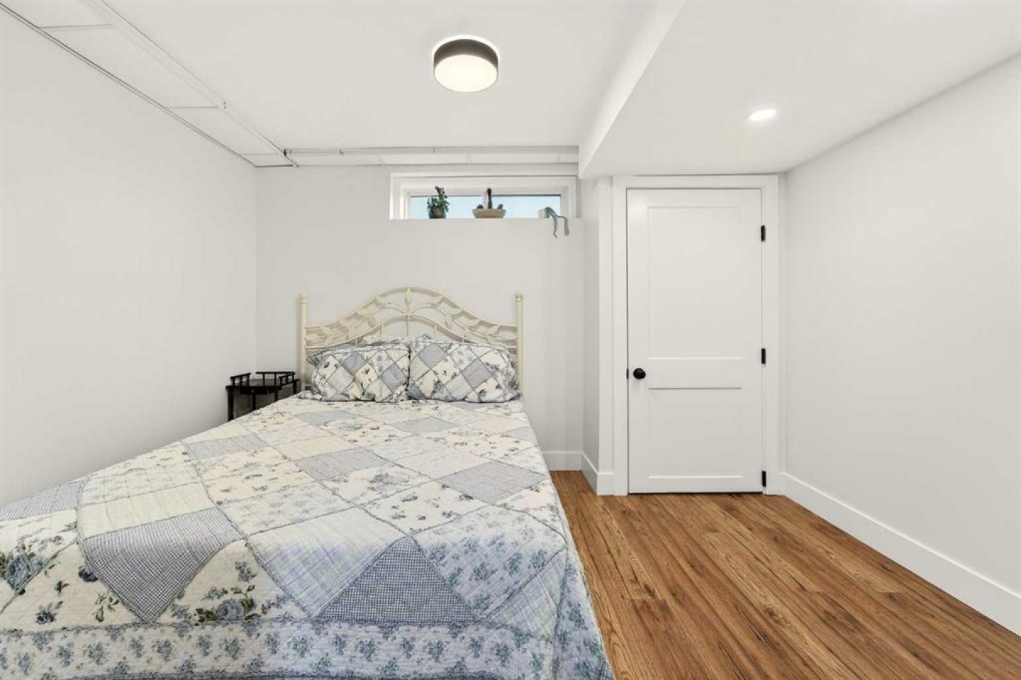 This fully renovated bungalow is a rare blend of high-design finishes and thoughtful energy-efficient upgrades, resulting in a home that feels both elevated and intentionally built for long-term comfort. From the outside in, nearly every detail has been updated, including solar panels, vinyl windows, and thickened exterior walls with added insulation—improving efficiency without sacrificing style. The main living space feels bright and welcoming, anchored by warm flooring, clean white walls, and large windows that flood the room with natural light. The aesthetic throughout the home is modern but approachable, with carefully selected textures and finishes that create visual interest without feeling overdone. The kitchen is the showpiece. Custom green cabinetry adds depth and character, paired beautifully with striking countertops, a crisp tile backsplash, and under-mount cabinet lighting that gives the space a soft, ambient glow in the evenings. Matte black hardware and fixtures tie everything together, creating a cohesive, designer look that feels both current and timeless. The primary bedroom is spacious and calming, finished with warm tones, new wall sconces, and a walk-in closet. The ensuite is nothing short of stunning, featuring a curbless tile shower with a glass door, modern fixtures, and layered textures that give the space a boutique-hotel feel. Just next door, the four-piece main bathroom continues the design theme with a new tile floor, tiled shower surround, and clean, contemporary finishes. A second bedroom on this level has also been fully updated and works perfectly as a guest room, nursery, or home office. Downstairs, the fully developed basement adds substantial living space with plush carpet in the family room, creating a cozy area for movie nights or relaxing evenings. Additional storage has been thoughtfully incorporated, along with a dedicated laundry area. Two more generously sized bedrooms are located on this level, along with another updated bathroom that maintains the same modern design language as the rest of the home. Outside, the double detached garage provides excellent parking and storage, rounding out a property that has been comprehensively renovated with both form and function in mind. There is also a carport at the front of the home for additional parking. This is a home where design, efficiency, and everyday livability come together seamlessly—offering a truly move-in-ready experience with standout style.
