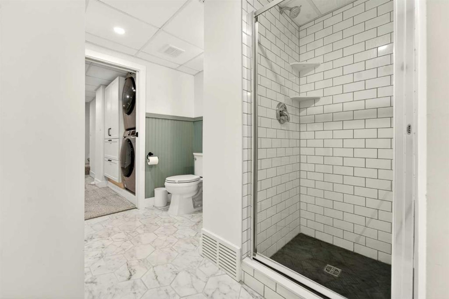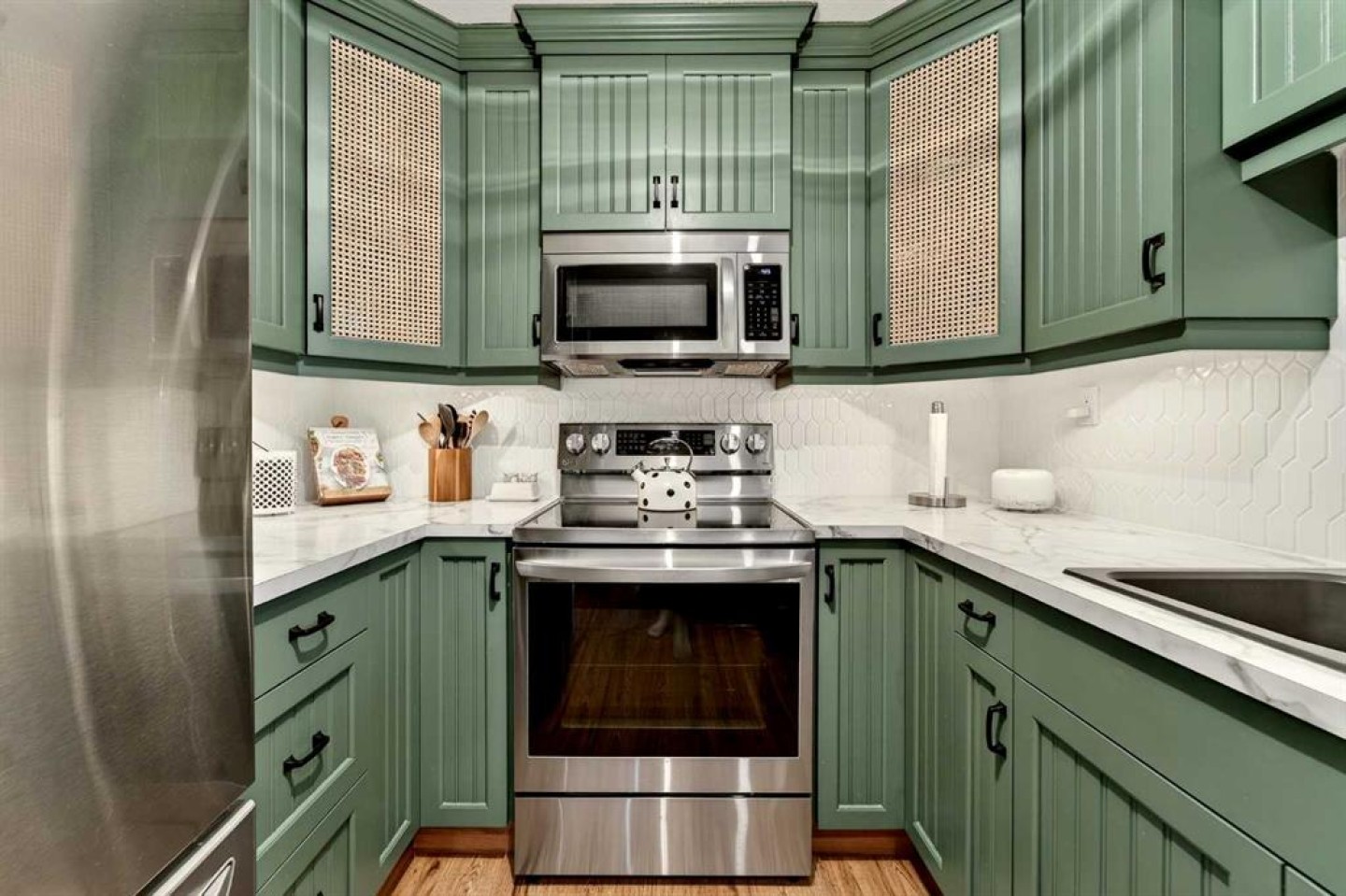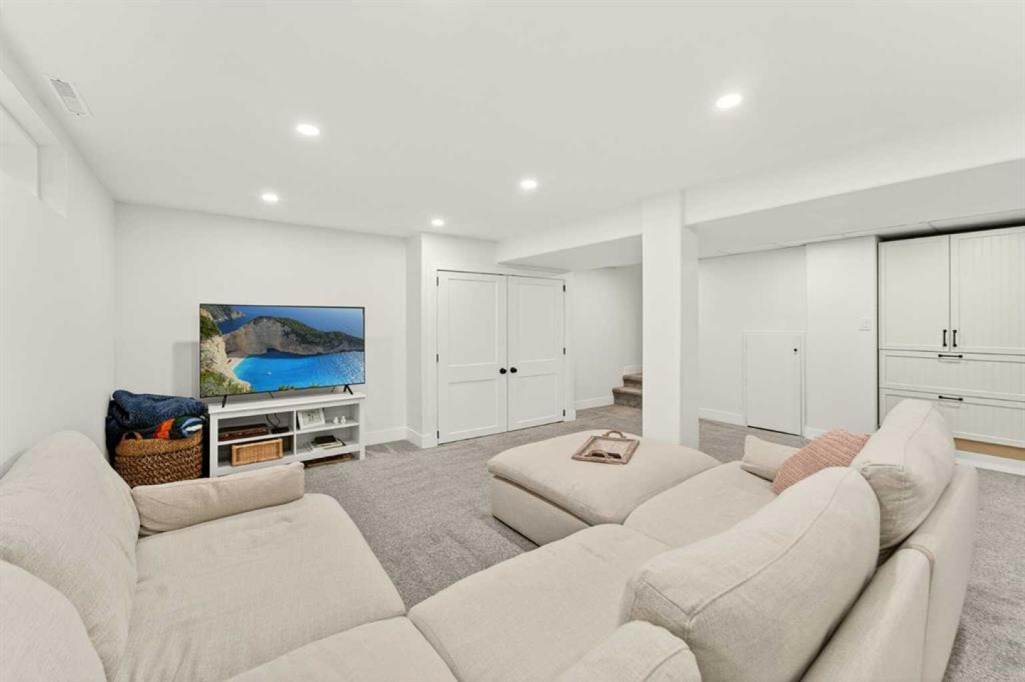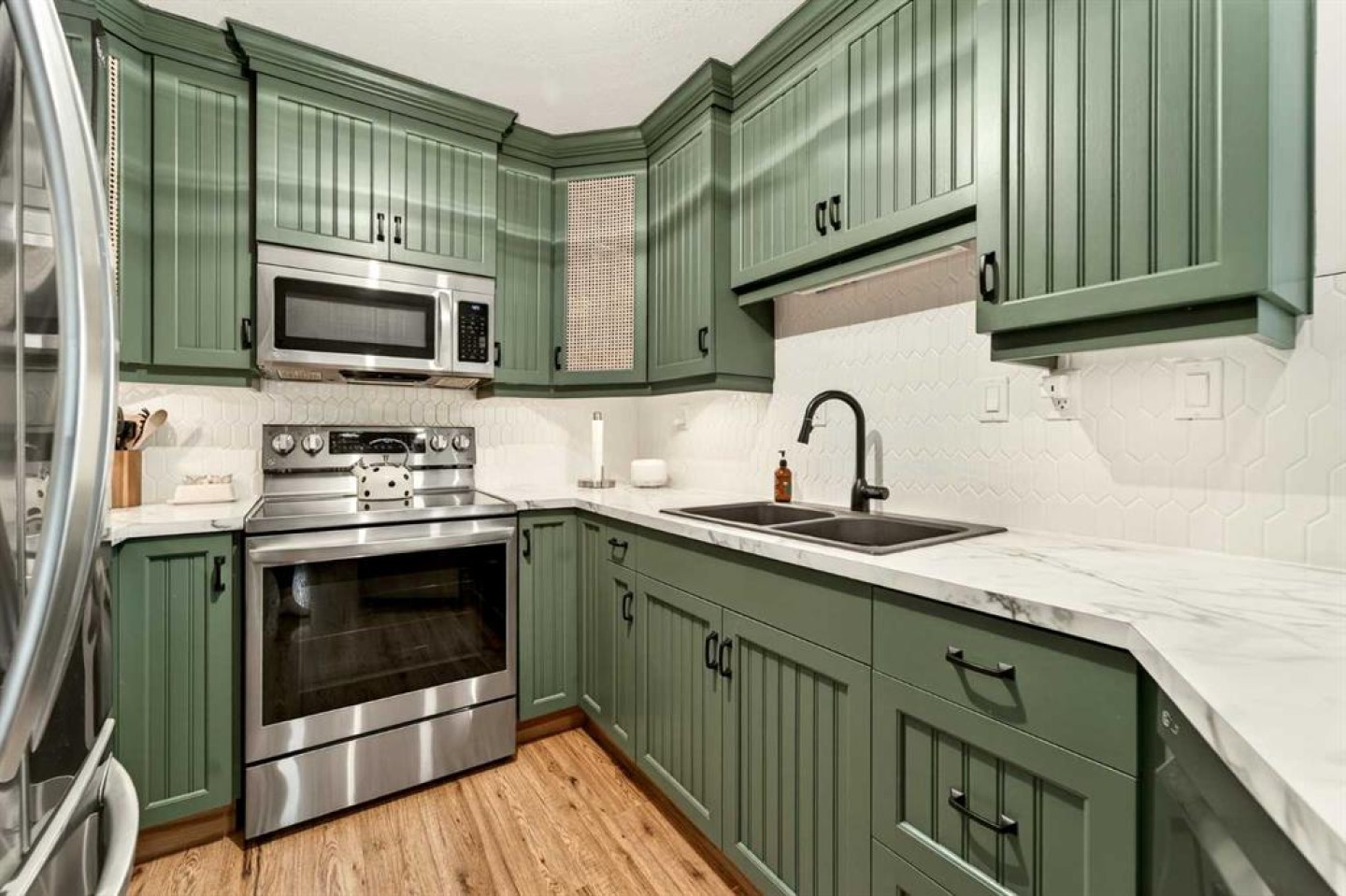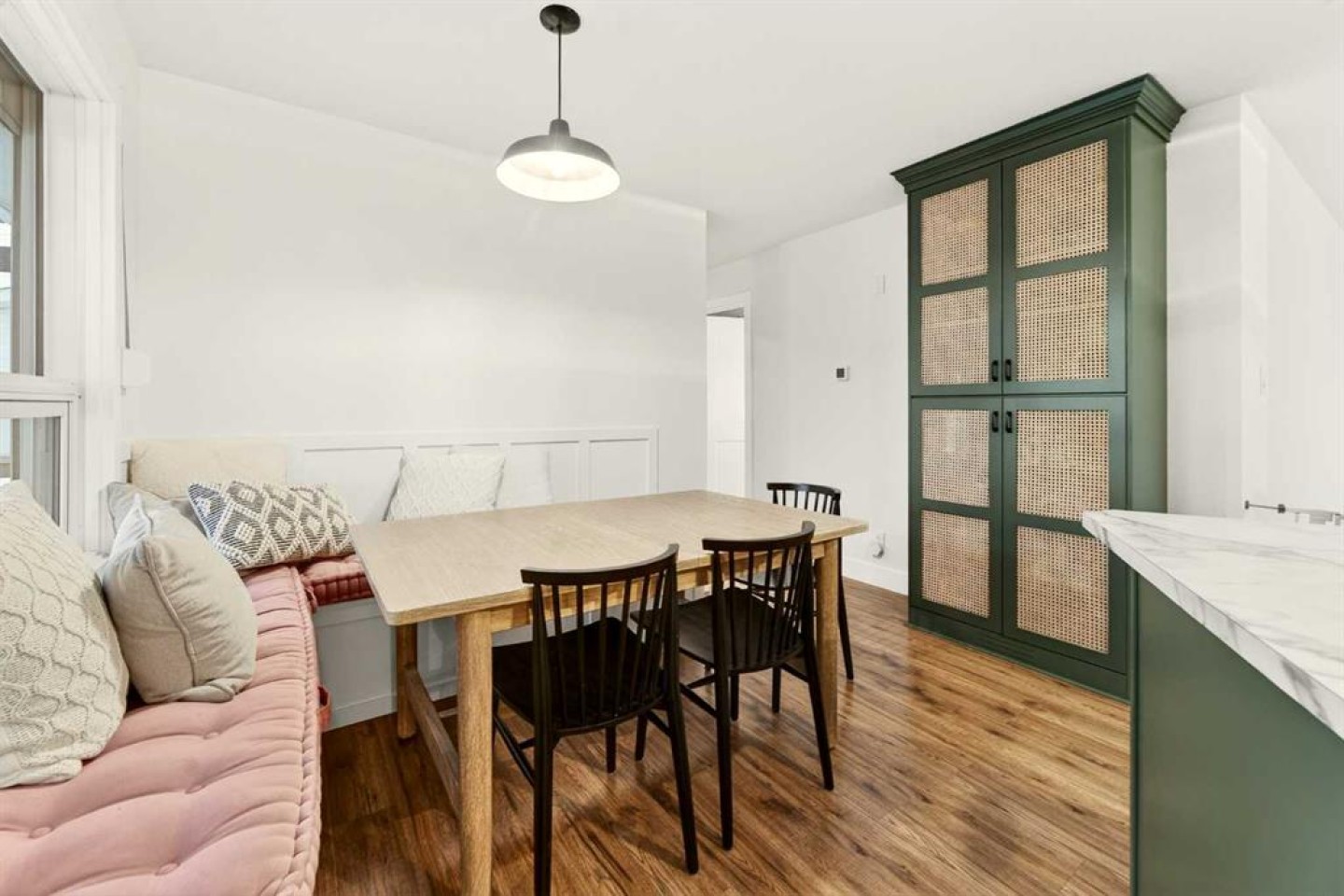 This fully renovated bungalow is a rare blend of high-design finishes and thoughtful energy-efficient upgrades, resulting in a home that feels both elevated and intentionally built for long-term comfort. From the outside in, nearly every detail has been updated, including solar panels, vinyl windows, and thickened exterior walls with added insulation—improving efficiency without sacrificing style. The main living space feels bright and welcoming, anchored by warm flooring, clean white walls, and large windows that flood the room with natural light. The aesthetic throughout the home is modern but approachable, with carefully selected textures and finishes that create visual interest without feeling overdone. The kitchen is the showpiece. Custom green cabinetry adds depth and character, paired beautifully with striking countertops, a crisp tile backsplash, and under-mount cabinet lighting that gives the space a soft, ambient glow in the evenings. Matte black hardware and fixtures tie everything together, creating a cohesive, designer look that feels both current and timeless. The primary bedroom is spacious and calming, finished with warm tones, new wall sconces, and a walk-in closet. The ensuite is nothing short of stunning, featuring a curbless tile shower with a glass door, modern fixtures, and layered textures that give the space a boutique-hotel feel. Just next door, the four-piece main bathroom continues the design theme with a new tile floor, tiled shower surround, and clean, contemporary finishes. A second bedroom on this level has also been fully updated and works perfectly as a guest room, nursery, or home office. Downstairs, the fully developed basement adds substantial living space with plush carpet in the family room, creating a cozy area for movie nights or relaxing evenings. Additional storage has been thoughtfully incorporated, along with a dedicated laundry area. Two more generously sized bedrooms are located on this level, along with another updated bathroom that maintains the same modern design language as the rest of the home. Outside, the double detached garage provides excellent parking and storage, rounding out a property that has been comprehensively renovated with both form and function in mind. There is also a carport at the front of the home for additional parking. This is a home where design, efficiency, and everyday livability come together seamlessly—offering a truly move-in-ready experience with standout style.