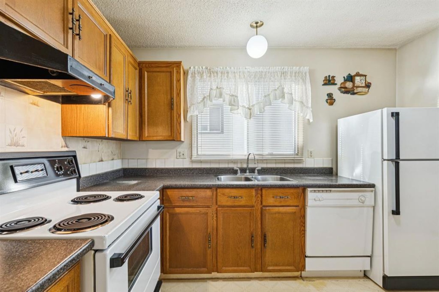 Dishwasher, Dryer, Electric Stove, Freezer, Range Hood, Refrigerator, Washer, Window Coverings