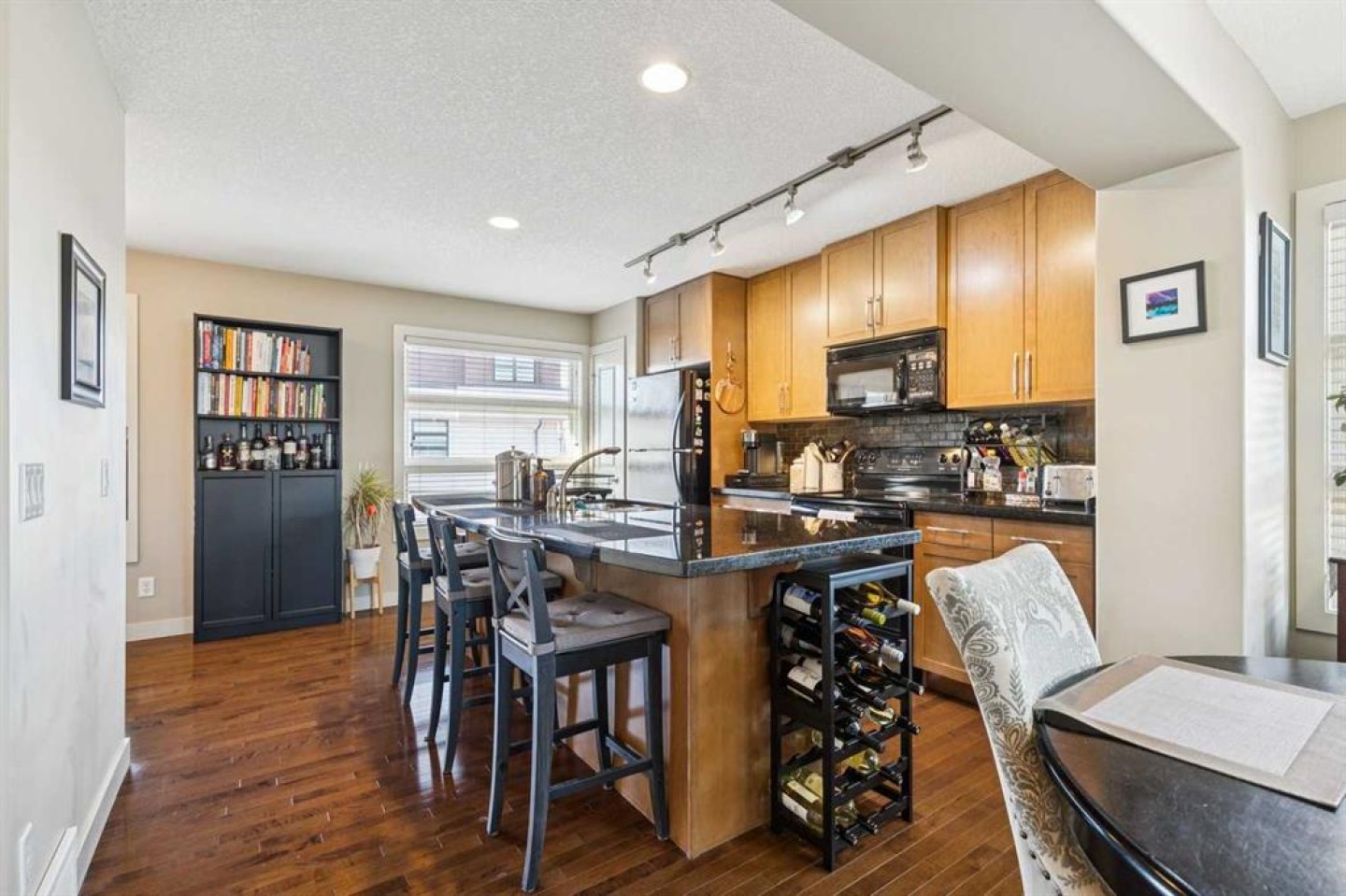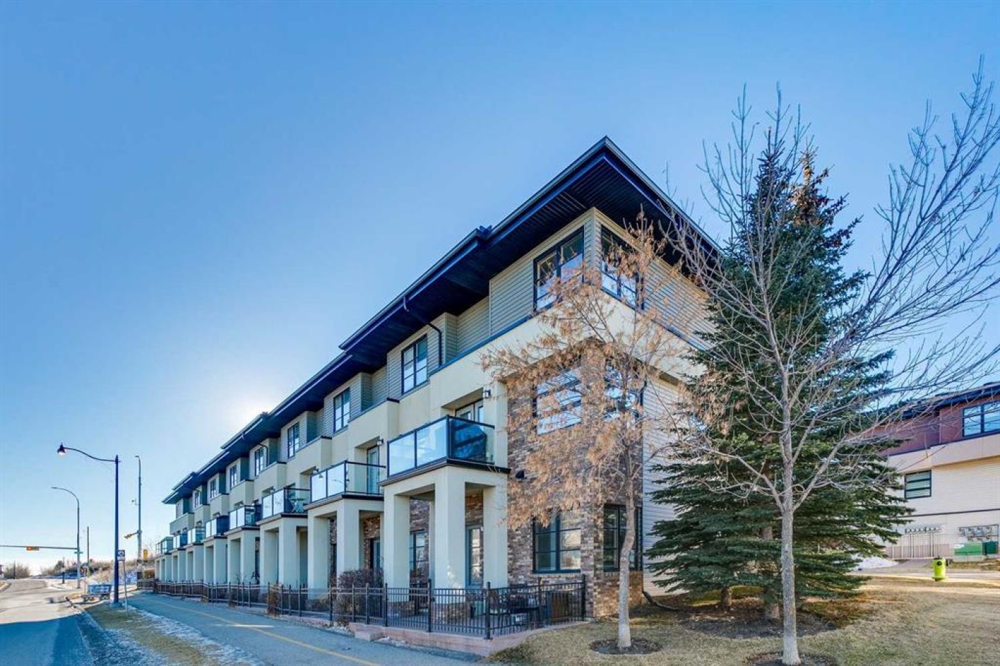 Welcome to this stunning executive townhome located in the heart of Aspen Woods. This end unit will really catch your attention. Featuring 3 levels and over 1500 sq/ft of development, a double-attached garage, a sunny patio for morning coffee and big bright windows throughout. Stepping in, you’re met with a large flex room as well as direct garage access. Up to the main floor, features include a wide-open floor plan, large kitchen with granite island, pantry, nook area, dining area and a large living room surrounded by windows and access to outdoor seating and evening BBQ’s. Upstairs features matching primary bedrooms both with full ensuites as well as laundry. This home has everything you could possibly want, tall ceilings, hardwood flooring, privacy and yet, it’s just steps to nearly 100 shoppes and stores. Aspen Landing is becoming one of the premier communities in Calgary and it’s not hard to see why. Features include access to the mountains, downtown, shopping, parks, the Westside Recreation Center and some great restaurants too. Don’t miss your opportunity to own in this very popular complex!