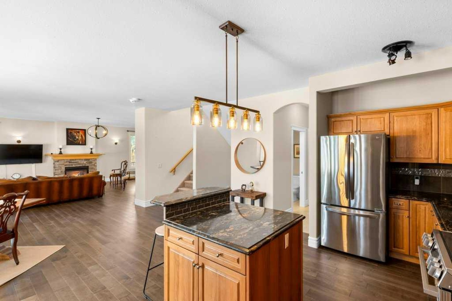 Downstairs, the finished basement is exceptionally inviting with oversized bright windows that truly don’t feel like a basement, plus a fourth bedroom, full bathroom, and a large recreation room—perfect for guests, teens, or movie nights. Enjoy outdoor living at its best with a veranda, front porch, wraparound deck, and a large covered and open west-facing deck—ideal for sunsets and entertaining.