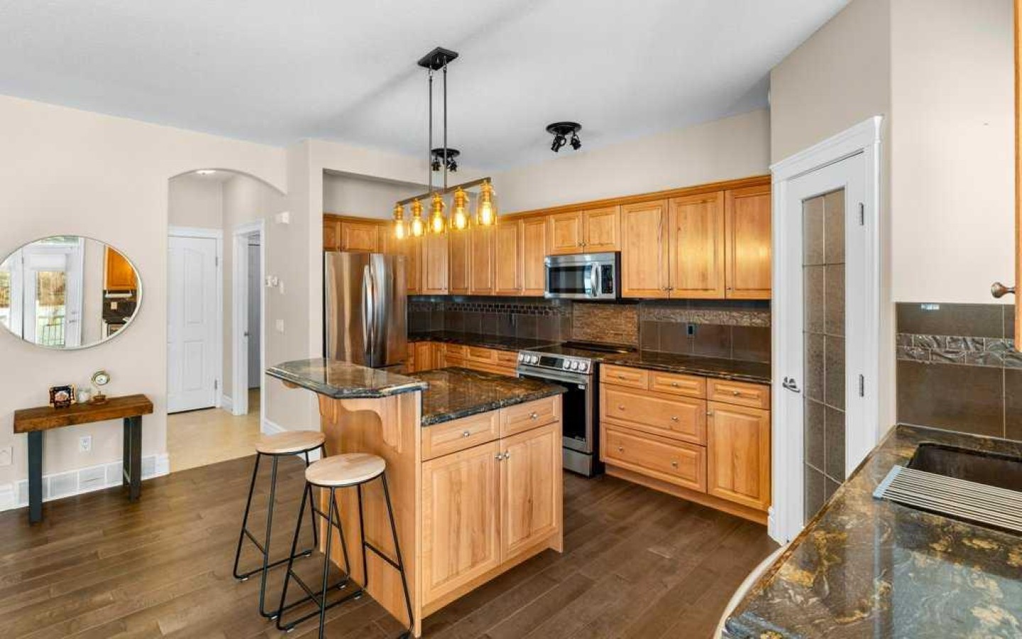 Upstairs, you’ll find a spacious primary bedroom with a walk-in closet and a 4-piece ensuite featuring a corner jetted tub and beautiful views. Two additional great-sized bedrooms offer tons of natural light and gorgeous valley views, while a spacious 4-piece main bath completes the upper level.