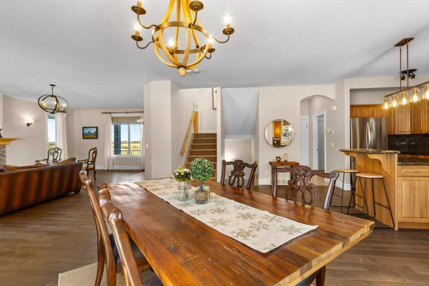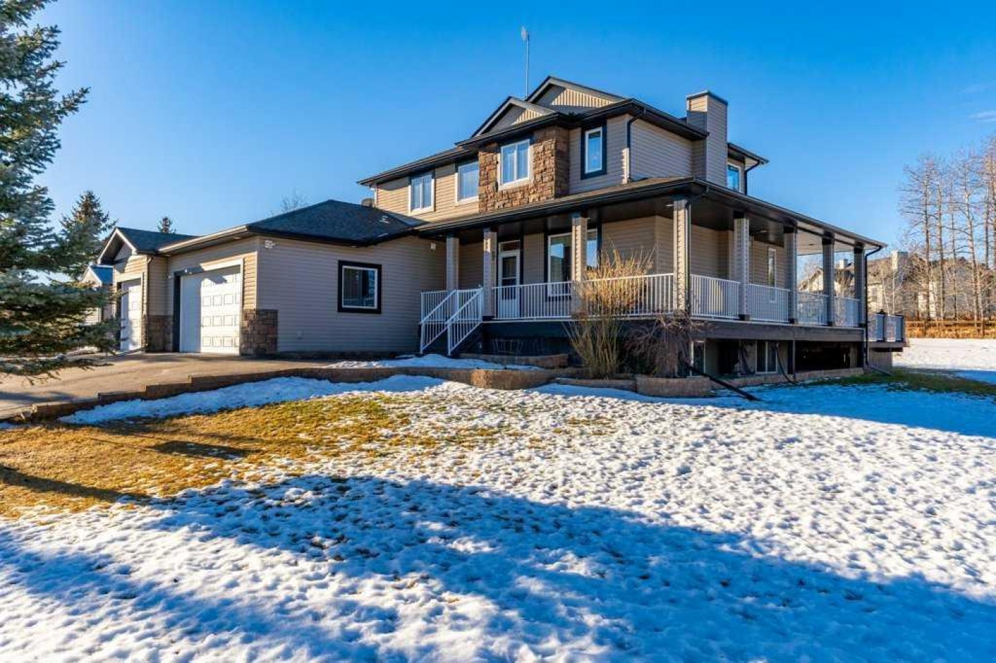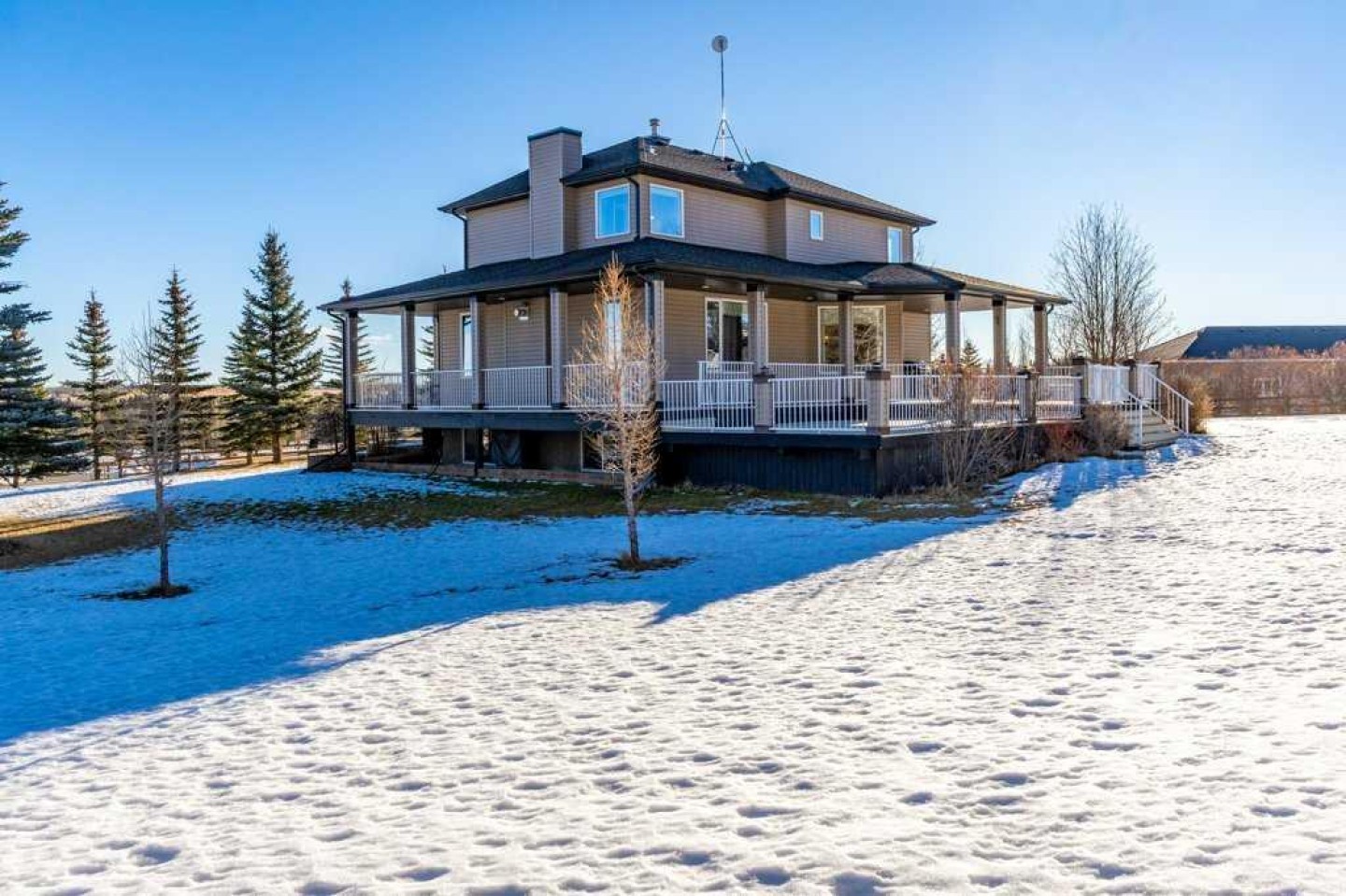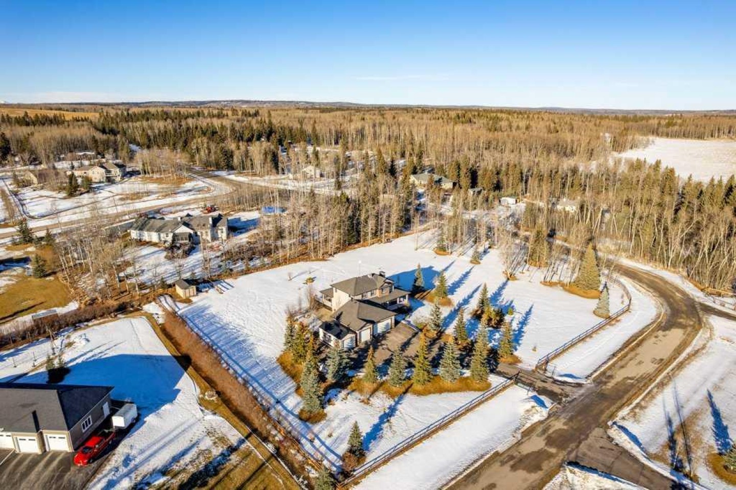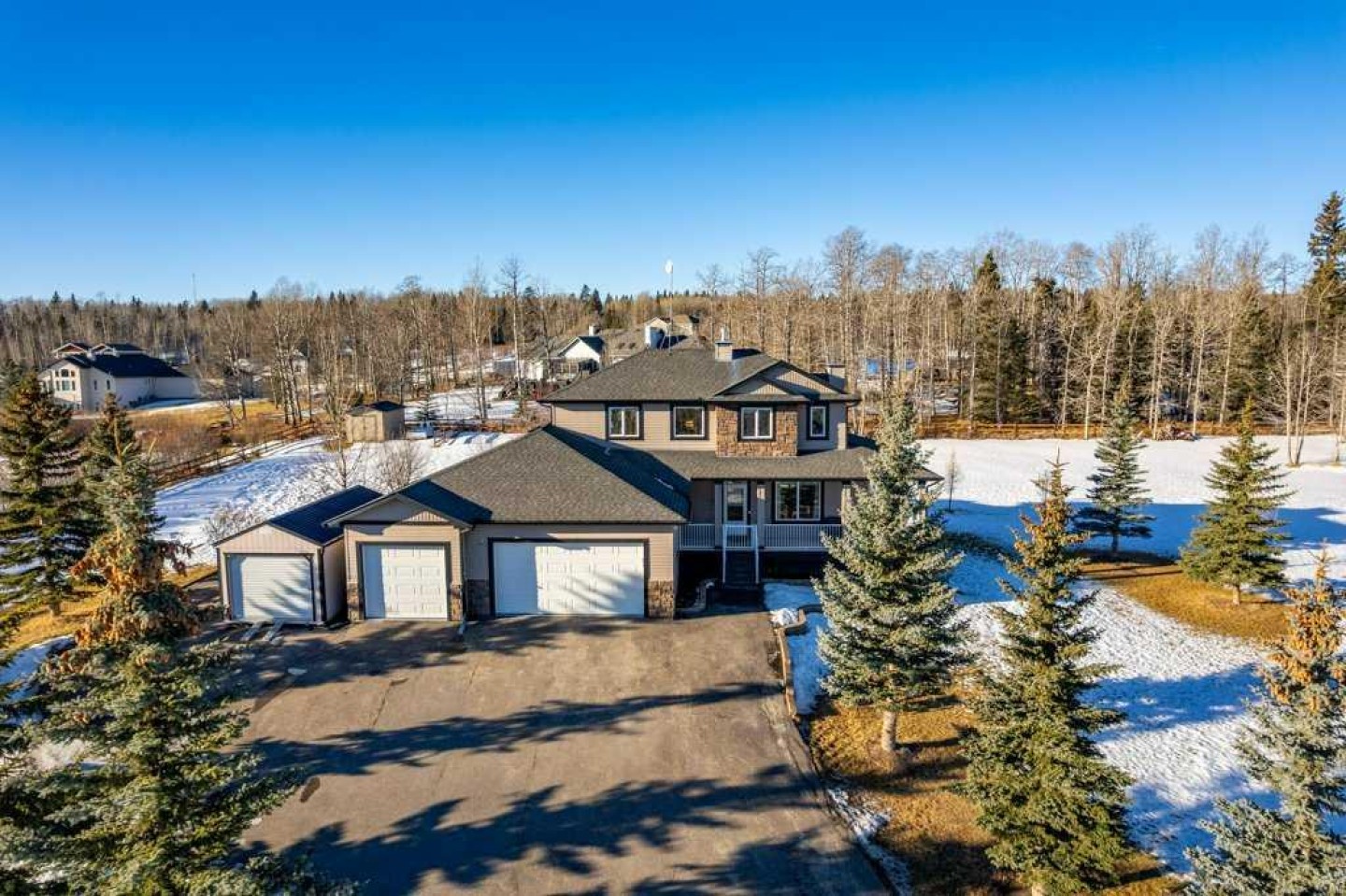 Stunning 3+1 Bedroom, 4 bath, 2-storey home offering just over 2,000 sq ft plus a bright fully finished basement, perfectly set on a beautifully treed and landscaped 2-acre corner parcel in the friendly community of Water Valley. From the moment you arrive—paved driveway, gated entry, mature trees, and a triple attached garage—you’ll feel the pride of ownership. The main floor features soaring ceilings, updated paint and flooring, custom granite countertops, main floor laundry, and central A/C.