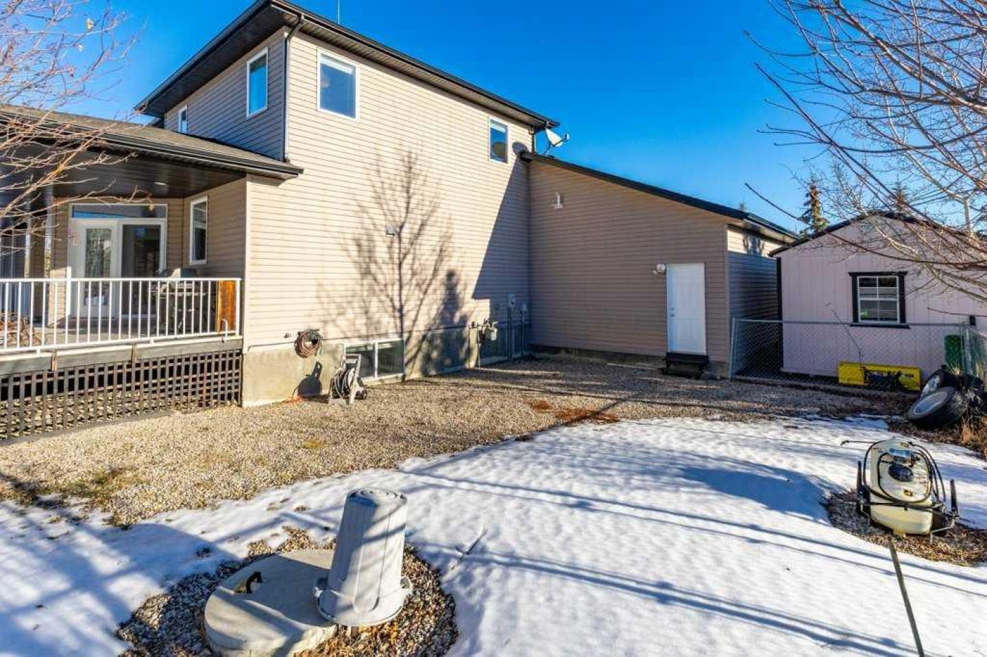 The entire property is fully fenced and gated, includes a large dog run, and an 11’ x 28’ implement shed on skids. In-floor heat in the basement and garage adds comfort year-round. Great water well, recently tested for pressure and potability. Enjoy small-town charm and year-round community events—just 35 minutes north of Cochrane and under an hour to Calgary International Airport.
