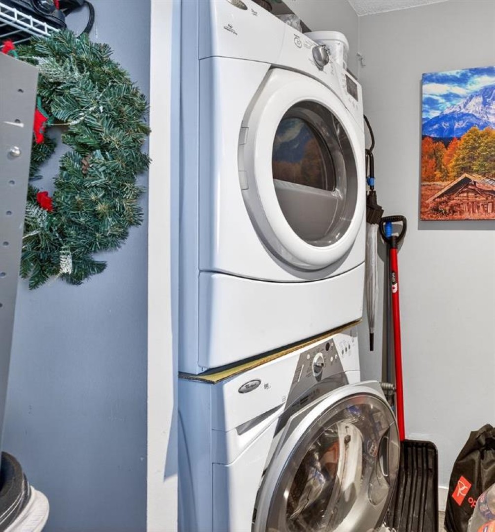 Dishwasher, Microwave Hood Fan, Refrigerator, Stove(s), Washer/Dryer, Washer/Dryer Stacked