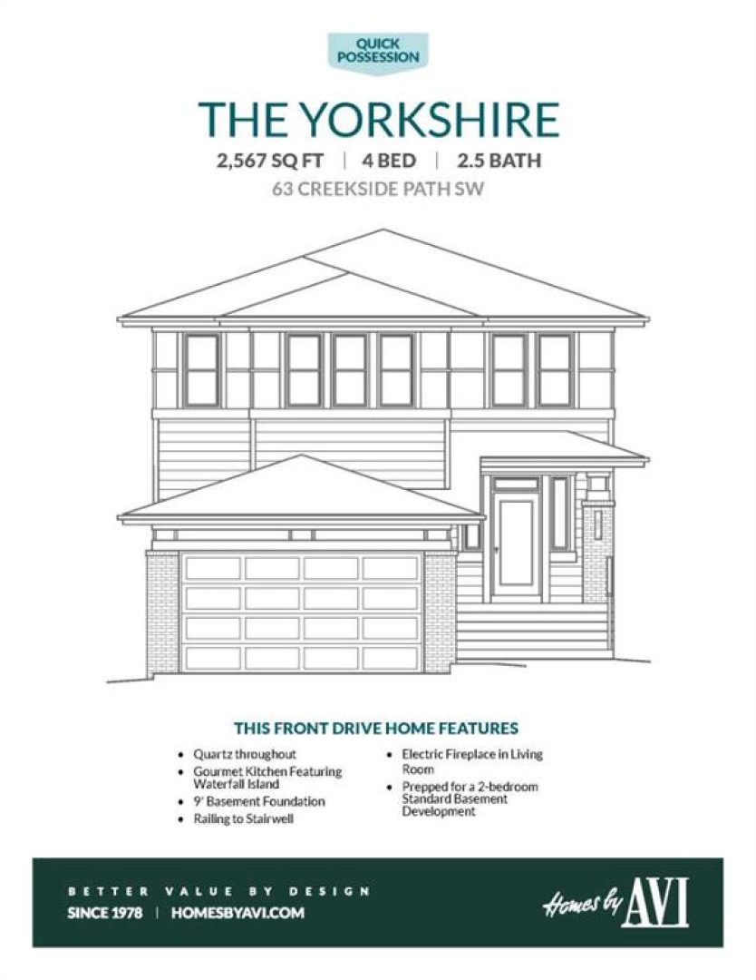 THIS IS THE FLOOR PLAN YOU CHOOSE – The Yorkshire at 63 Creekside Path is wide, deliberate, and refreshingly different. On the main floor, the kitchen is built for use - The WATERFALL QUARTZ ISLAND earns its place as the command centre, backed by FULL-HEIGHT CABINETRY and DUAL PANTRY CABINETS that keep counters clear without trying. A 5-BURNER GAS COOKTOP and CHIMNEY HOOD handle real cooking, while the integrated wall oven and microwave stack keep the space clean and intuitive. The upgraded 3 PANEL PATIO DOOR pulls light across the dining area and makes the deck feel like part of everyday life, not a seasonal accessory. The main floor layout offers that open concept vibe that brings in natural light and ambience, while the configuration still offers plenty of space for each area to have its own unique zone. Function and style become the top priorities with a spacious front entry, a pantry & mudroom walkthrough to the garage, and everything you need in the right place.