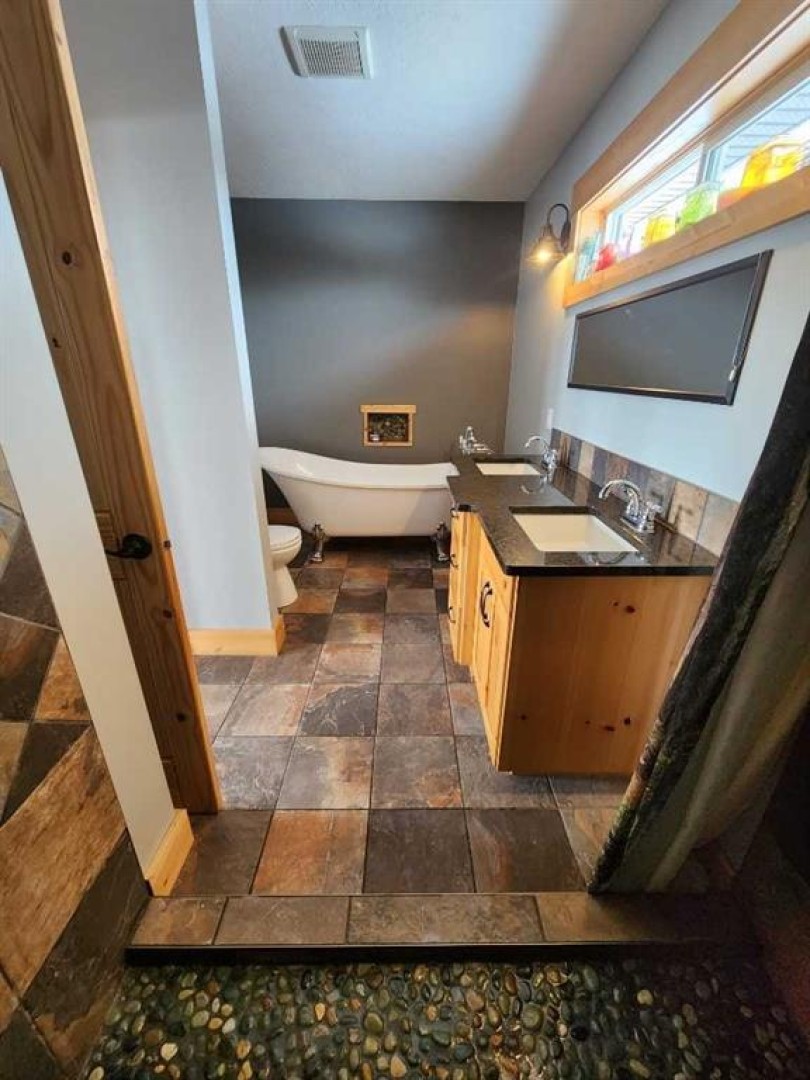 Off-grid paradise just 12 minutes from Stettler. This exceptional property offers over 3,500 sq ft of living space with 5 bedrooms and 4.5 bathrooms, set on approximately 150 acres—including ±100 acres of mature treed wildlife habitatand ±40 acres of productive cropland. Privacy is unmatched, with the nearest neighbour half a mile away, Crown land to the south and Nature Conservancy land to the east.