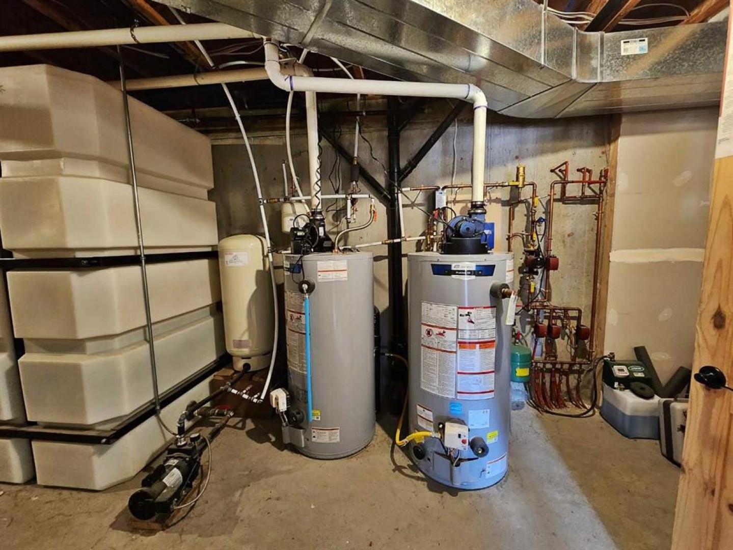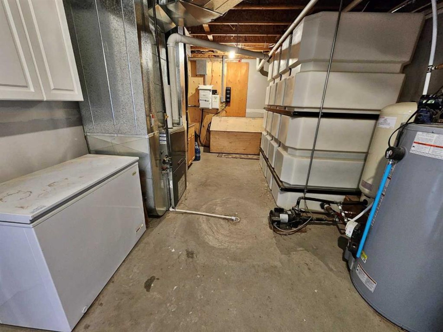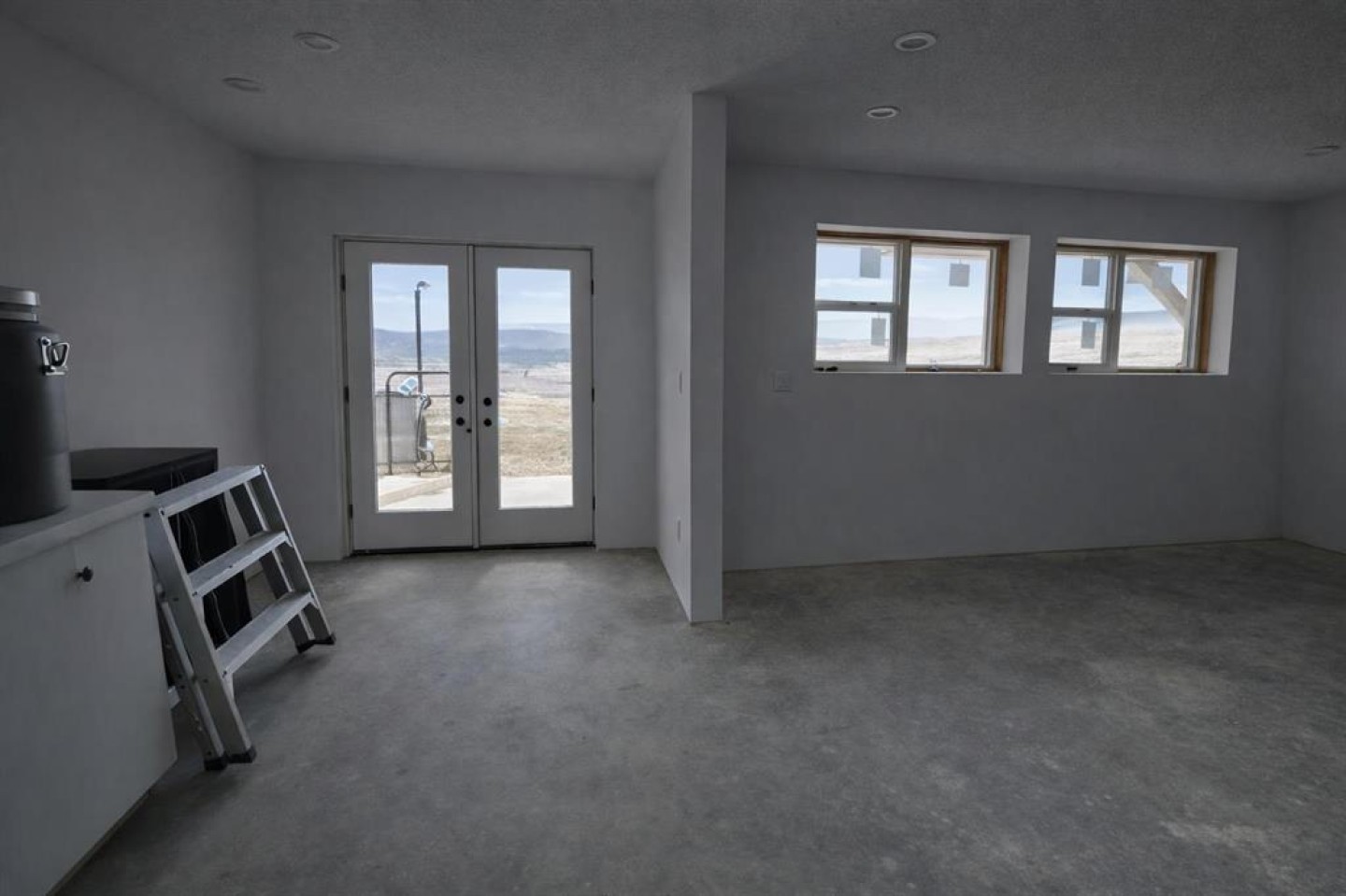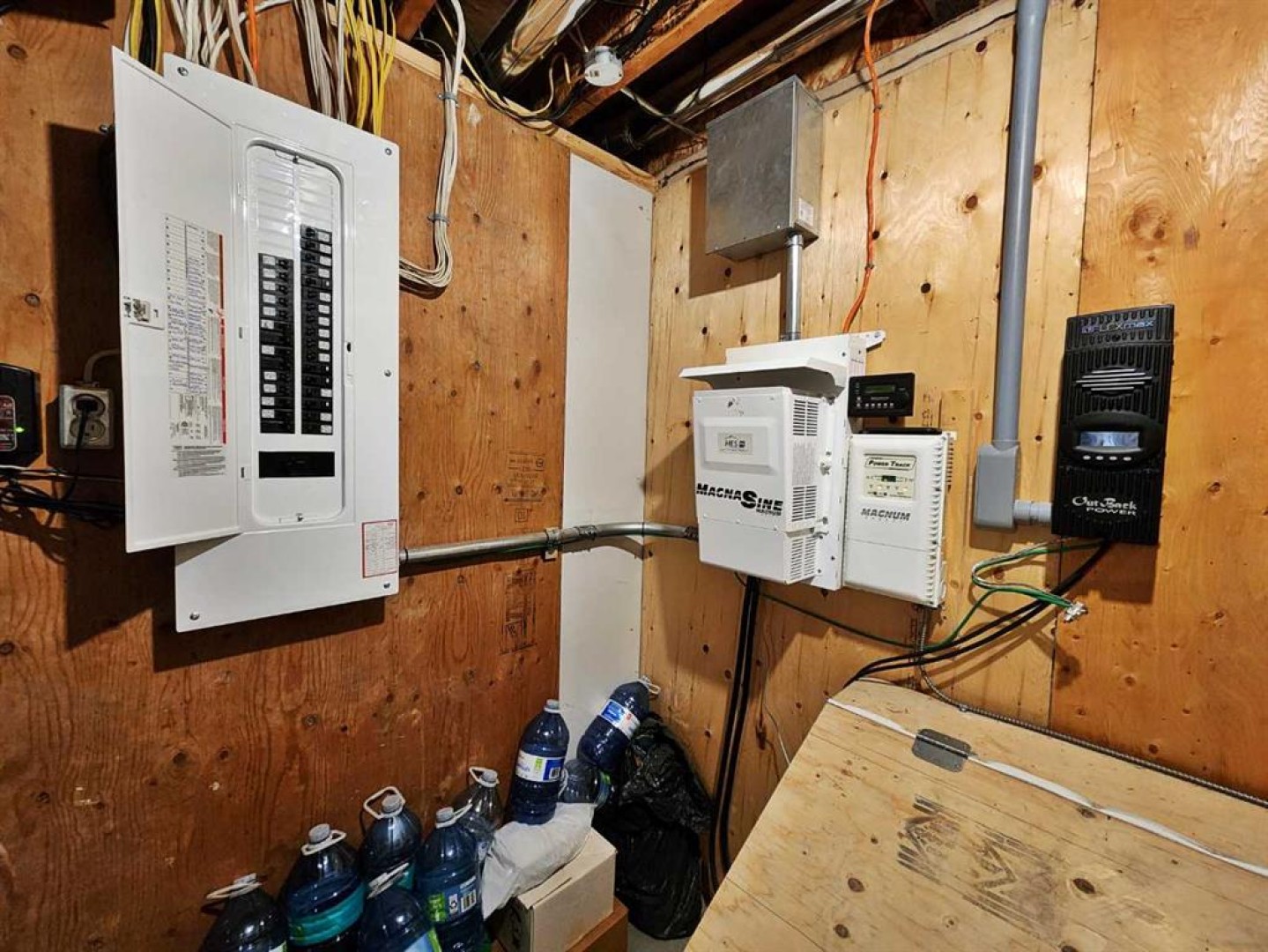 The walkout lower level offers in-floor heating, two additional bedrooms, a full bathroom, roughed-in wet bar area, cold storage, and a spacious living area ready for your personal finishing touches (stippled ceiling, primed walls). The mechanical room houses the 1,100-gallon water cistern, furnace, in-floor heating tank, hot water tank, power inverter, and deep-cycle battery bank.