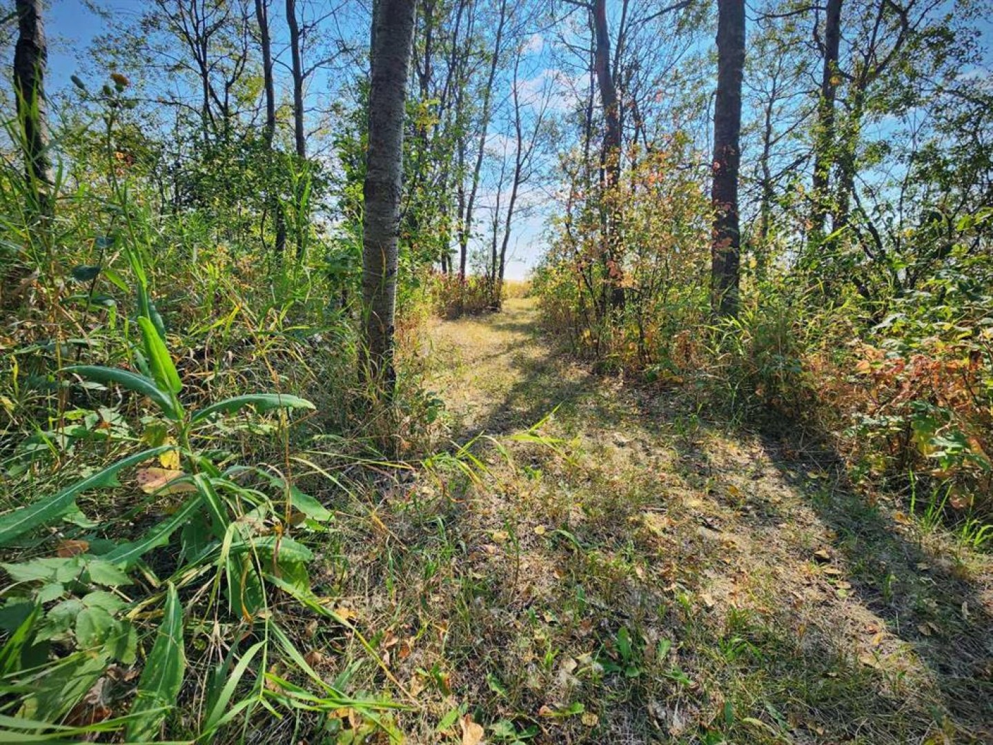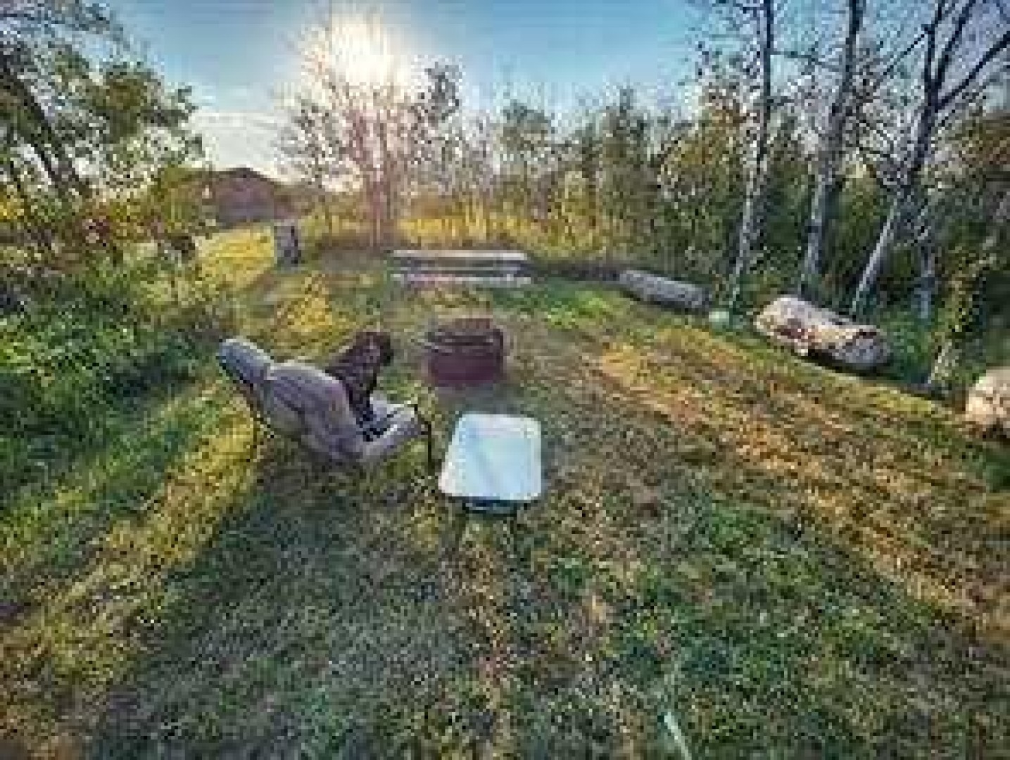 Outdoors, the yard site includes a mowed walking trail, secluded firepit area, ground-mounted solar array, a 200 sq ft multi-purpose/wood shed with additional solar panels, a smaller lean-to garden/wood shed, and young shelterbelt evergreens. A large, level area within the yard is ideal for a future shop. The surrounding woods feature multiple trails for walking or quadding, a spectacular toboggan hill, and a slough that attracts abundant wildlife and doubles as a classic outdoor hockey rink in winter.