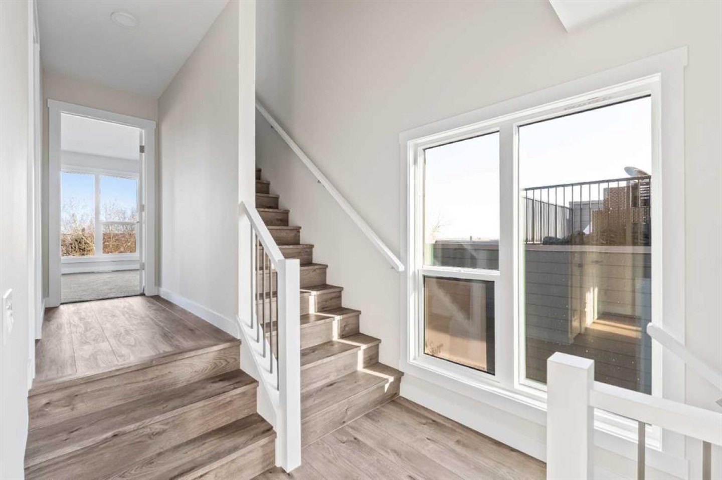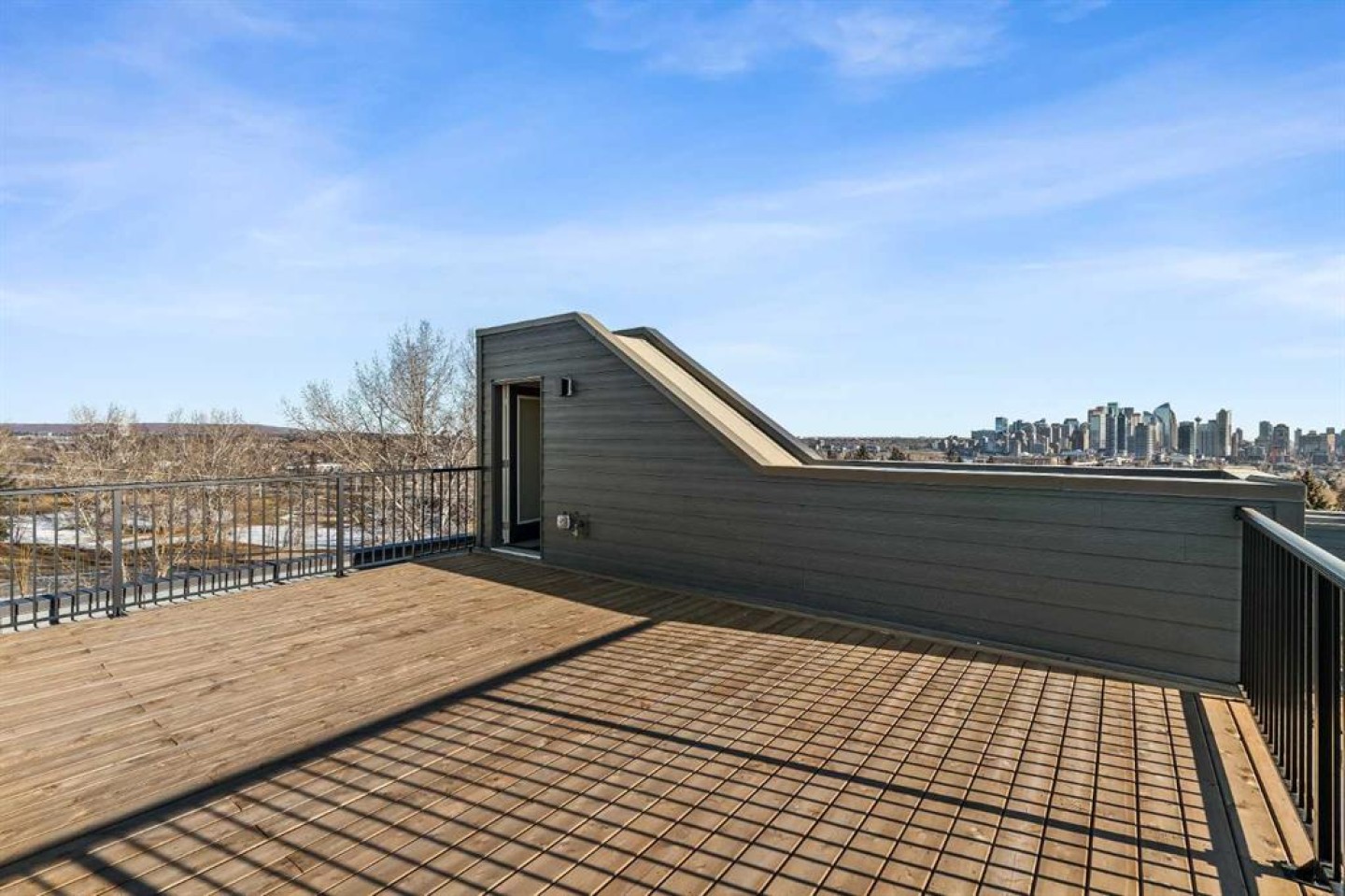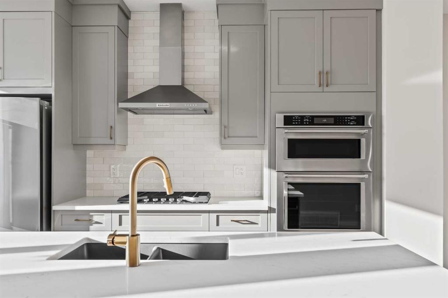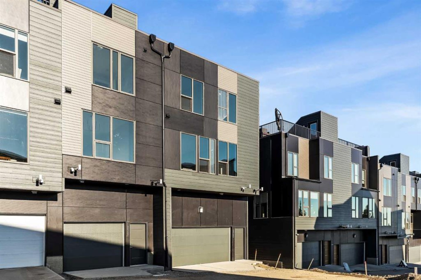 The crown jewel of Crown Park is now available. This exceptional end-unit Stanley townhome presents a rare opportunity to own one of the last remaining residences in this highly sought-after community, offering breathtaking, unobstructed views of Calgary’s downtown skyline while overlooking the Shaganappi Golf Course. At over 2,300 sq. ft. of thoughtfully designed living space, this brand-new urban townhome features 3 bedrooms, 2.5 bathrooms, a dedicated home office, a versatile flex space, and three expansive outdoor living areas, including an impressive 400 sq. ft. rooftop patio. The lower level welcomes you with a covered patio spanning the full width of the home, creating a private outdoor retreat overlooking green space and the street. Inside, a generous ~18’ x 14’ flex room with 10' ceilings offers endless possibilities - ideal for a media room, home gym, studio, fourth bedroom, or additional office space. The main level is designed for effortless entertaining, showcasing a stunning open-concept layout enhanced by walls of windows that flood the space with natural light. The chef-inspired kitchen is beautifully appointed with a gas cooktop, built-in wall oven and microwave, chimney hood fan, and a large central island with seating. Flowing seamlessly into the spacious dining area and family room, the space is anchored by a striking fireplace with a full plaster surround extending to the soaring 11’ ceilings. Step outside to the ~175 sq. ft. balcony, spanning the width of the home and overlooking tranquil green space. The upper level has been intelligently designed with privacy in mind. The luxurious primary suite is positioned at the front of the home and features a wall of windows with green-space views, a large walk-in closet, and a spa-inspired 4-piece ensuite with dual sinks and a tiled walk-in shower. Two additional bedrooms, a full bathroom, upper-level laundry, and a den complete this floor. The rooftop patio is truly an entertainer’s dream - equipped with a gas line and ample room for both lounge and dining areas - offering the perfect setting to host guests while enjoying spectacular downtown skyline views. Completing this home is central air conditioning and a private double attached garage and additional storage space to keep your vehicle and valuables safe all year long. This brand new home comes with full builder warranty and Alberta New Home Warranty - allowing you to purchase with peace of mind. This home is ideally suited for professionals, families, or investors seeking a brand-new property with space to grow in one of Calgary’s most desirable inner-city locations, just minutes from downtown.