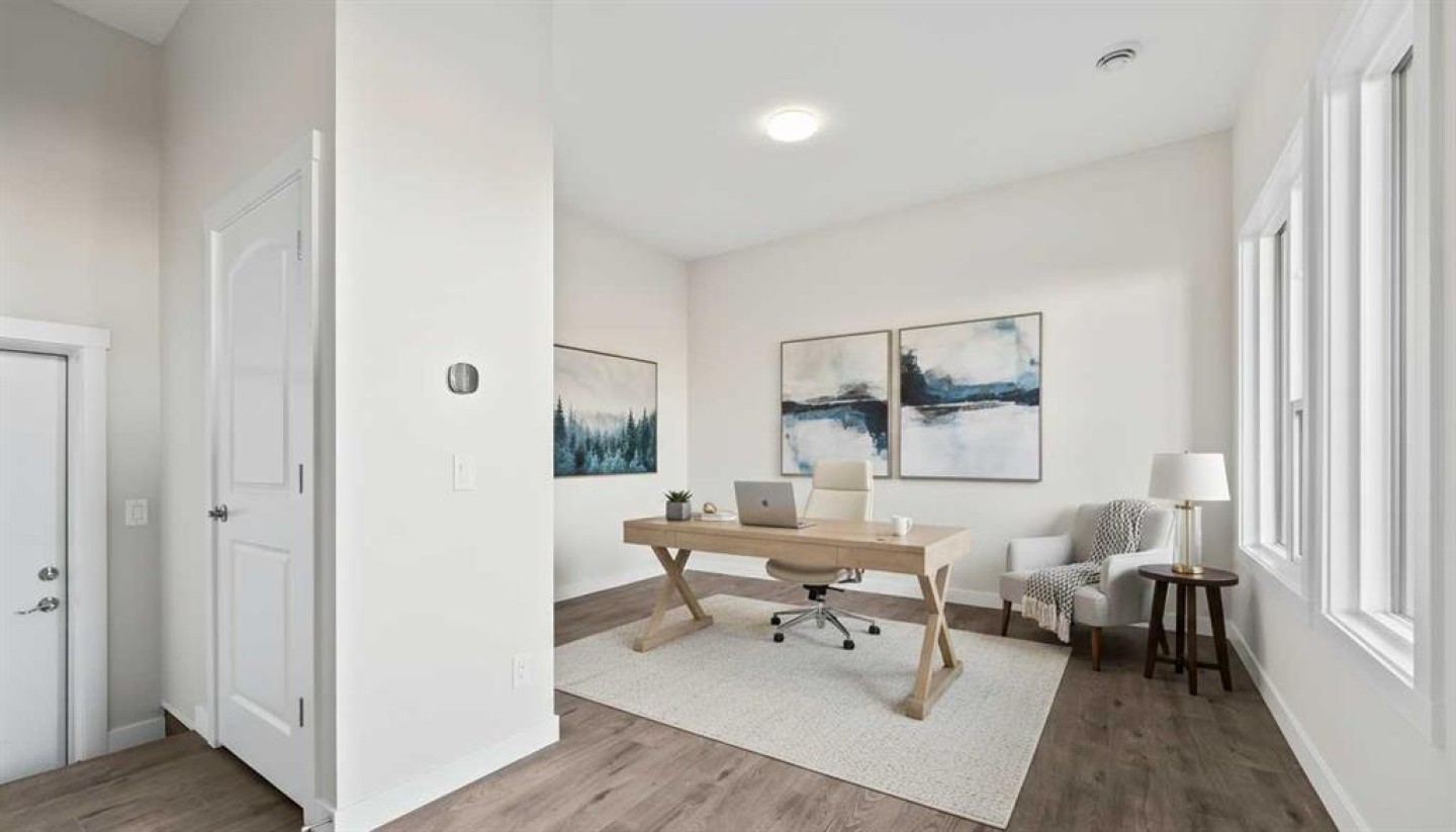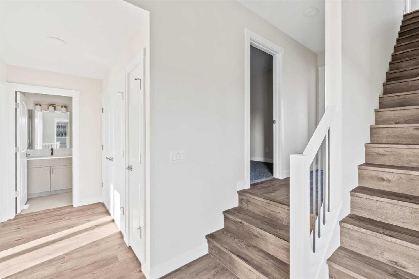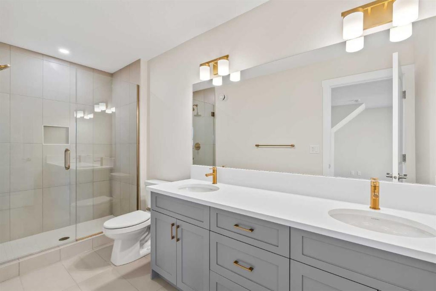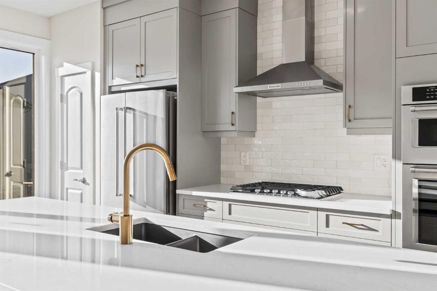 The crown jewel of Crown Park is now available. This exceptional end-unit Stanley townhome presents a rare opportunity to own one of the last remaining residences in this highly sought-after community, offering breathtaking, unobstructed views of Calgary’s downtown skyline while overlooking the Shaganappi Golf Course. At over 2,300 sq. ft. of thoughtfully designed living space, this brand-new urban townhome features 3 bedrooms, 2.5 bathrooms, a dedicated home office, a versatile flex space, and three expansive outdoor living areas, including an impressive 400 sq. ft. rooftop patio. The lower level welcomes you with a covered patio spanning the full width of the home, creating a private outdoor retreat overlooking green space and the street. Inside, a generous ~18’ x 14’ flex room with 10' ceilings offers endless possibilities - ideal for a media room, home gym, studio, fourth bedroom, or additional office space. The main level is designed for effortless entertaining, showcasing a stunning open-concept layout enhanced by walls of windows that flood the space with natural light. The chef-inspired kitchen is beautifully appointed with a gas cooktop, built-in wall oven and microwave, chimney hood fan, and a large central island with seating. Flowing seamlessly into the spacious dining area and family room, the space is anchored by a striking fireplace with a full plaster surround extending to the soaring 11’ ceilings. Step outside to the ~175 sq. ft. balcony, spanning the width of the home and overlooking tranquil green space. The upper level has been intelligently designed with privacy in mind. The luxurious primary suite is positioned at the front of the home and features a wall of windows with green-space views, a large walk-in closet, and a spa-inspired 4-piece ensuite with dual sinks and a tiled walk-in shower. Two additional bedrooms, a full bathroom, upper-level laundry, and a den complete this floor. The rooftop patio is truly an entertainer’s dream - equipped with a gas line and ample room for both lounge and dining areas - offering the perfect setting to host guests while enjoying spectacular downtown skyline views. Completing this home is central air conditioning and a private double attached garage and additional storage space to keep your vehicle and valuables safe all year long. This brand new home comes with full builder warranty and Alberta New Home Warranty - allowing you to purchase with peace of mind. This home is ideally suited for professionals, families, or investors seeking a brand-new property with space to grow in one of Calgary’s most desirable inner-city locations, just minutes from downtown.