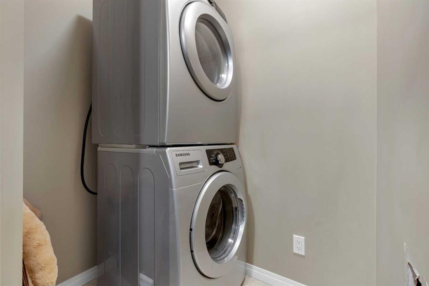 Dishwasher, Electric Stove, Microwave Hood Fan, Refrigerator, Washer/Dryer Stacked