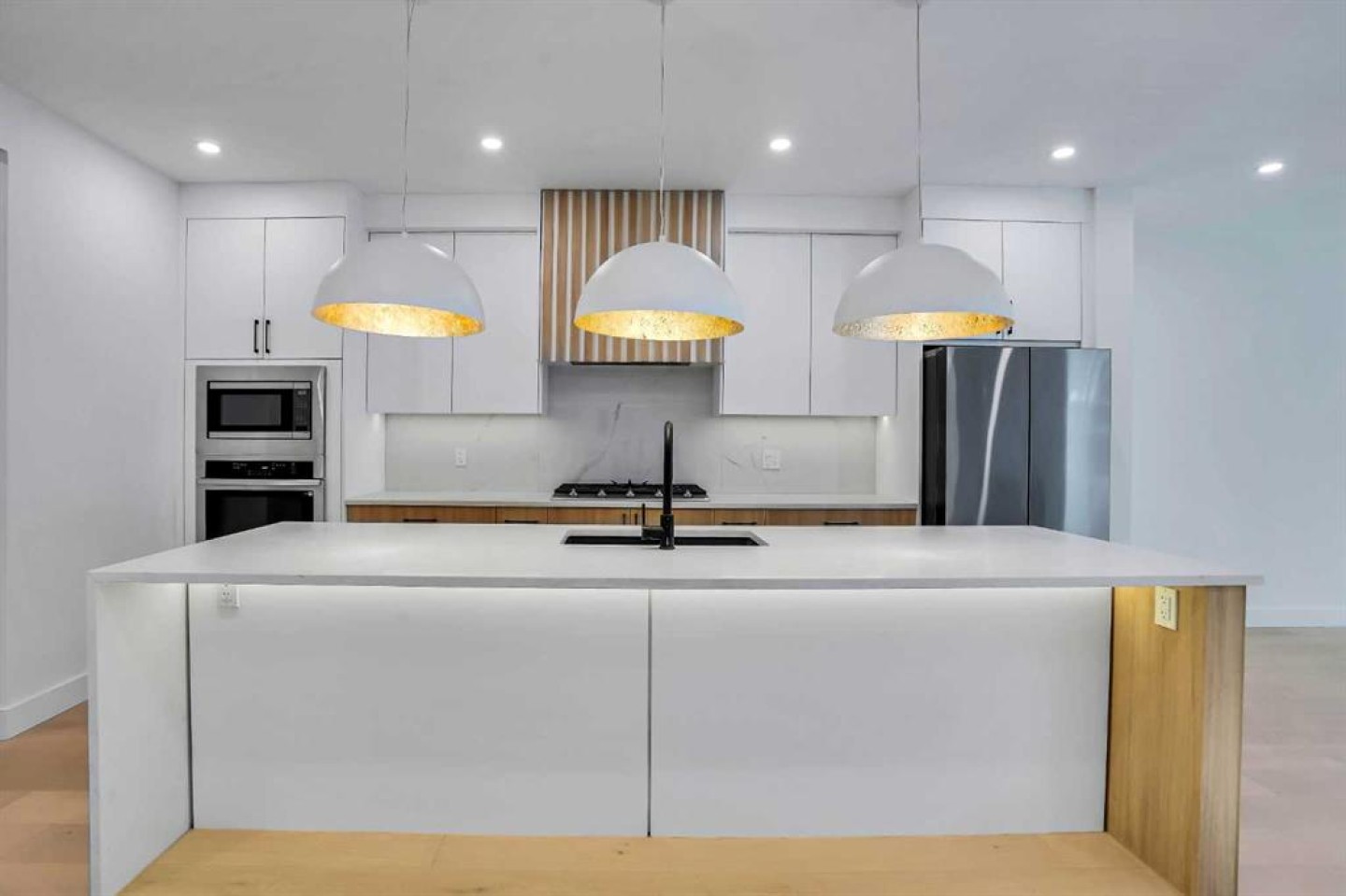 Welcome to this masterfully crafted semi-detached residence in the heart of Winston Heights, offering over 3,300 sq.ft. of sophisticated living space. The main floor immediately impresses with an expansive, sun-drenched open-concept design and wide-plank hardwood floors that lead into a gourmet chef’s kitchen anchored by a massive quartz social island.