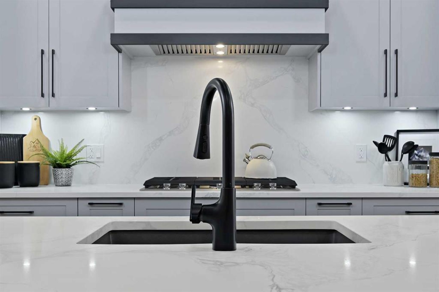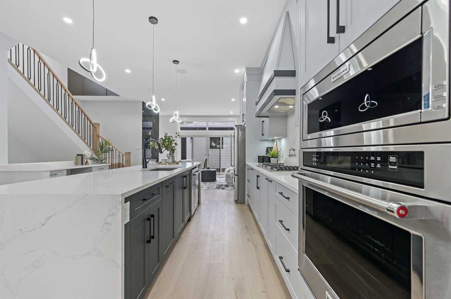 Welcome to 107 Hartford Road NW – a stunning brand-new executive home offering over 2,800 sq ft of beautifully designed living space in the heart of Highwood. Set on a quiet, tree-lined street, this two-storey modern masterpiece boasts exceptional curb appeal with stone, Hardie siding, and Smartboard accents. Step inside to discover a very bright and open floorplan with extensive upgrades throughout—a home that truly must be seen to fully appreciate the quality craftsmanship and detailed finishes that went into this custom build. The main level features 10’ ceilings, a dedicated study/work desk, a spacious dining area, and a dream kitchen with a quartz waterfall island, KitchenAid built-in appliances, a 36” gas cooktop, and designer finishes throughout. The cozy living area includes a dramatic tiled fireplace wall and opens via a sliding patio door to your fully landscaped yard—perfect for summer entertaining.