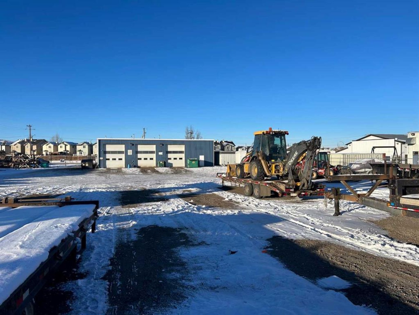 FOR SALE : 1.4 ACRES with a 4200 SQ FT Steel Structure building.... Fully Leased. Property FEATURES 6 - 14 ft Overhead doors allows trucks to drive through ; 3 bays each 60 ft deep ; originally the building was used as a truck and car wash ; ideal site for a potential second building, subdivision of a second lot [subject to town of High River approval ];fenced yard ; gravel packed rear yard ,security fenced and good highway access. New Air Exchange system installed in 2025.