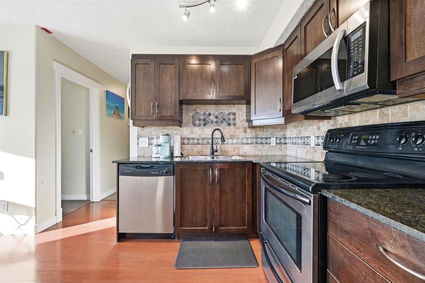 Welcome to this beautifully maintained TOP FLOOR condo offering comfort, convenience, and an unbeatable inner city lifestyle. This bright and functional one bedroom home is PERFECT for first time buyers, students, or investors seeking a move in ready property in a prime SW location. The open layout features a welcoming living area filled with natural light and access to the private balcony, ideal for enjoying your morning coffee or unwinding at the end of the day. The kitchen is well appointed with STAINLESS STEEL APPLIANCES, GRANITE COUNTERTOPS, and QUALITY CABINETRY, providing both style and functionality. The spacious bedroom features NEWER CARPET and generous closet space, while the unit is completed by a full bathroom and the convenience of IN UNIT LAUNDRY. Additional highlights include stall parking with a plug-in and a well maintained building. The location is truly hard to beat, situated directly across the street from 7 Eleven, Calgary Co op, Pizza 73, Good Earth Coffee, and a bus stop. 4 min drive to Walmart, Safeway and the Westbrook shopping centre. A 7 minute walk to both the Westbrook LRT and Shaganappi Pointe LRT stations, and only a 10 minute drive to Mount Royal University, University of Calgary, Downtown, Alberta Children’s Hospital, and Foothills Medical Centre. Shaganappi Golf Course and nearby parks further enhance the lifestyle appeal. This is an excellent opportunity to own a low maintenance, well kept home in a highly accessible and established community with outstanding amenities at your doorstep.
