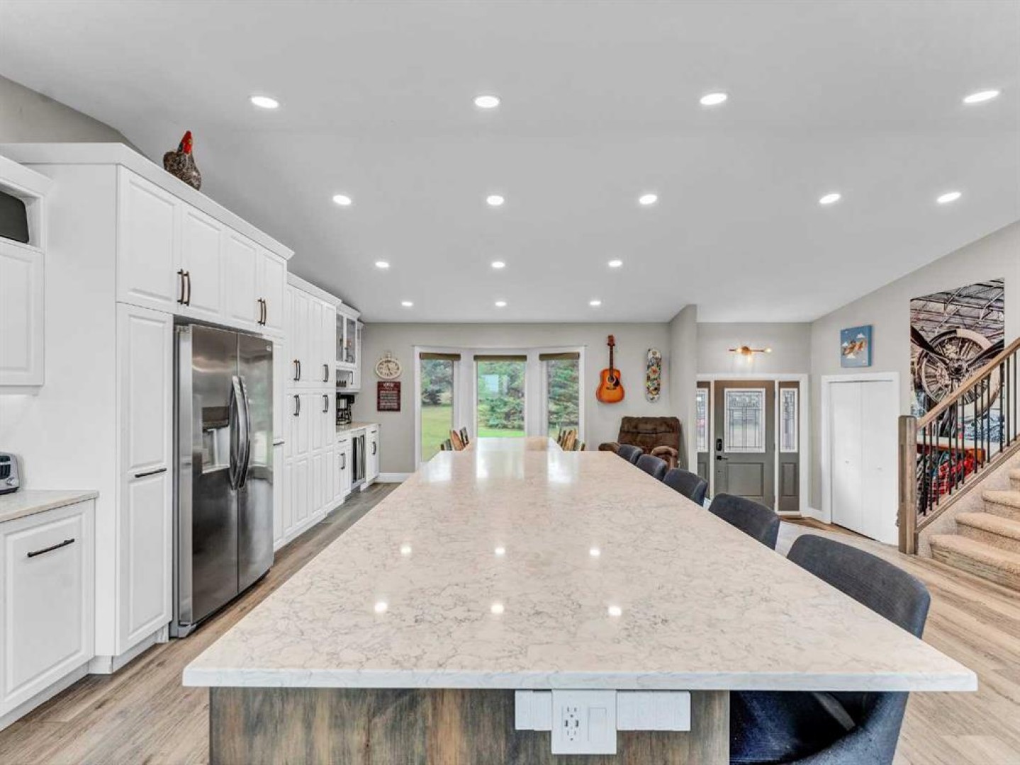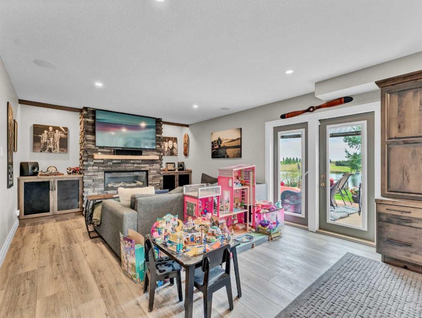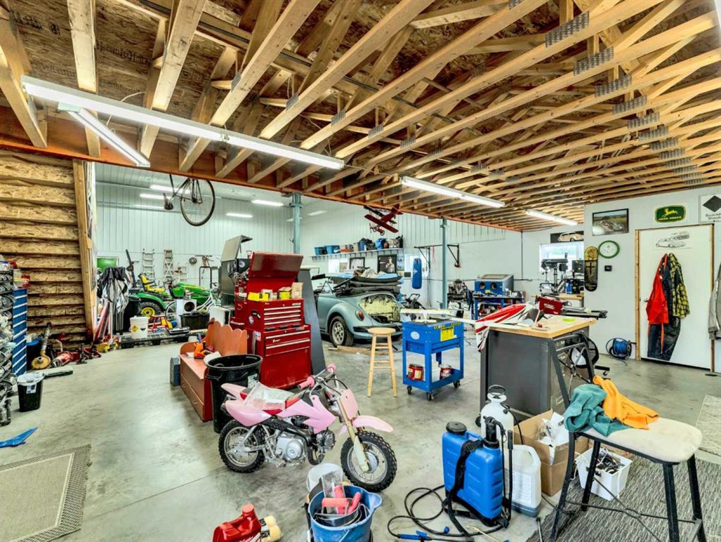 Lakefront Acreage Paradise: The Ultimate Escape for Family, Fun & Freedom Welcome to your dream lifestyle—where every day feels like a getaway! Nestled on 2.84 acres of pristine land, this stunning lakefront property offers the perfect blend of adventure, relaxation, and modern comfort, all less than 20 minutes from downtown. Live the Lake Life: Step out your back door and onto your private dock—complete with a swimming ladder and a lake stocked with fish, ready for your boat, paddleboard, or lazy afternoon swim. Whether you’re an early-morning angler or sunset cruiser, this is the waterfront oasis you’ve been waiting for. Room for All Your Passions: A massive 36’ x 66’ heated shop with a mezzanine is every hobbyist’s dream—ideal for your toys, tools, projects, or even a home business. There’s space for boats, RVs, and more, so your adventures don’t have to end at the shoreline. A Home Built for Family & Entertaining: Inside, you’ll find a welcoming, open-concept kitchen designed for gathering and celebrating, with plenty of space for friends and family to connect. The expansive master bedroom is your personal retreat, offering breathtaking lake views and a private ensuite. Upstairs, two additional bedrooms and a main bath provide comfort for kids or guests, while the main floor offers a convenient laundry room and another bedroom—perfect for flexible living arrangements. Designed for Living Well: Custom built-in desk area off the living room—ideal for remote work or homework. Cozy gas fireplace for those chilly Alberta evenings, Basement family room and bedroom for movie nights, playdates, or guest stays. Outdoor playground for the kids, so adventure is always just steps away, Reliable water co-op supply for peace of mind This is more than just a home—it’s a lifestyle upgrade. With wide open spaces, lakefront tranquility, and every amenity you could want, this property is ready to become your family’s ultimate escape from the everyday hustle. Ready to make every day feel like a holiday? Book your private showing and discover the magic of lake acreage living today!