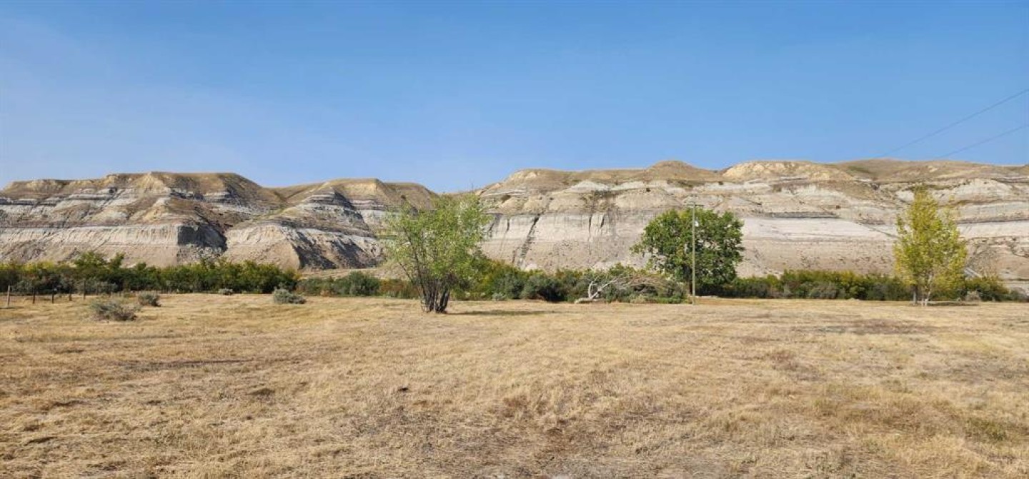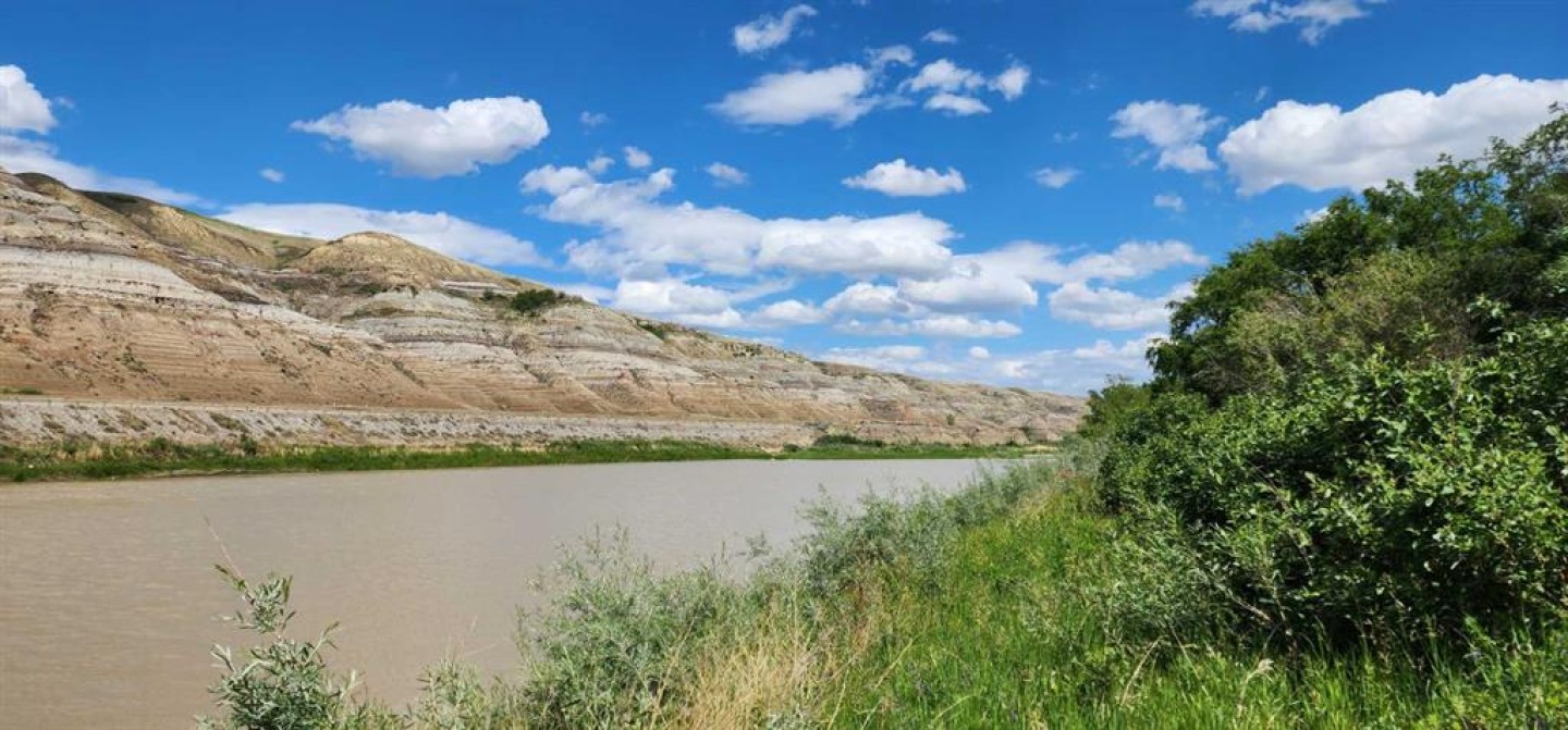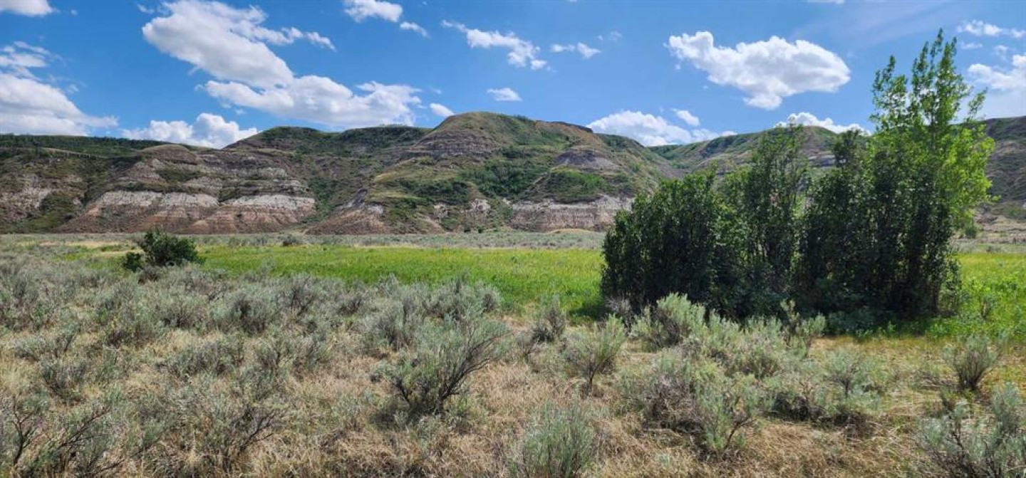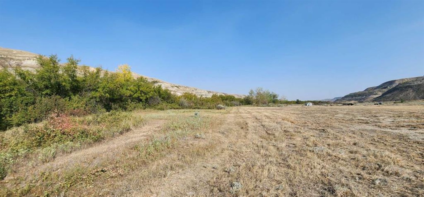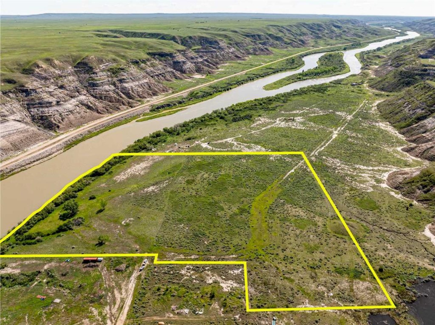 22.75 acres of Riverview and river access land for sale, in the town of Drumheller Alberta, 22 km east of downtown, adjacent to the Atlas coal mine museum and the community of East Coulee. This gorgeous Property has power near the river area. 888 feet of river frontage with a full walking path. Perfect place to build a campground and is zoned for such use. This property is unique with this much river frontage in the valley. Also of note is this property is privately nestled 700 meters off the highway, with hills to the south and the Red Deer river to the north. Also included in the sale at no extra cost is an adjacent 10 acre parcel (with conditions) not attached but only about 50 meters away, approximately 1 flat acre with the rest as hillside, includes one of the largest hoodoos in the valley. This portion is considered Badlands and cannot be developed, but would make an excellent walking area. Drumheller boasts 600,000 visitors per year, and accommodations can be hard to find, camping has become a premium here. Don't let this opportunity to own such a rare piece of property in the valley of the dinosaurs in the heart of the Badlands pass you by.
