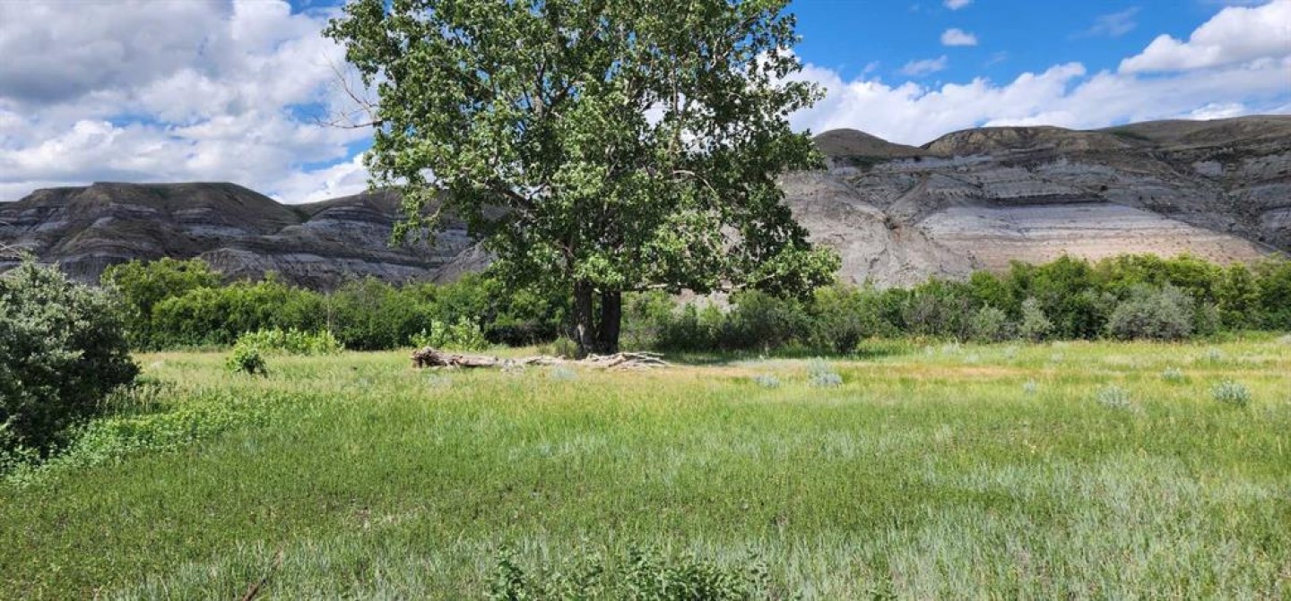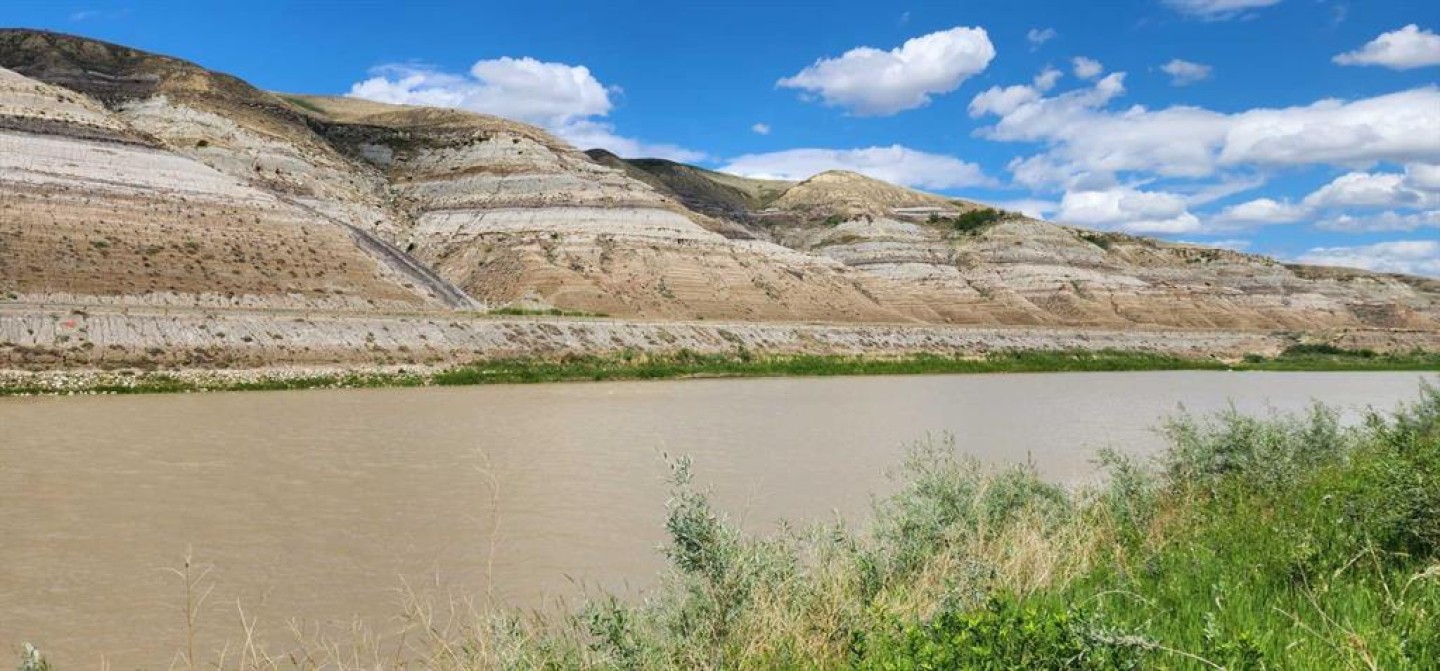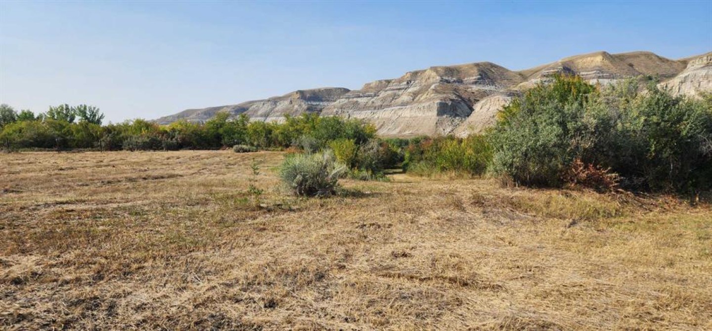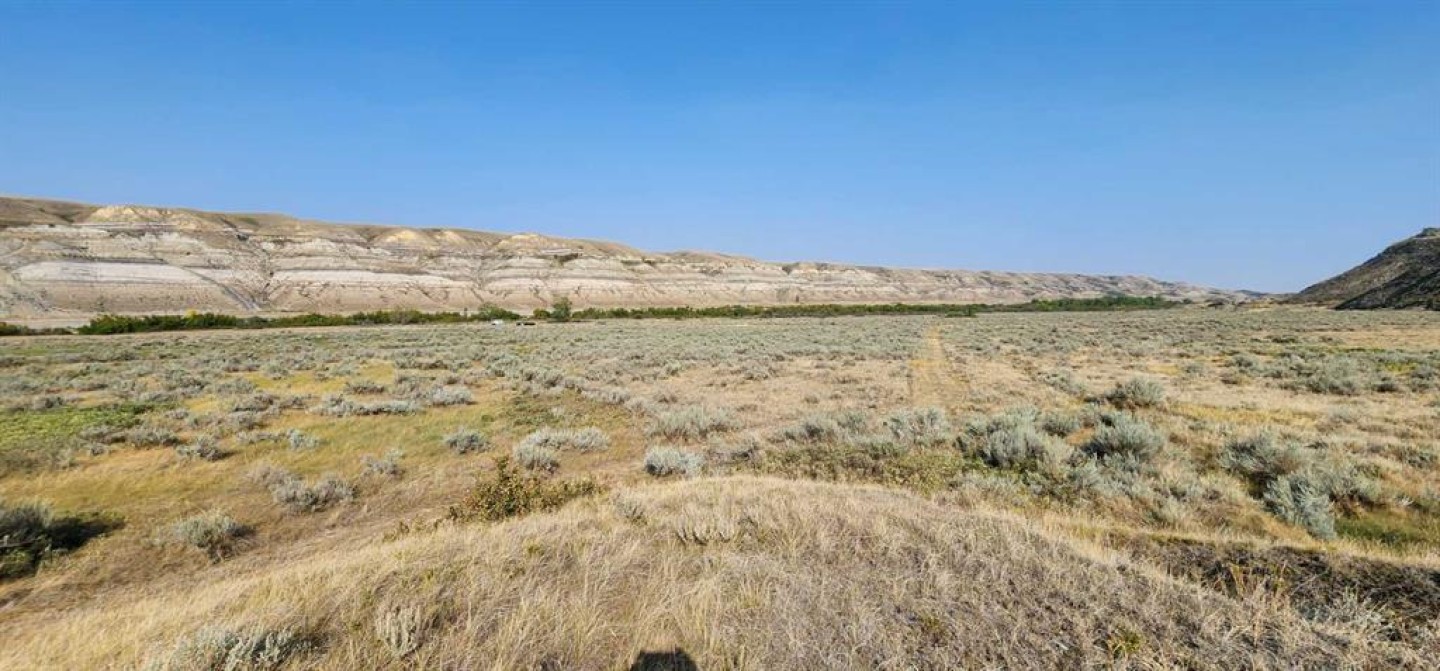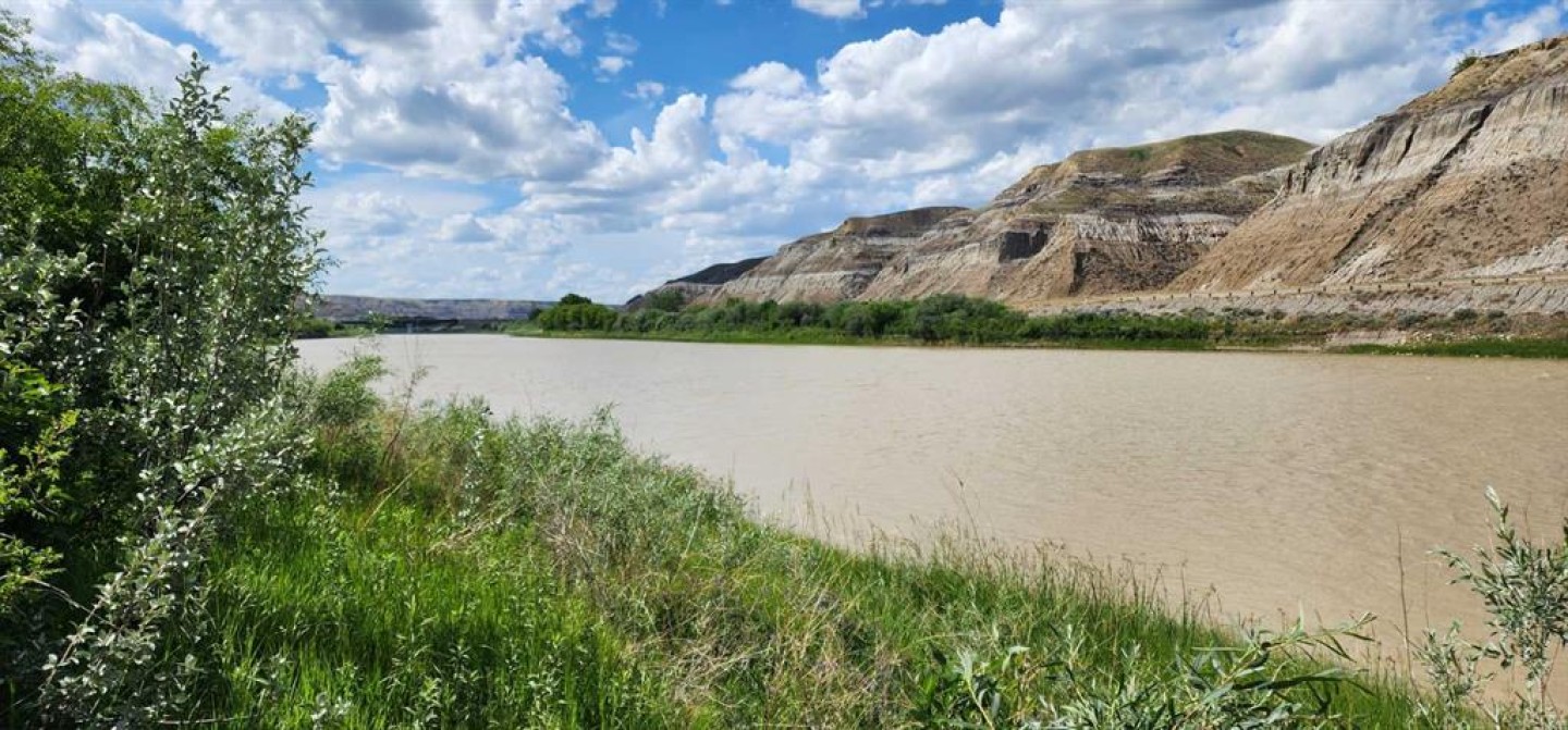 22.75 acres of Riverview and river access land for sale, in the town of Drumheller Alberta, 22 km east of downtown, adjacent to the Atlas coal mine museum and the community of East Coulee. This gorgeous Property has power near the river area. 888 feet of river frontage with a full walking path. Perfect place to build a campground and is zoned for such use. This property is unique with this much river frontage in the valley. Also of note is this property is privately nestled 700 meters off the highway, with hills to the south and the Red Deer river to the north. Also included in the sale at no extra cost is an adjacent 10 acre parcel (with conditions) not attached but only about 50 meters away, approximately 1 flat acre with the rest as hillside, includes one of the largest hoodoos in the valley. This portion is considered Badlands and cannot be developed, but would make an excellent walking area. Drumheller boasts 600,000 visitors per year, and accommodations can be hard to find, camping has become a premium here. Don't let this opportunity to own such a rare piece of property in the valley of the dinosaurs in the heart of the Badlands pass you by.