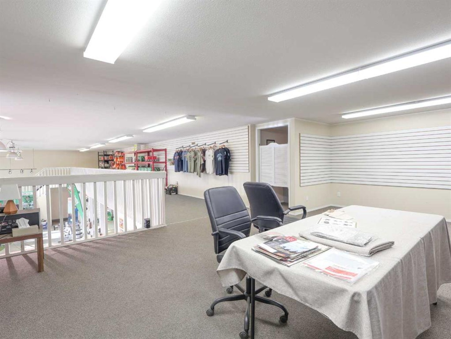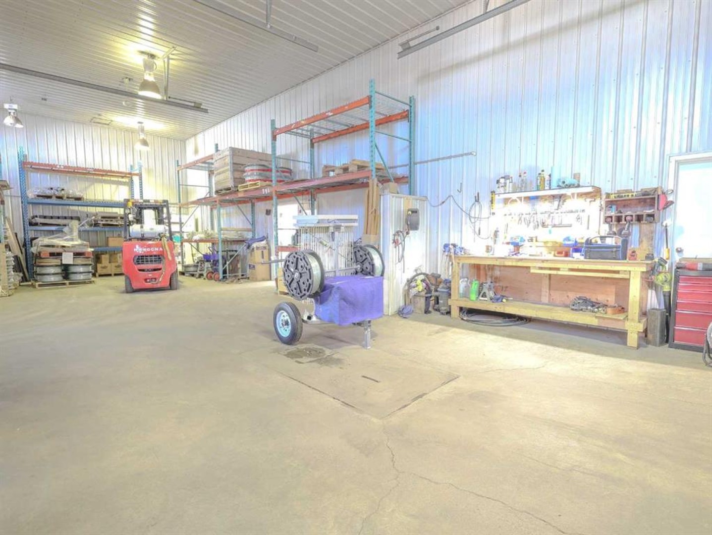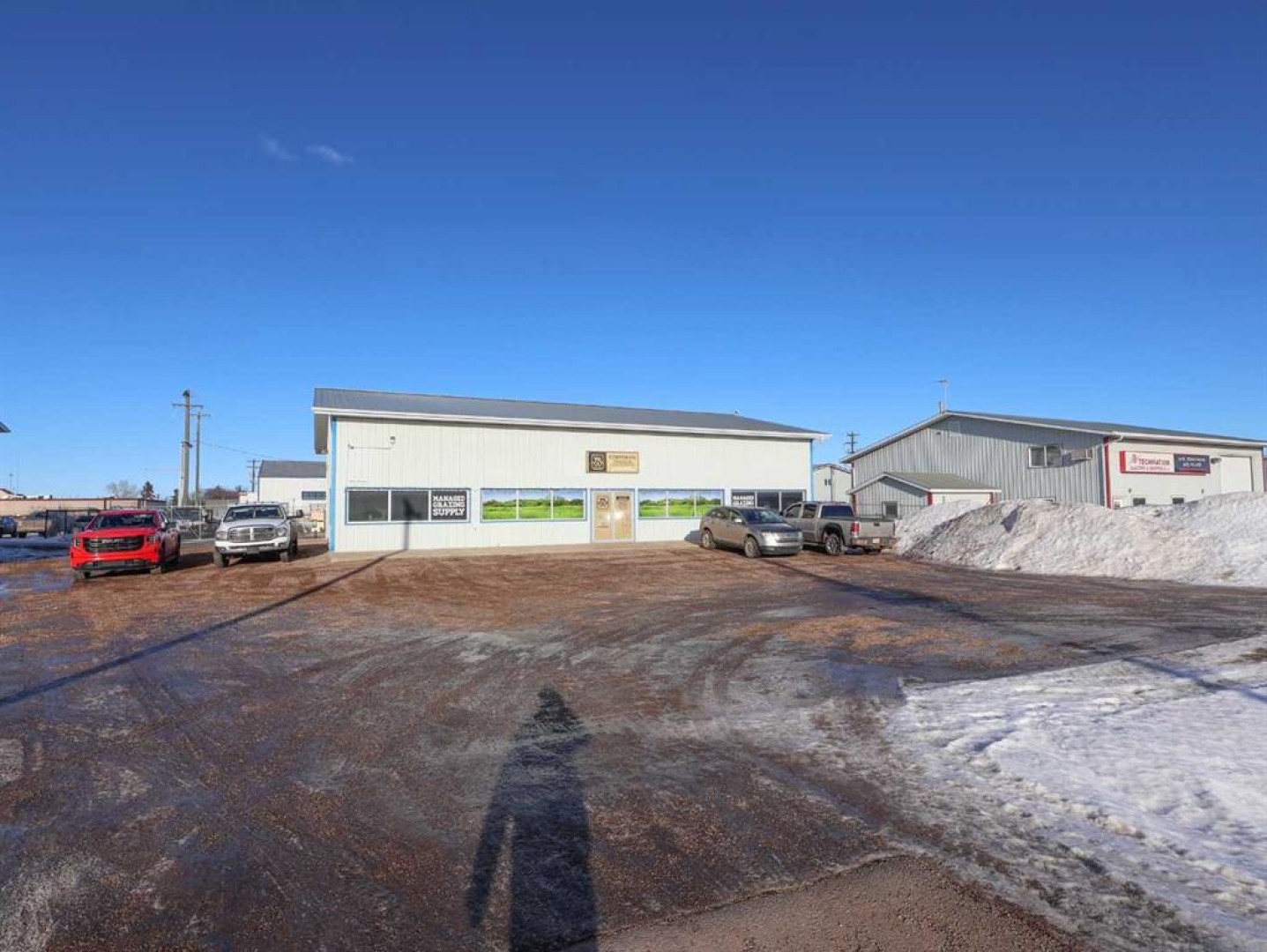 Offered for lease is a commercially zoned lot with building, ideally located on the southeast side of Stettler with excellent exposure just off the Highway 12 service road. This versatile property is well suited for a wide range of business uses and offers easy access along with ample on-site parking. The 0.51-acre lot features plenty of level, graveled parking at the front, making it convenient for customers and staff alike. The building is constructed with durable metal siding and roofing, a concrete floor, and is equipped with in-floor heat for efficient year-round comfort. Inside the front entrance, you’ll find a spacious and welcoming area ideal for retail, showroom, or customer-facing operations, with good natural light from windows across the front. This area includes slatwall display panels on several walls, an office, and a bathroom, providing a functional and professional setup for daily operations. At the rear of the building is a 21’ x 50’ shop with two overhead doors, man doors, floor drains, and metal-clad walls and ceiling, making it well suited for mechanical, service, or light industrial use. Above the shop is an 8’ x 50’ mezzanine, accessible from both sides, offering additional storage or workspace. Here there is more slatwall display space, an 18’ x 22’ open work area, a change room, a 10’ x 17’ office, and an 11’ x 18’ storage room toward the back. The mezzanine is heated by a dedicated furnace, ensuring comfort throughout the space. Behind the shop, the property offers a gated and fenced storage compound measuring approximately 7,500 sq. ft., ideal for secure outdoor storage, equipment, or inventory. With Stettler’s central Alberta location, strong highway connections, and a trade area supported by approximately 6,000 town residents plus an additional 5,300 in the surrounding county, this property presents an excellent opportunity for businesses looking to establish, expand, or relocate.